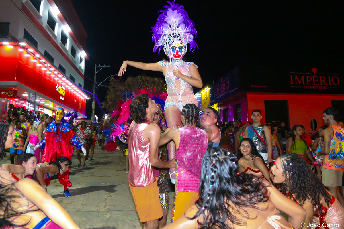 A porta-estandarte, Ana Luiza Borges, de 18 anos, encantou com o tema “Fortaleza dos Fobós”, representando a força, a coragem e a resistência do Carnapauxis. Sua performance, marcada por elegância e desenvoltura, foi um dos momentos mais aplaudidos do desfile. Já a Rainha do Bloco, Luciana Sousa, de 26 anos, levou à avenida o tema “A Magia das Máscaras”, simbolizando a realeza no Carnapauxis e figurando entre os grandes destaques da noite.