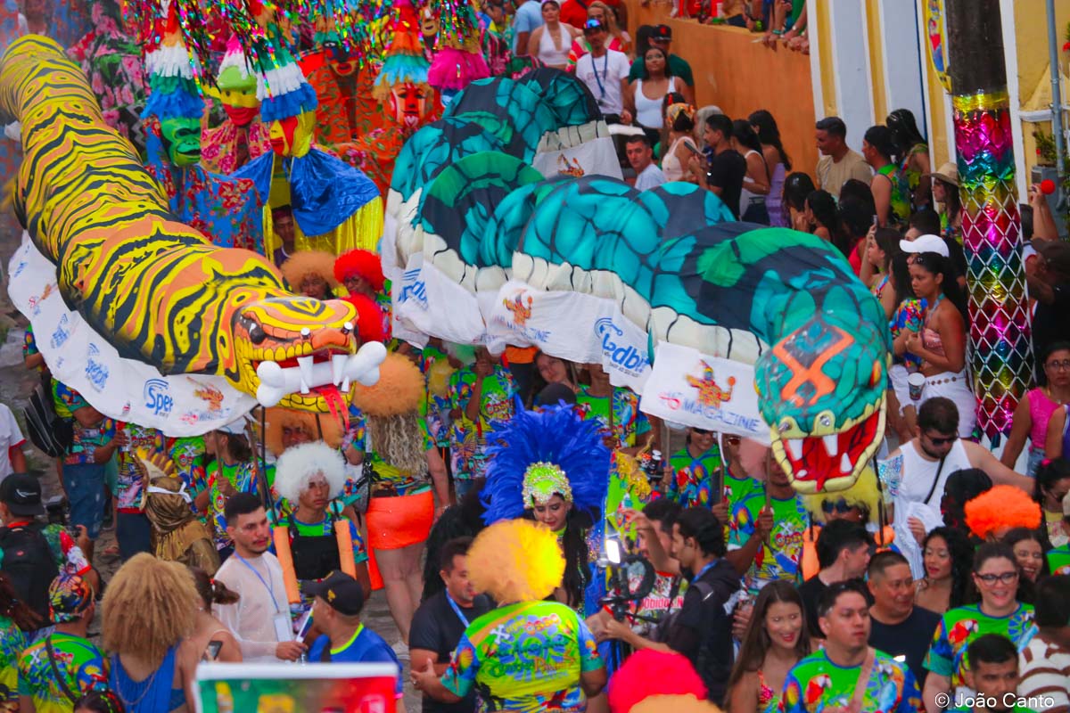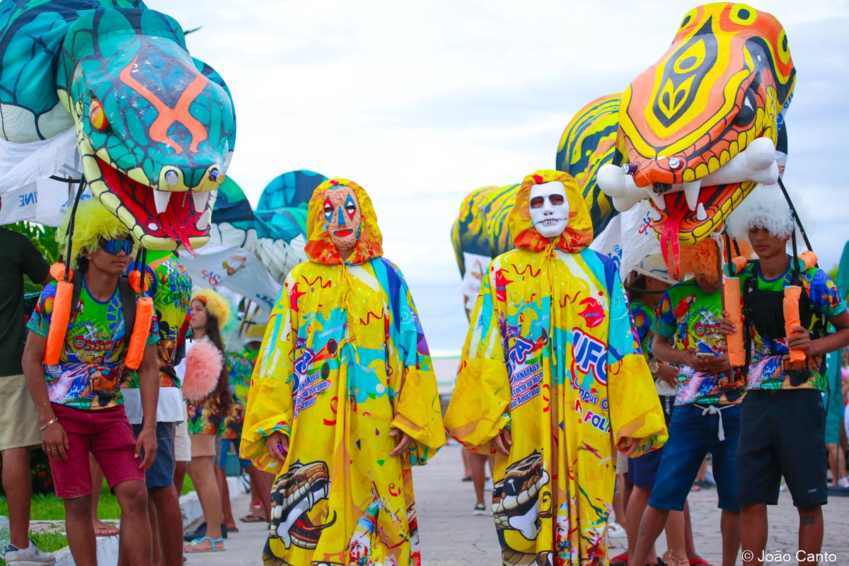 A concentração teve início ainda no fim da tarde, na Praça de Sant’Ana, que rapidamente ficou tomada pelos foliões. Às 18h30, o bloco partiu em direção à Rua Bacuri, arrastando uma multidão vibrante. Um dos grandes destaques foi a música-tema, composta por Jorge Ary Ferreira e Música de Cancão, que convidou as comunidades interioranas a deixarem os afazeres de lado e se juntarem à festa, celebrando a alegria do carnaval.