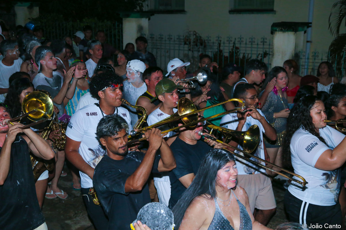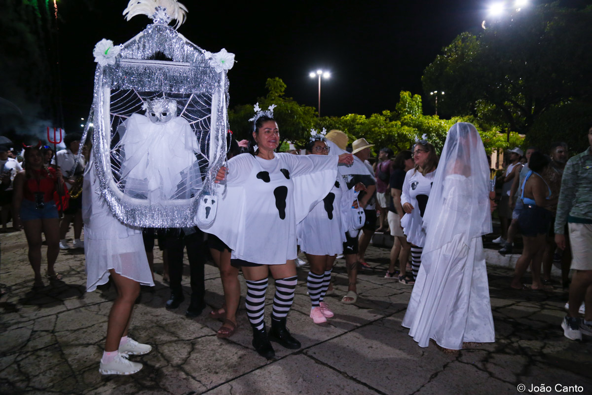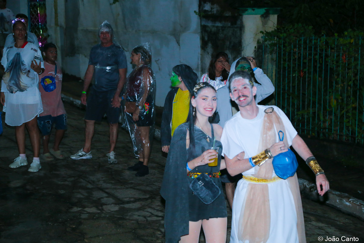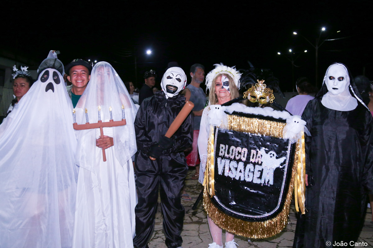 Já na madrugada desta terça-feira (17), foi a vez do Bloco da Visagem mostrar sua força e originalidade. Completando 10 anos de existência, o bloco saiu por volta da 1h30, logo após o encerramento do desfile do Bloco do Morro, na Praça da Cultura. Embalados por uma banda formada essencialmente por instrumentos de sopro, que executou antigas marchinhas e músicas tradicionais de carnaval, os foliões percorreram as ruas e ladeiras do centro histórico, mantendo a animação mesmo em plena madrugada.
