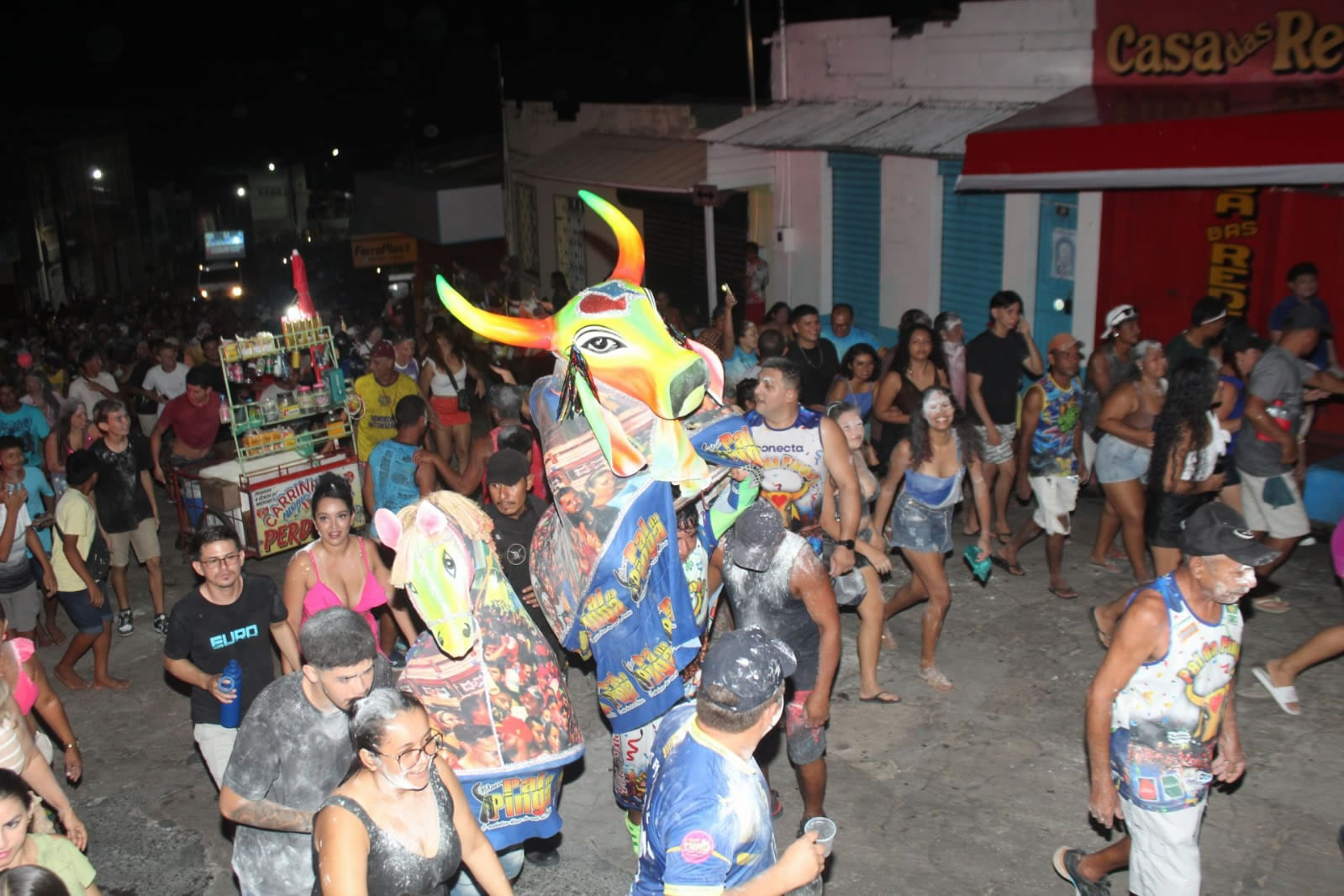 A concentração teve início às 18h30 e, em ritmo de muita música, alegria e animação, os foliões seguiram em cortejo até a Praça da Cultura, onde a folia continuou até por volta das 23h. O destaque da tarde ficou por conta dos Mascarados Fobós, que mais uma vez mostraram sua força cultural, levando às ruas os icônicos mascarados, muita descontração e a tradicional chuva de maisena, marca registrada da brincadeira.