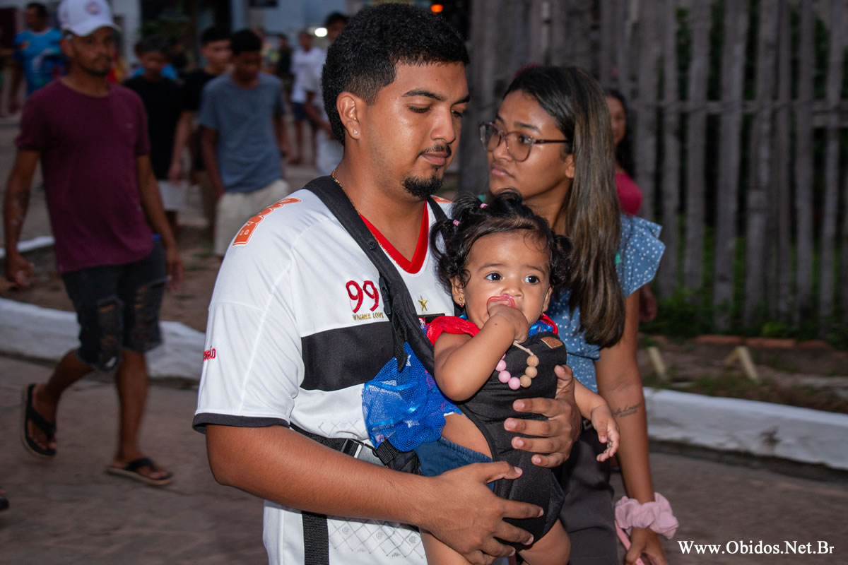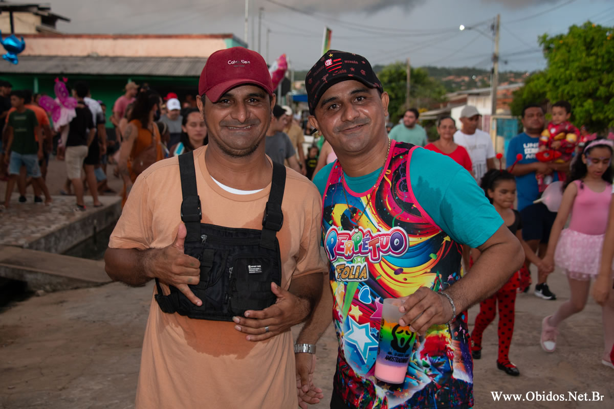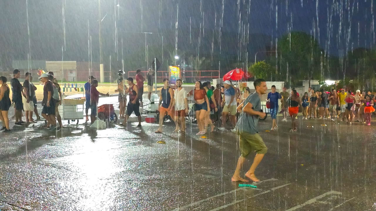 Mesmo assim, a maioria dos brincantes manteve o entusiasmo. Fantasiadas, muitas crianças seguiram desfilando ao lado dos pais, demonstrando que o espírito do Carnapauxis é mais forte do que qualquer contratempo climático. Ao chegar à Praça da Cultura, ainda sob garoa em alguns momentos, a festa continuou, com apresentações da Banda Energia e a celebração da cultura carnavalesca de Óbidos, até altas horas.