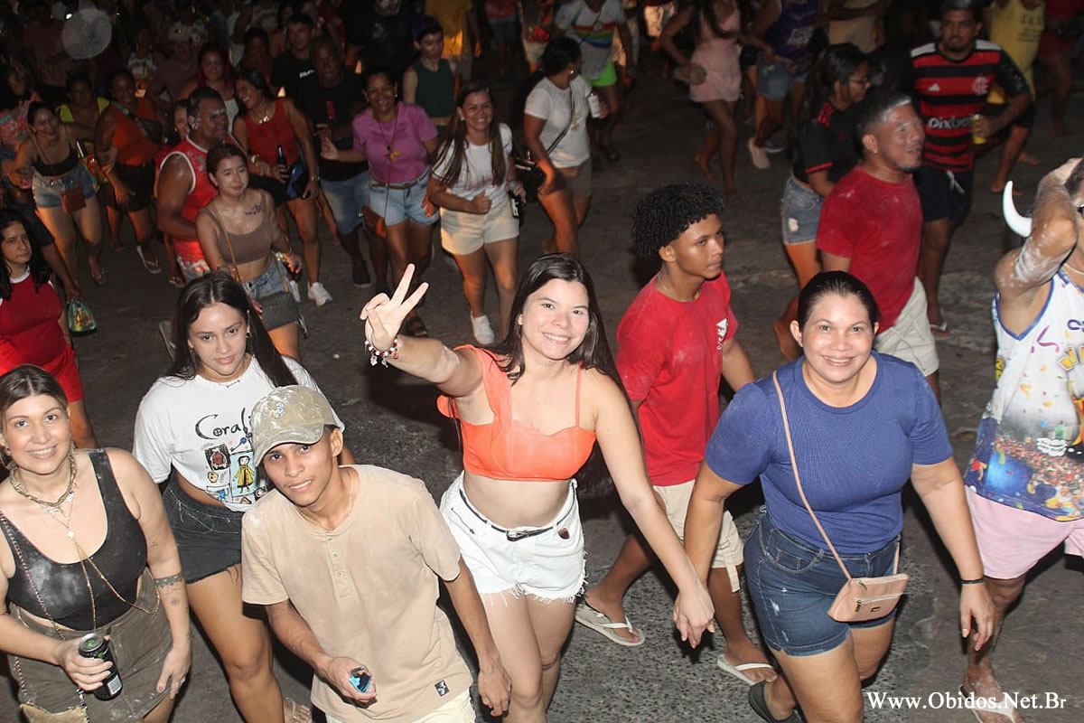 Um dos momentos mais marcantes da noite aconteceu na subida do Mercado de Óbidos, quando o bloco acelerou o ritmo e os foliões subiram a ladeira correndo, em uma cena que simboliza bem a paixão, a energia e a entrega de quem acompanha o tradicional bloco. A cena, registrada em vídeo, já vem sendo bastante comentada nas redes sociais e reforça o carisma do Pai da Pinga.