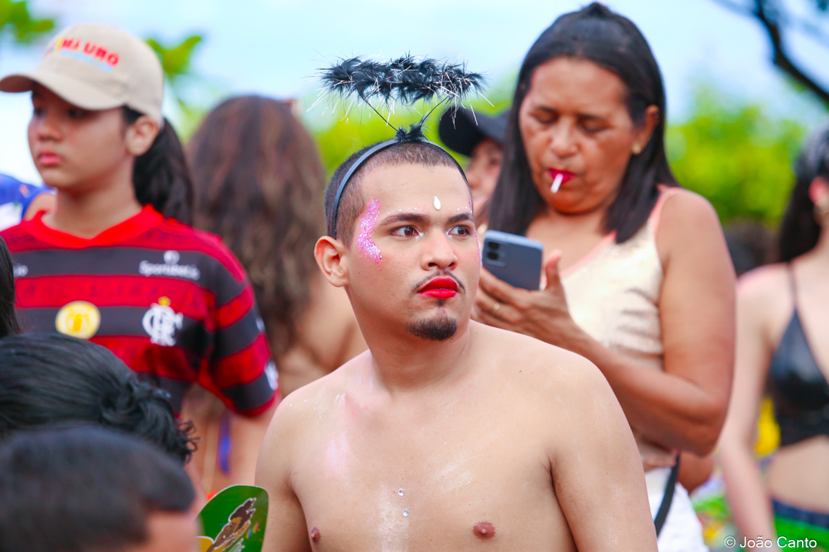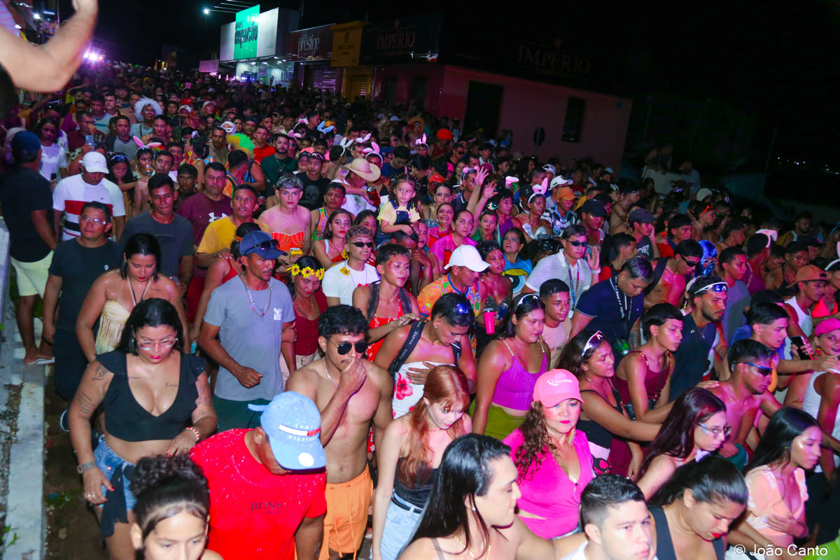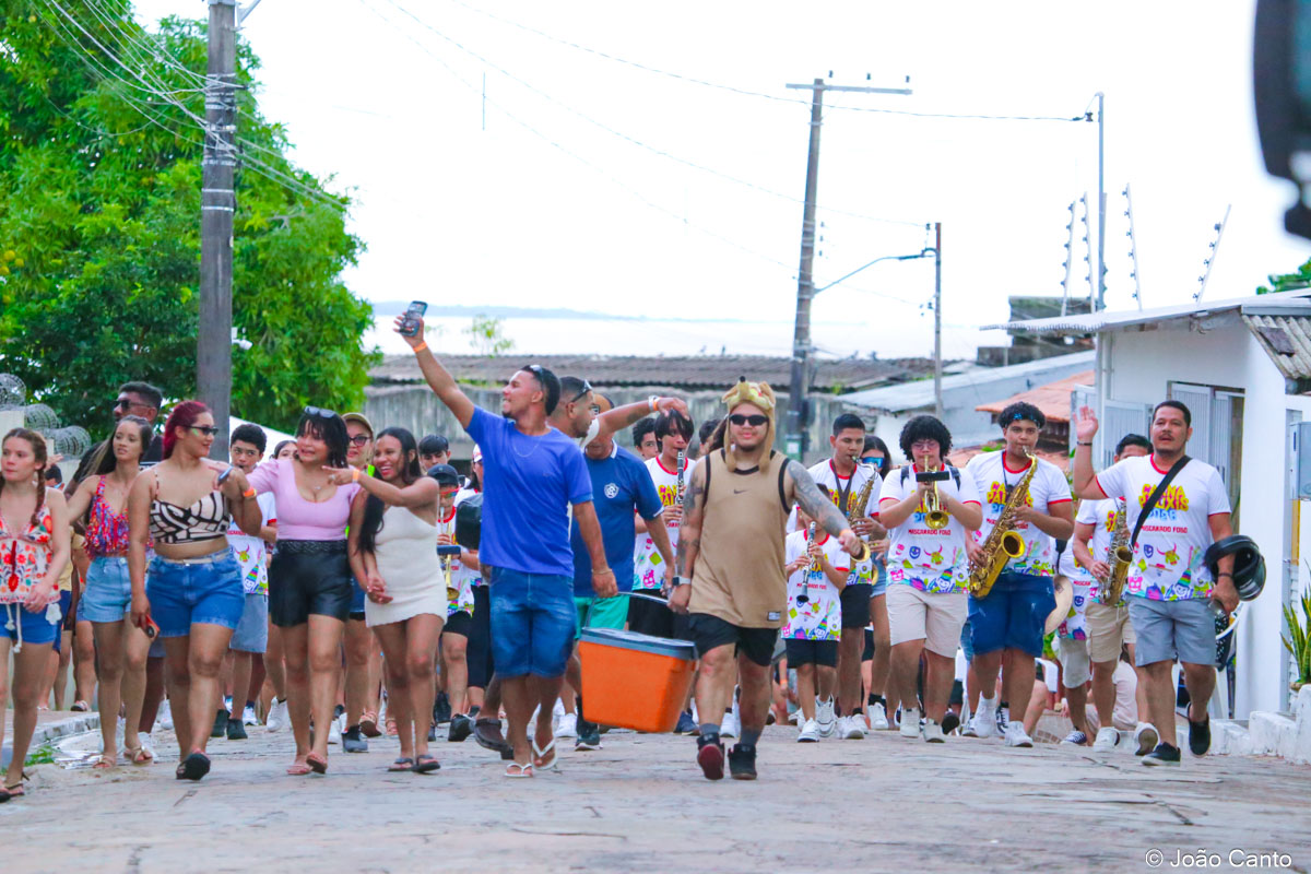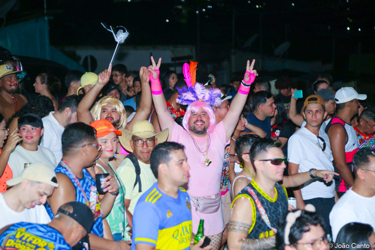 A concentração teve início ainda no fim da tarde, na Praça de Sant’Ana, que rapidamente ficou tomada pelos foliões. Às 18h30, o bloco partiu em direção à Rua Bacuri, arrastando uma multidão vibrante. Um dos grandes destaques foi a música-tema, composta por Jorge Ary Ferreira e Música de Cancão, que convidou as comunidades interioranas a deixarem os afazeres de lado e se juntarem à festa, celebrando a alegria do carnaval.