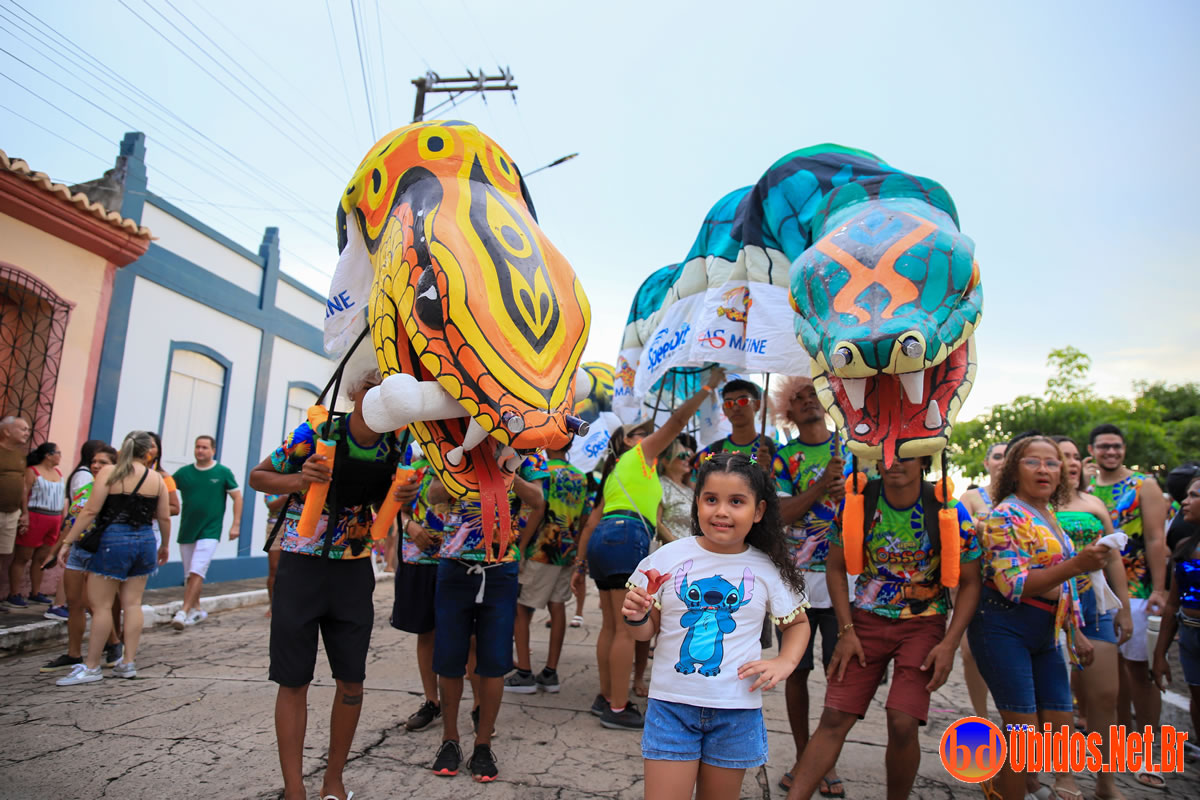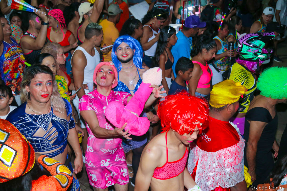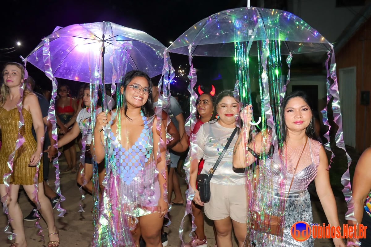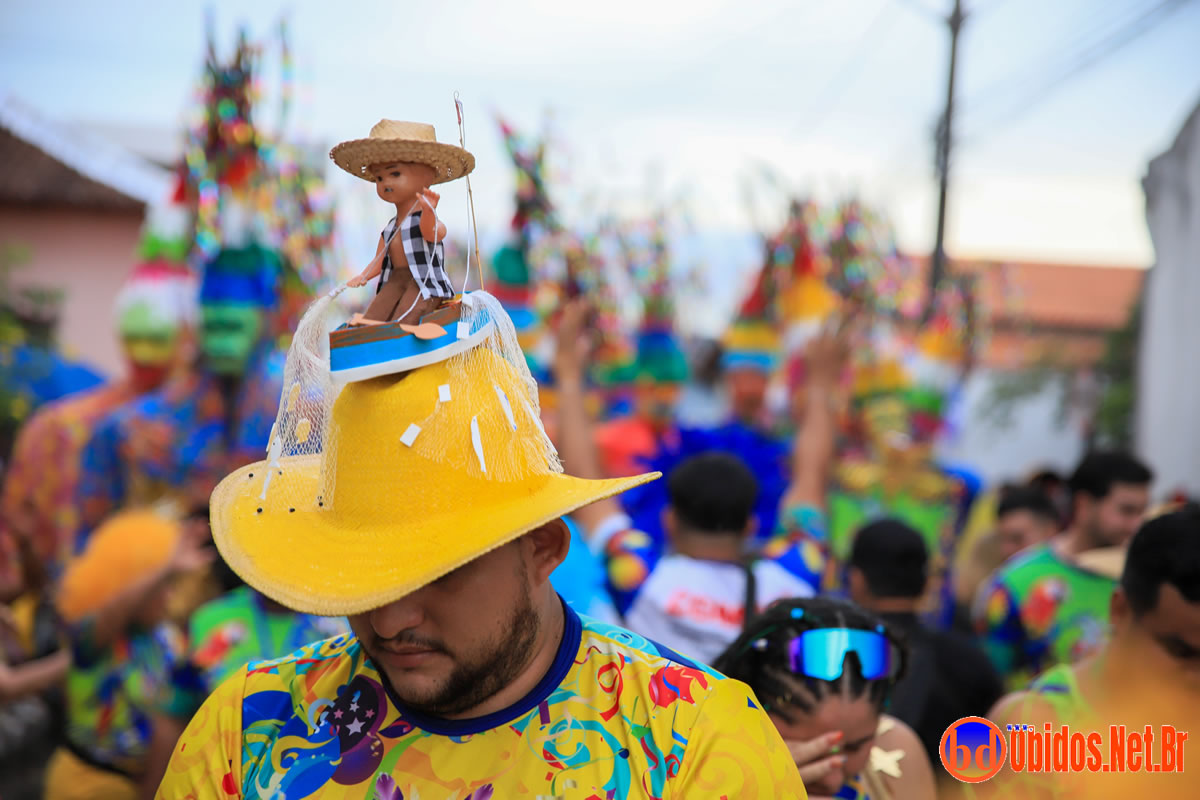 A concentração teve início ainda no fim da tarde, na Praça de Sant’Ana, que rapidamente ficou tomada pelos foliões. Às 18h30, o bloco partiu em direção à Rua Bacuri, arrastando uma multidão vibrante. Um dos grandes destaques foi a música-tema, composta por Jorge Ary Ferreira e Música de Cancão, que convidou as comunidades interioranas a deixarem os afazeres de lado e se juntarem à festa, celebrando a alegria do carnaval.