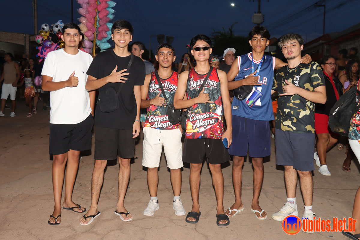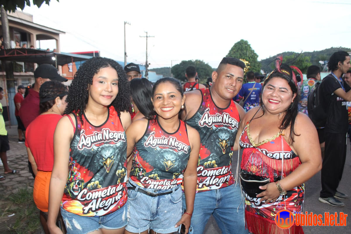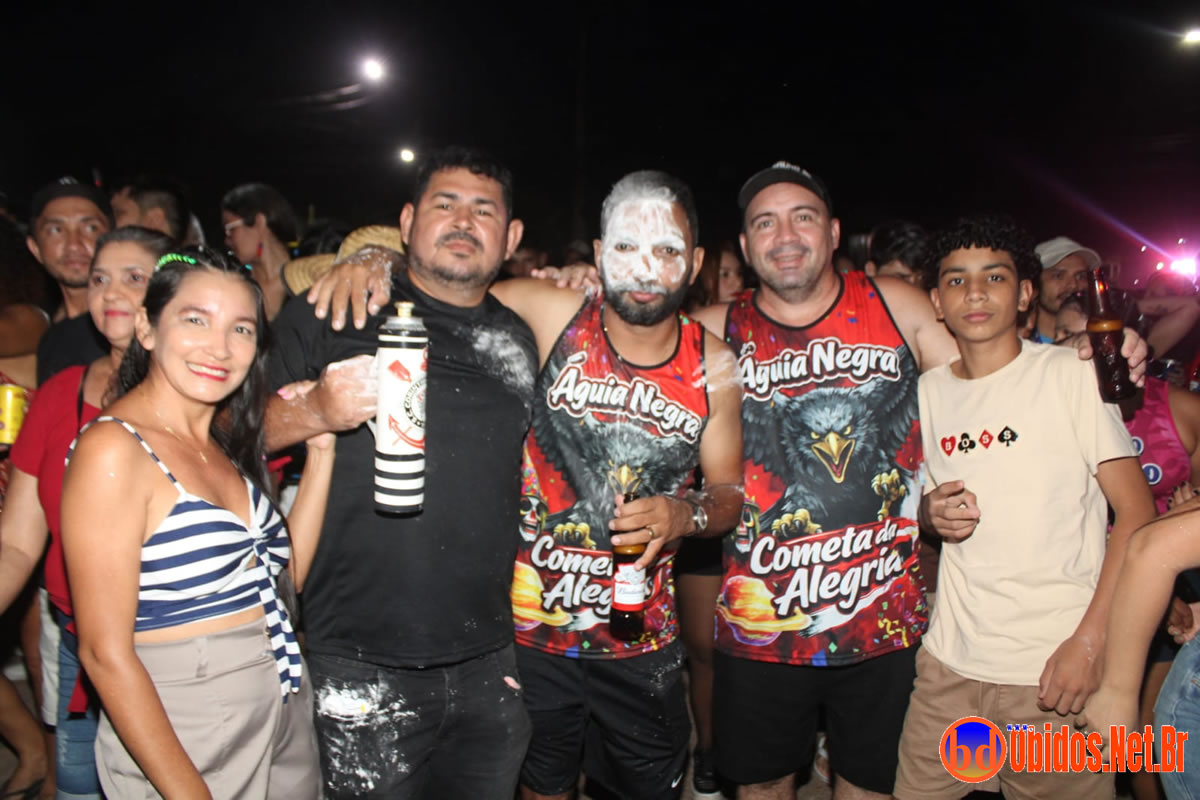 Neste sábado, 14 de março, as ruas de Óbidos foram tomadas por uma verdadeira avalanche de alegria e entusiasmo com o desfile do Bloco Águia Negra, um dos mais tradicionais do Carnapauxis 2026. Conhecido como o “Bloco do Povão”, o Águia Negra levou para a avenida o tema “Cometa da Alegria”, em uma homenagem vibrante ao próprio Carnapauxis — o cometa que arrasta multidões pelas ruas da cidade.
