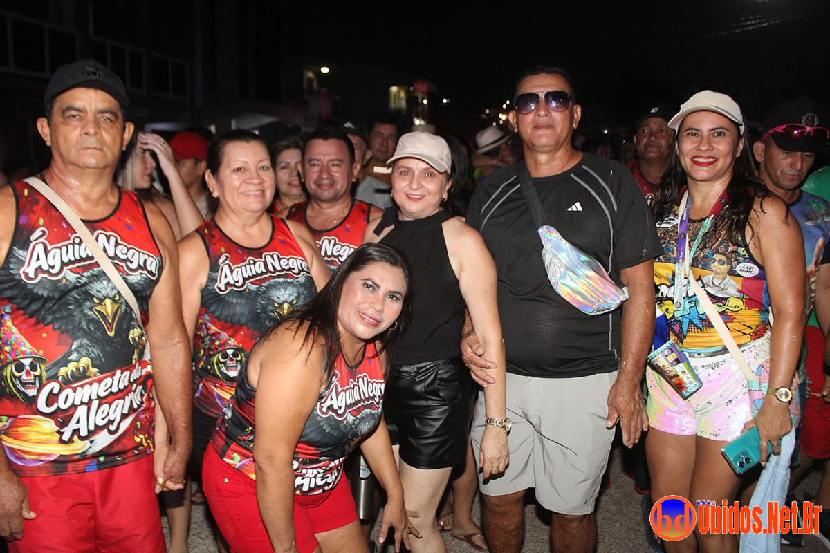 Com suas cores tradicionais, o vermelho e o preto, o bloco reafirmou força, identidade e popularidade, reunindo milhares de foliões em um dos momentos mais aguardados do carnaval obidense. As origens do Águia Negra estão ligadas ao time de futebol Vila Nova, do bairro Cidade Nova, e essa conexão popular se refletiu no envolvimento intenso do público ao longo de todo o percurso.