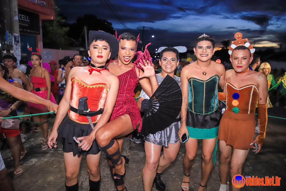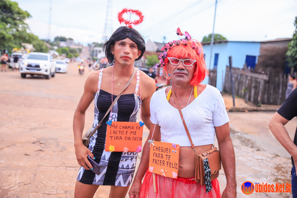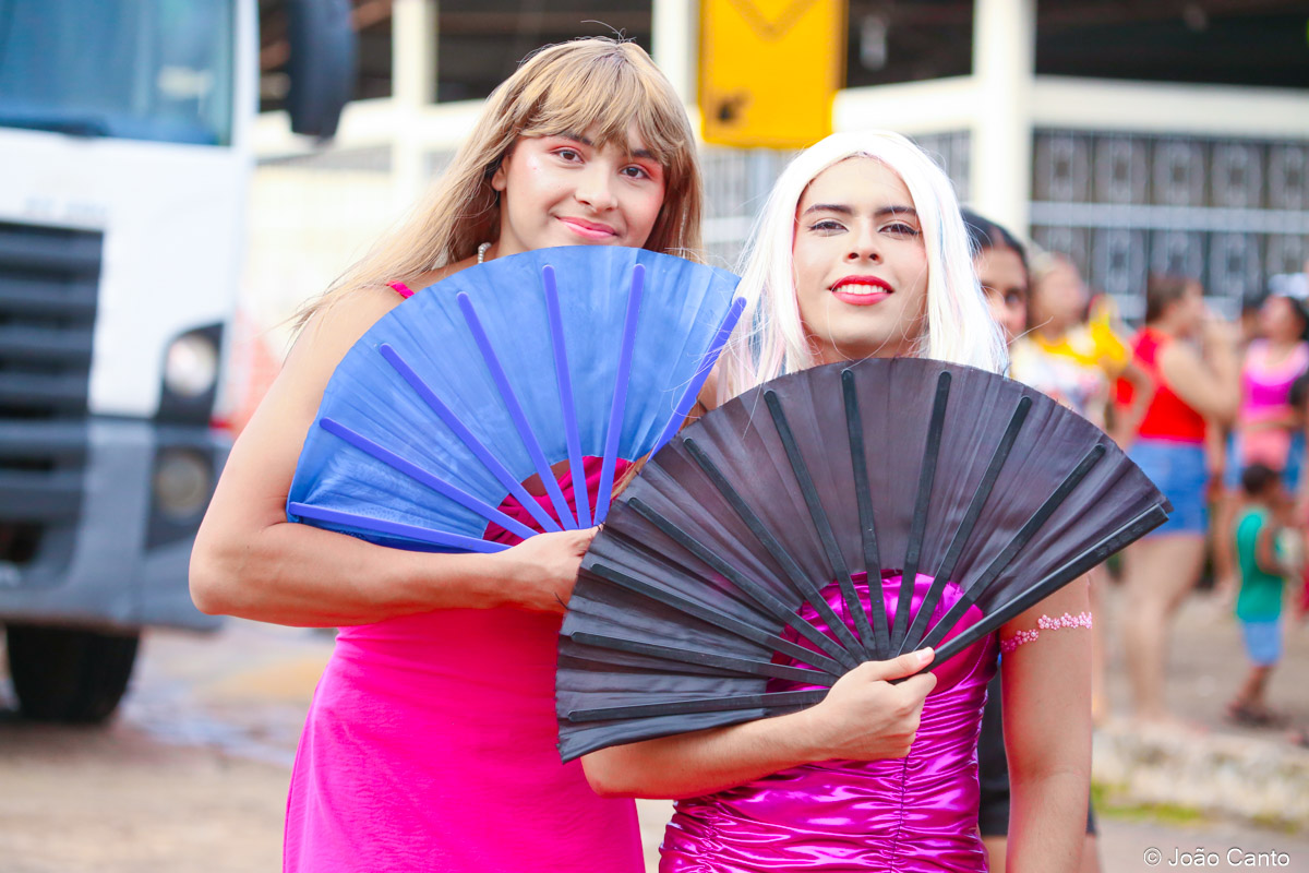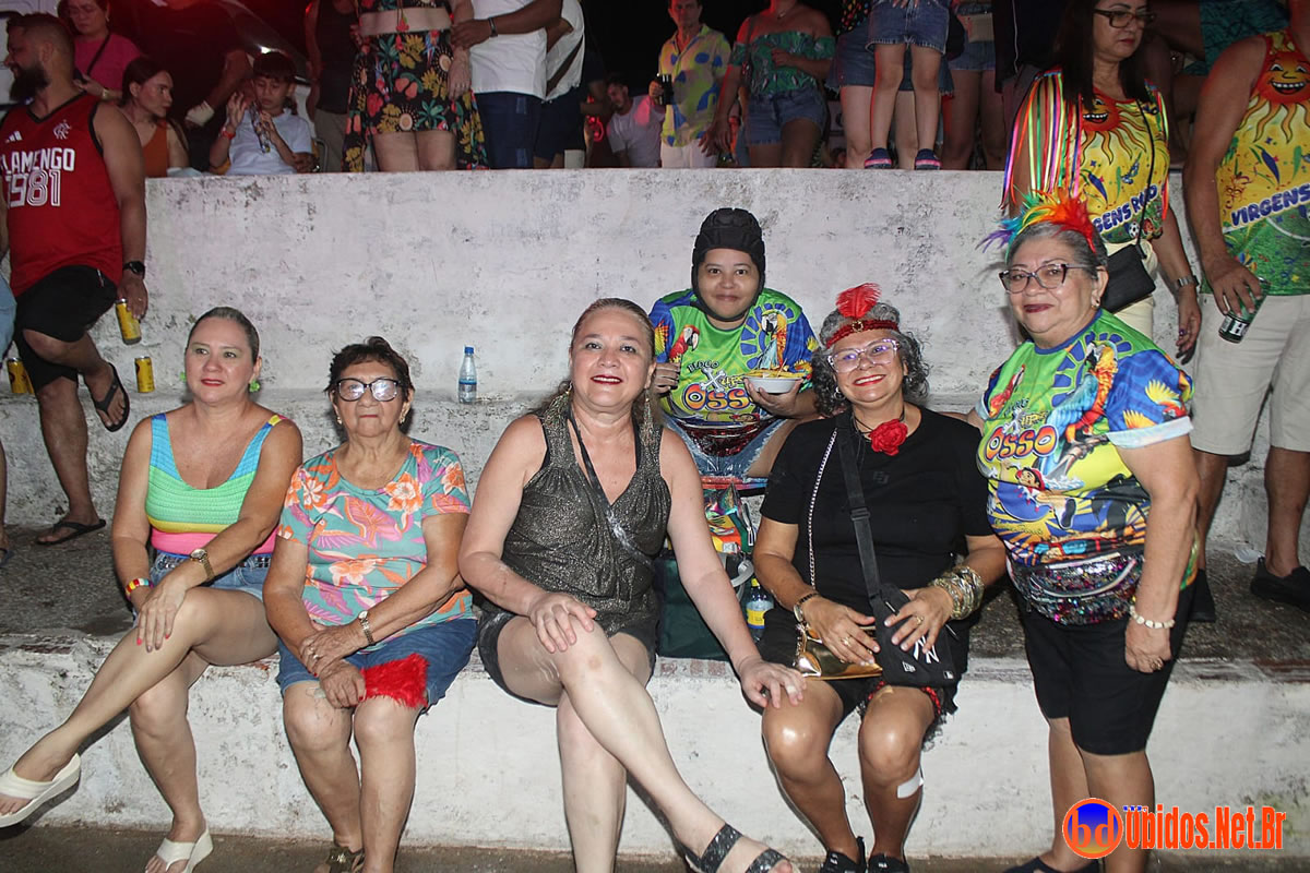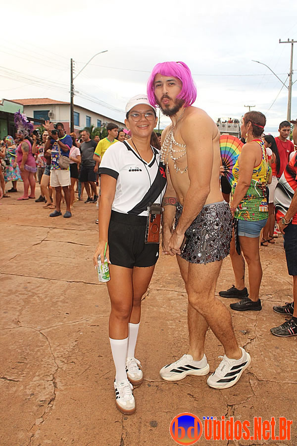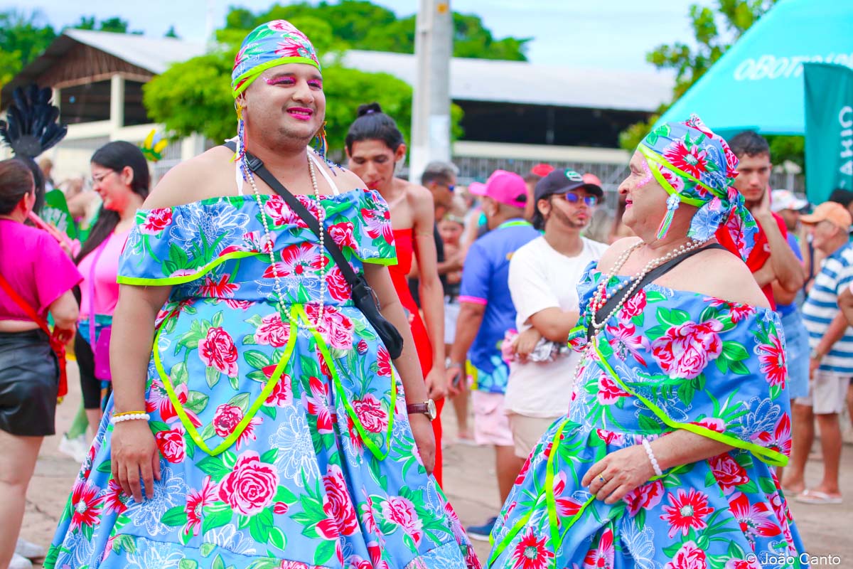 Tradicionalmente conhecido pela inversão de papéis — com homens vestidos de mulher e mulheres caracterizadas como homens —, o Bloco das Virgens transformou o percurso em um verdadeiro espetáculo de cores, música e diversão. Com o tema “As Virgens na Copa do Mundo”, a comissão de frente contou com 12 virgens, além da presença marcante do ícone do carnaval obidense, o Mascarado Fobó, e das personagens que simbolizam a essência do bloco.