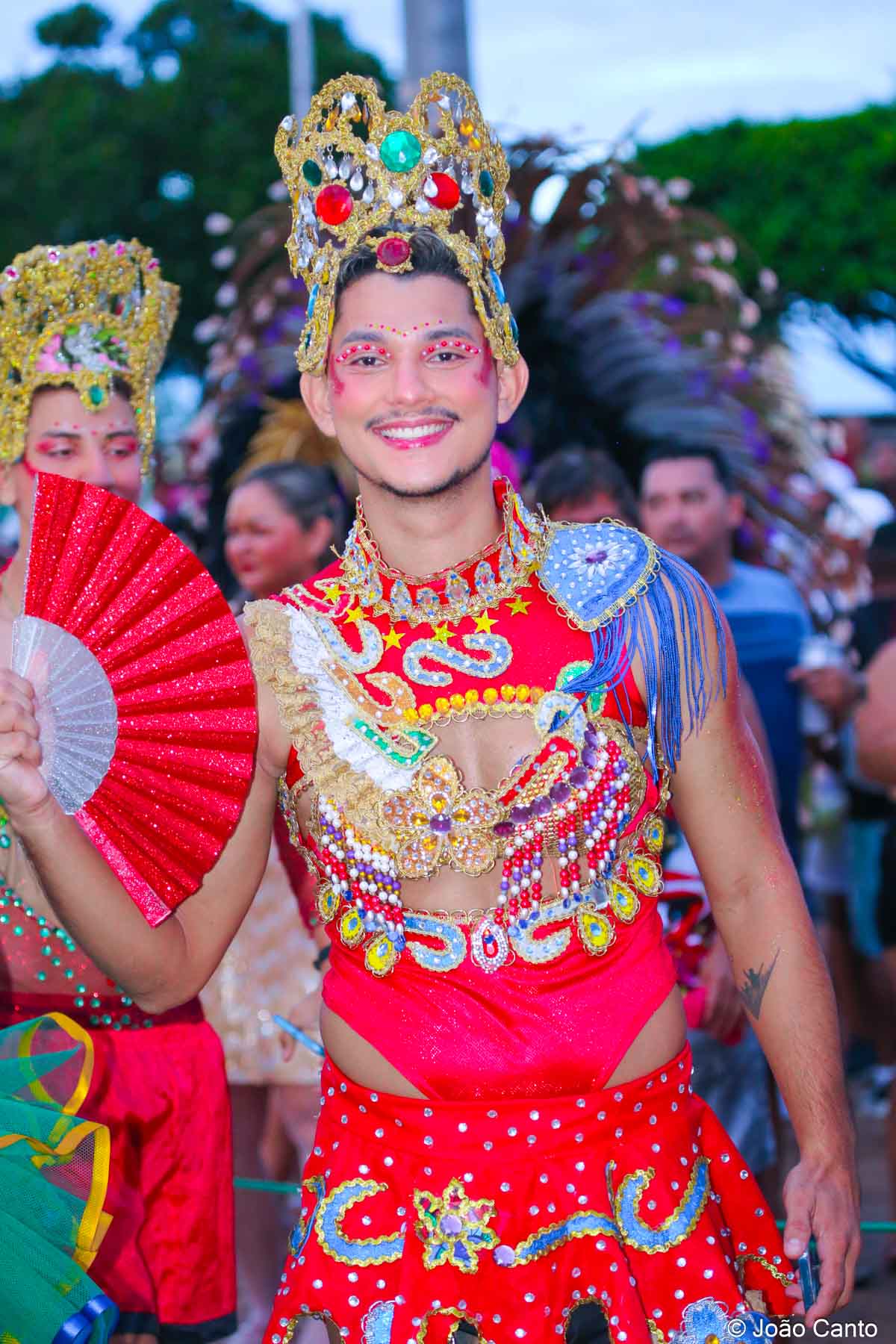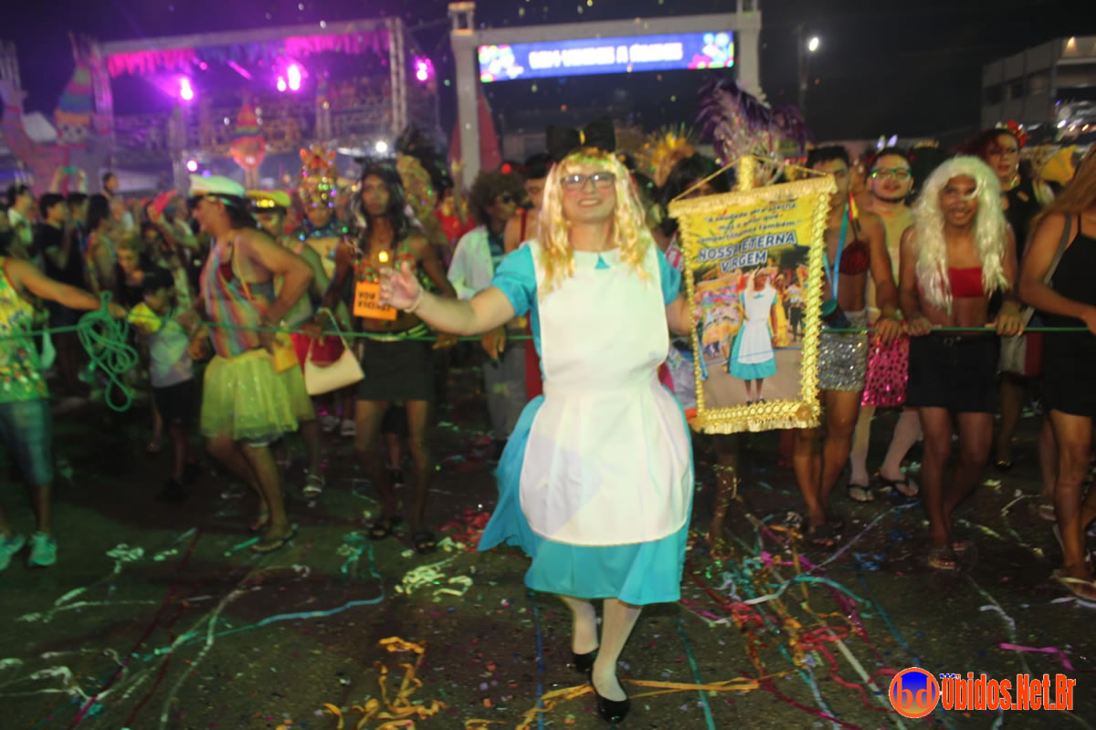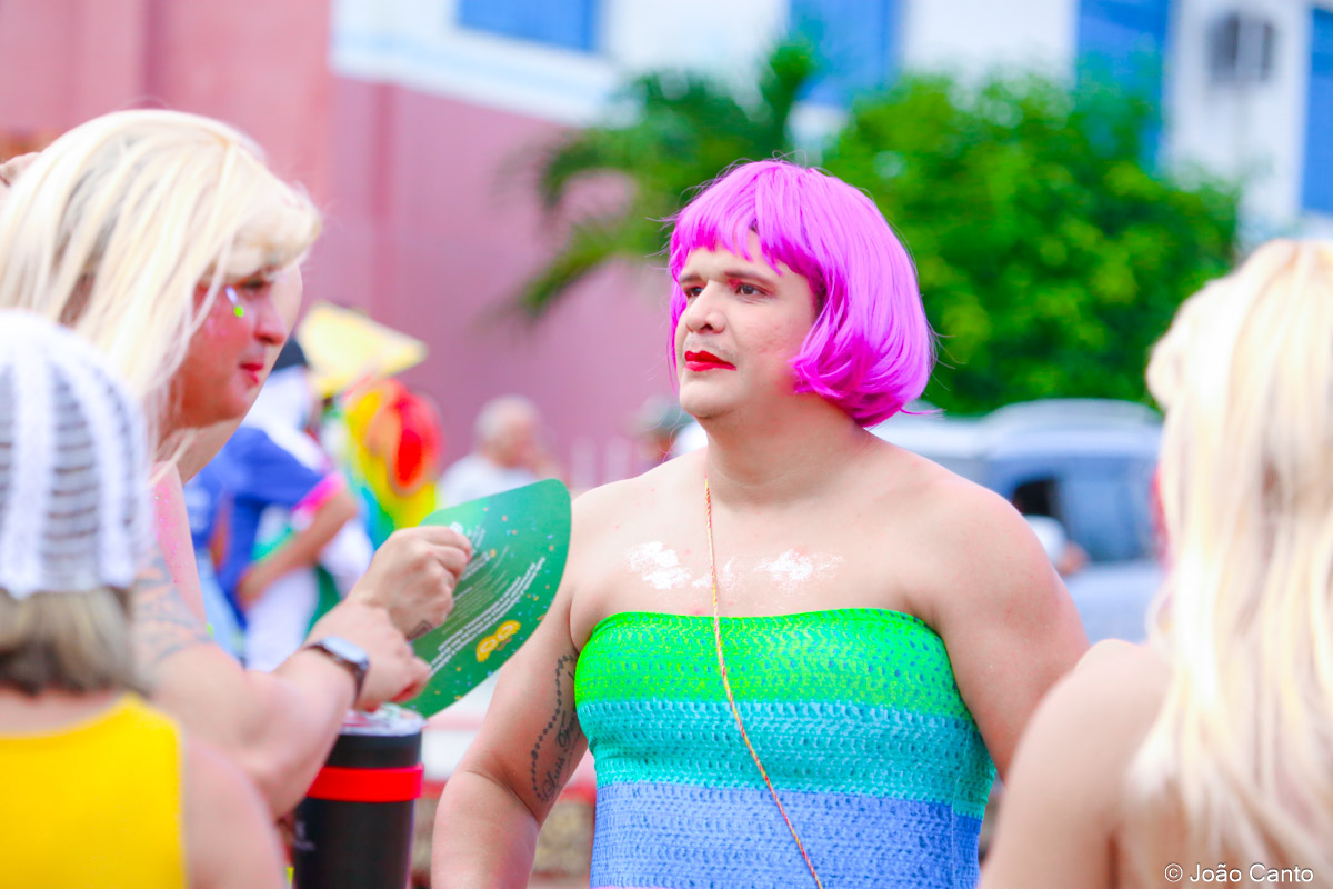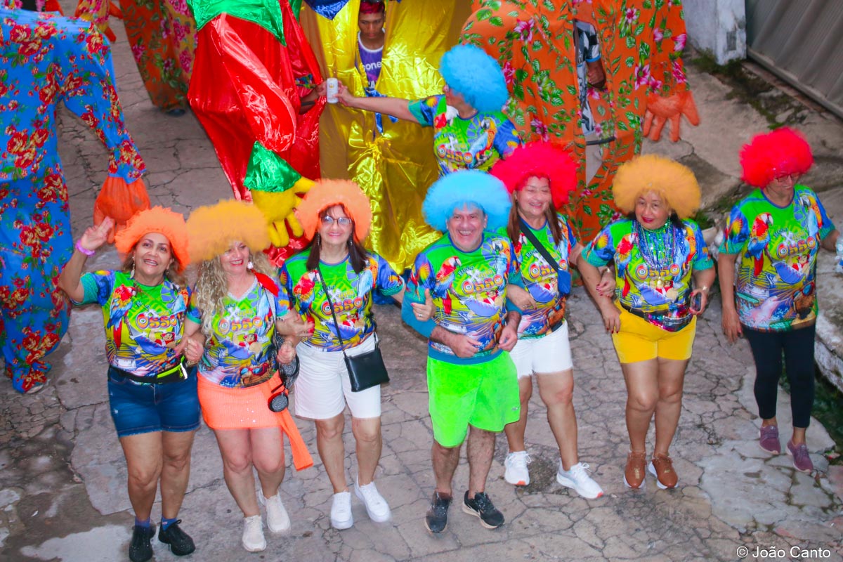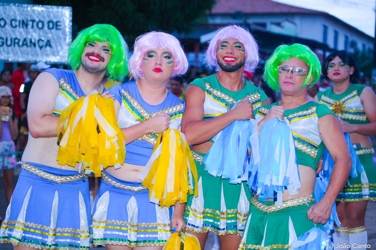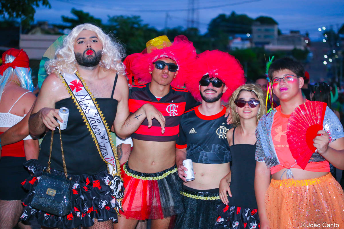 Tradicionalmente conhecido pela inversão de papéis — com homens vestidos de mulher e mulheres caracterizadas como homens —, o Bloco das Virgens transformou o percurso em um verdadeiro espetáculo de cores, música e diversão. Com o tema “As Virgens na Copa do Mundo”, a comissão de frente contou com 12 virgens, além da presença marcante do ícone do carnaval obidense, o Mascarado Fobó, e das personagens que simbolizam a essência do bloco.