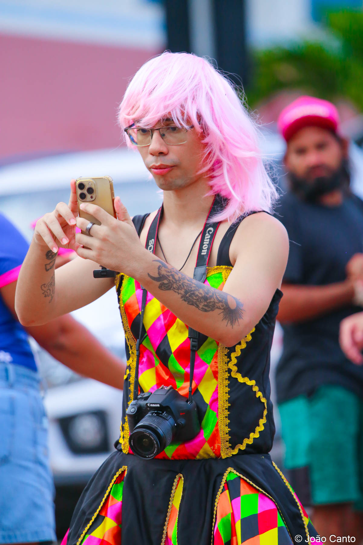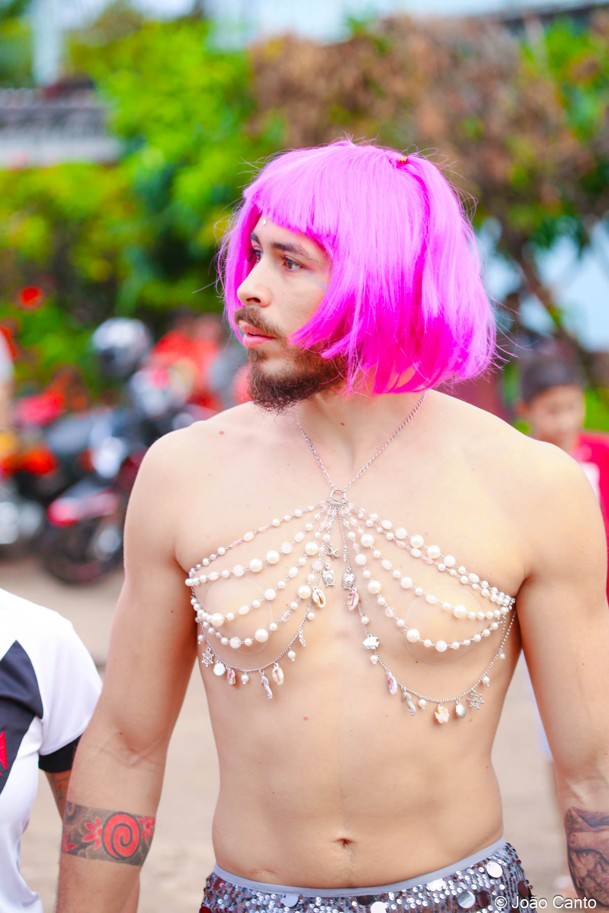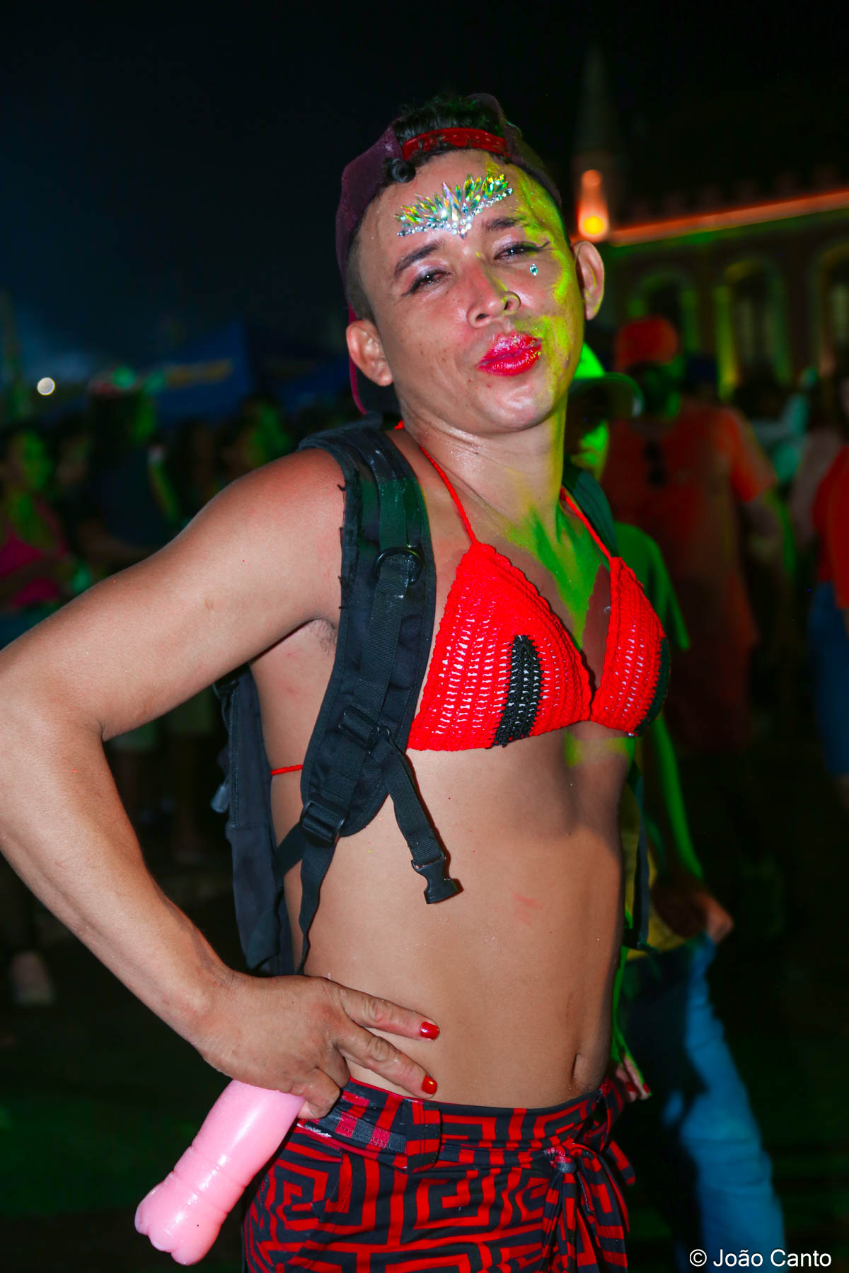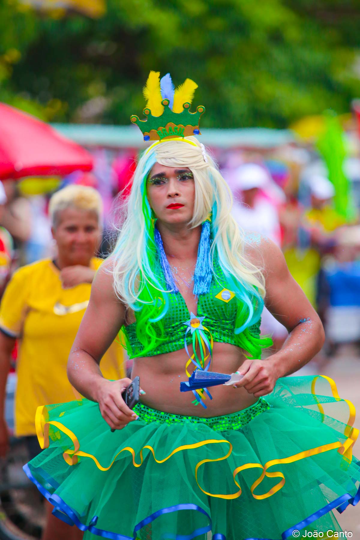 Tradicionalmente conhecido pela inversão de papéis — com homens vestidos de mulher e mulheres caracterizadas como homens —, o Bloco das Virgens transformou o percurso em um verdadeiro espetáculo de cores, música e diversão. Com o tema “As Virgens na Copa do Mundo”, a comissão de frente contou com 12 virgens, além da presença marcante do ícone do carnaval obidense, o Mascarado Fobó, e das personagens que simbolizam a essência do bloco.