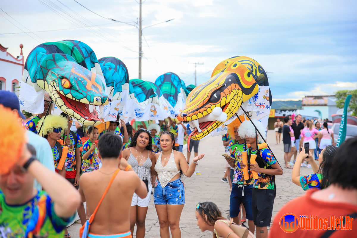 Óbidos mostrou mais uma vez que seus moradores têm fôlego de sobra quando o assunto é carnaval. Além dos sete blocos oficiais que desfilam durante os seis dias do Carnapauxis — Vai-ou-Raxa, Serra, Mirim, Águia, Xupaosso, Morro e Virgens —, a festa também ganha força com blocos alternativos que ampliam as opções de brincadeira para todos os públicos.