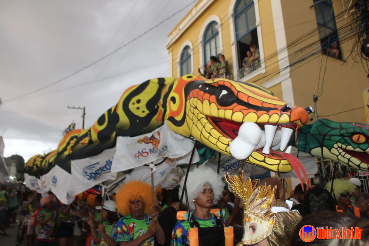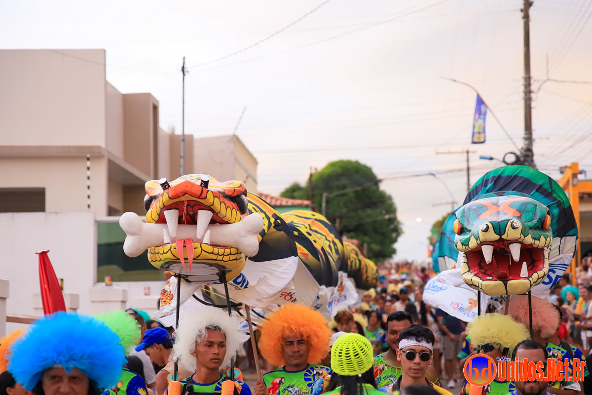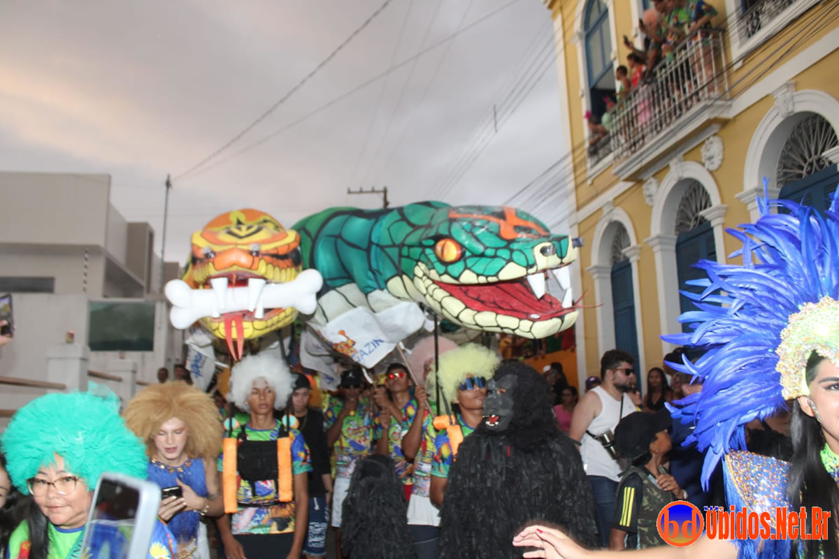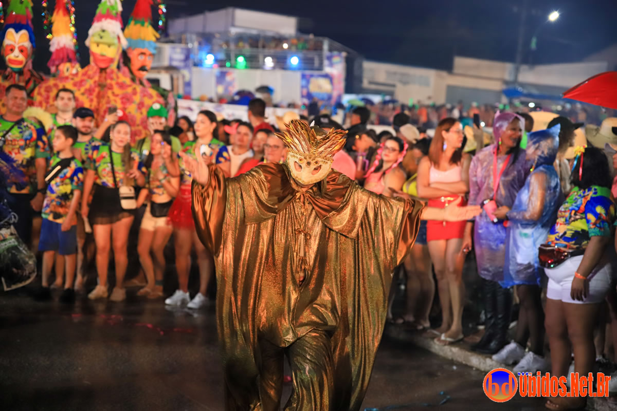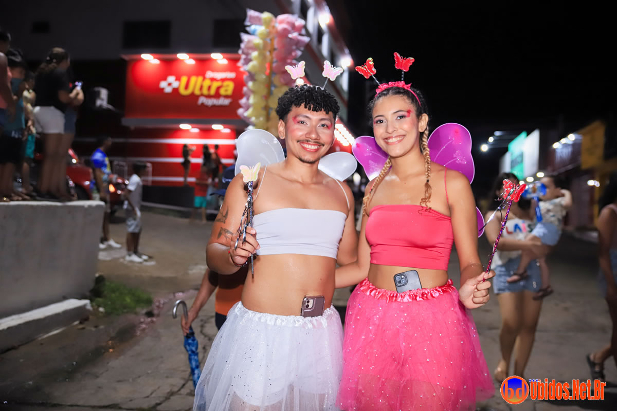 O porta-estandarte foi Andersom Jean Vasconcelos, conduzindo o pavilhão à frente de um desfile repleto de figurinos criativos — de tigresas e bailarinas a noivas e colegiais. A animação ficou por conta das bandas Netinho Moreno, Bandas Elite e Brisa, que comandaram os trios elétricos e garantiram o ritmo contagiante durante todo o percurso.