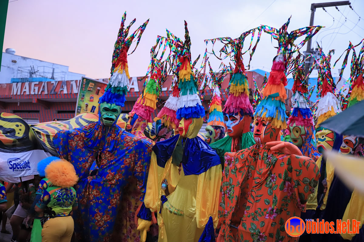 O desfile apresentou diversas alas, incluindo a tradicional porta-estandarte, a rainha do bloco, baianas, frevo e figuras lendárias do Unidos do Morro. O grande destaque ficou para os Mascarados Fobós, cuja tradição é manter a identidade oculta dos foliões. Antigamente, era motivo de orgulho passar todo o Carnaval sem ser reconhecido, garantindo a diversão por vários dias de festa.