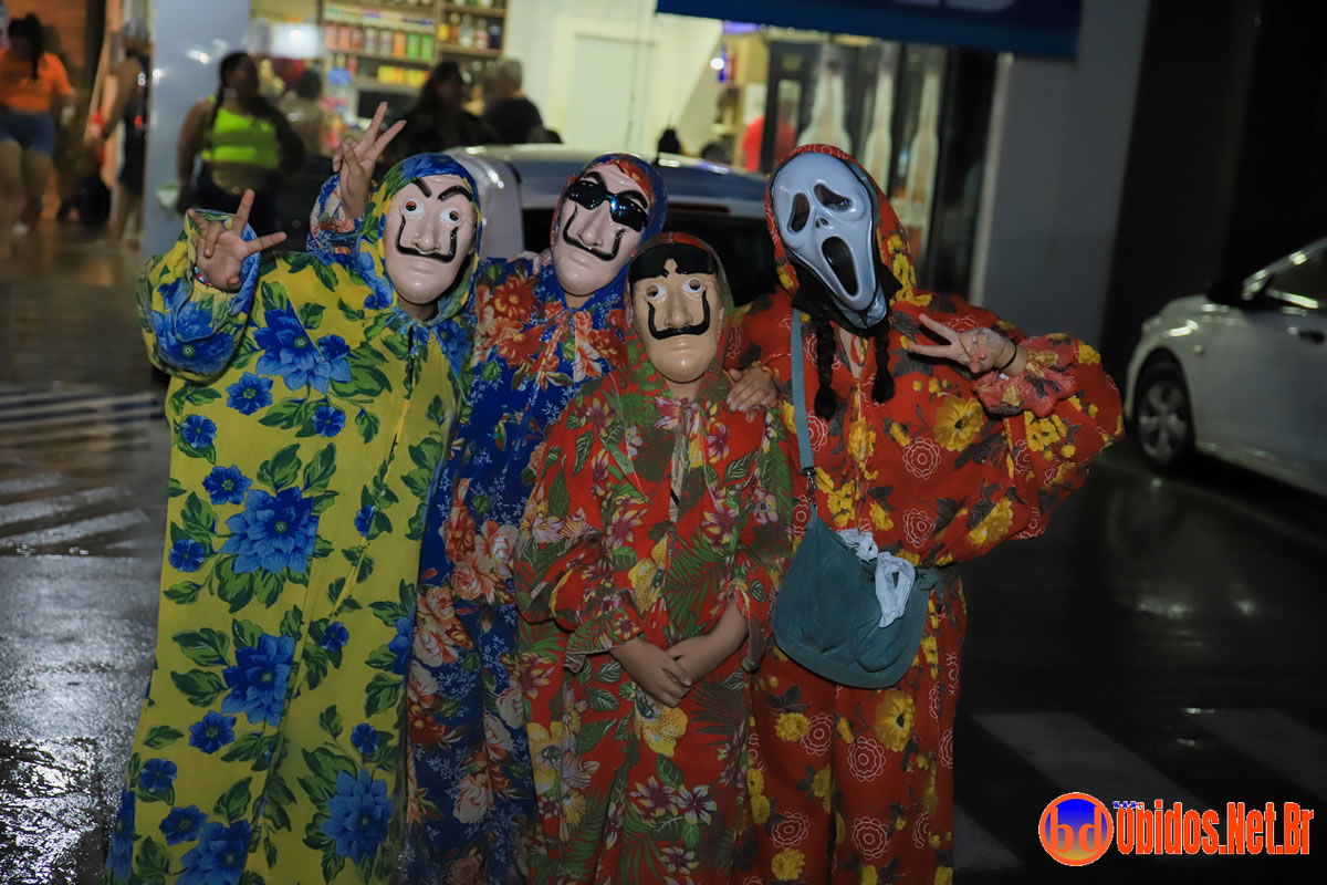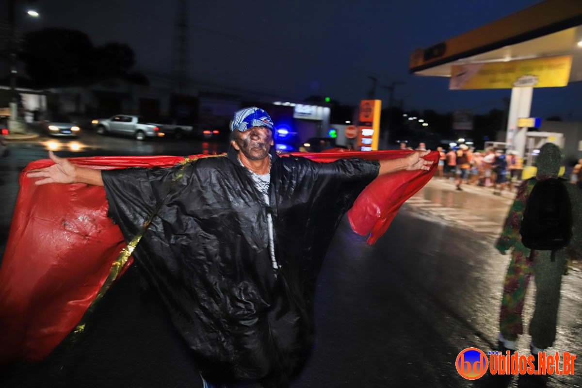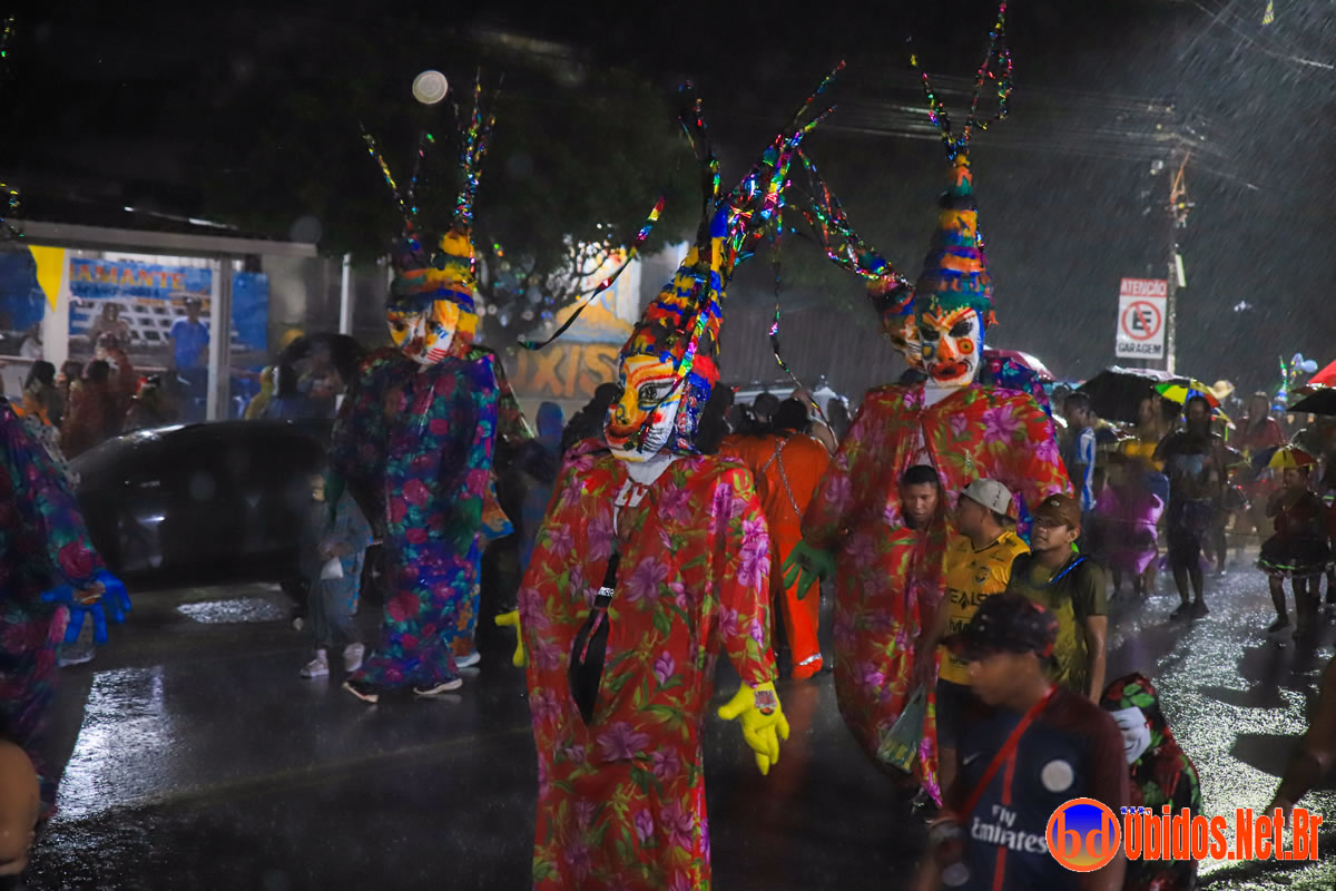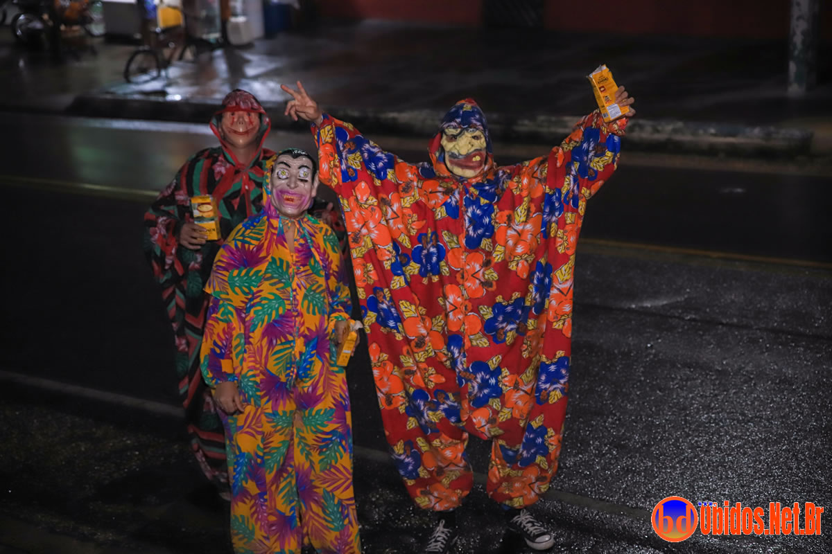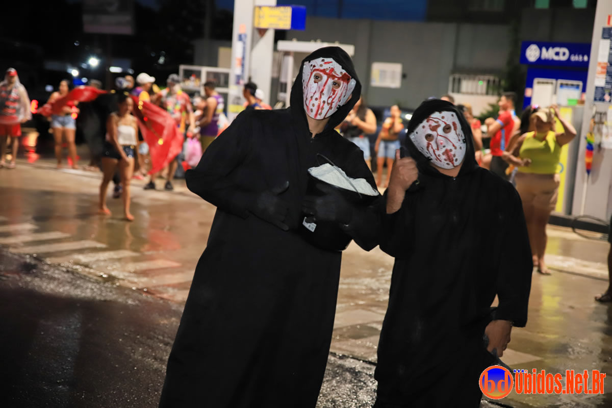 O desfile teve início por volta das 19h30, por baixo de uma chuva torrencial, mesmo assim seus brincantes, enfrentaram a chuva e seguiram pelas ruas da cidade. A animação ficou sob o comando do cantor Marcos Cley, acompanhado pelas bandas 2020 Wolts e Lazer nos trios elétricos, conduzindo os brincantes até a Arena da Folia. Durante o percurso, os Mascarados Fobós espalharam maisena pelo caminho, tornando o evento ainda mais interativo e festivo.