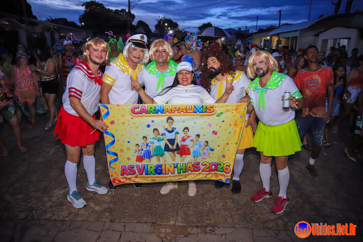 Criado em 1993, no Bairro de Santa Terezinha, o Bloco das Virgens começou como uma brincadeira restrita aos homens vestidos de mulheres. Com o passar dos anos, cresceu, ganhou novos adeptos e se consolidou como um dos momentos mais aguardados do Carnapauxis. Hoje, as mulheres também participam ativamente, vestindo-se de homens e garantindo a diversão de todos.