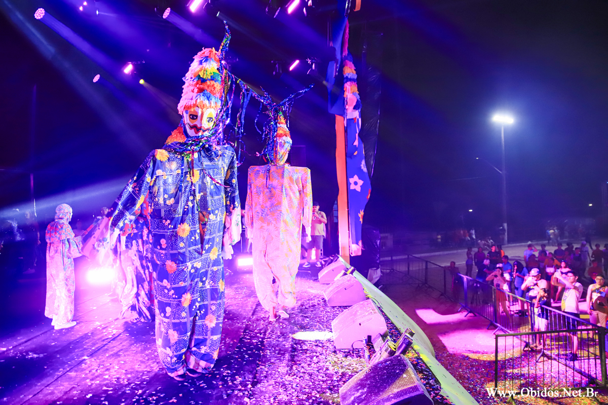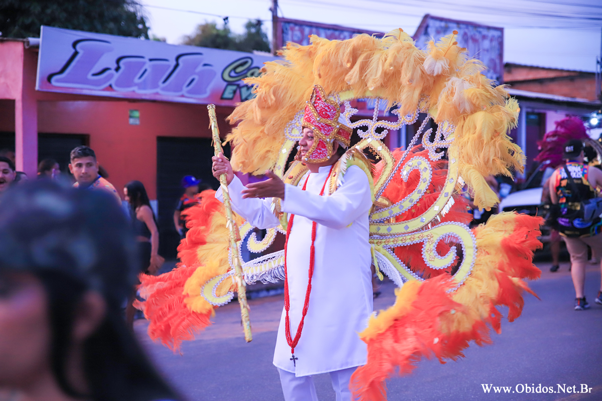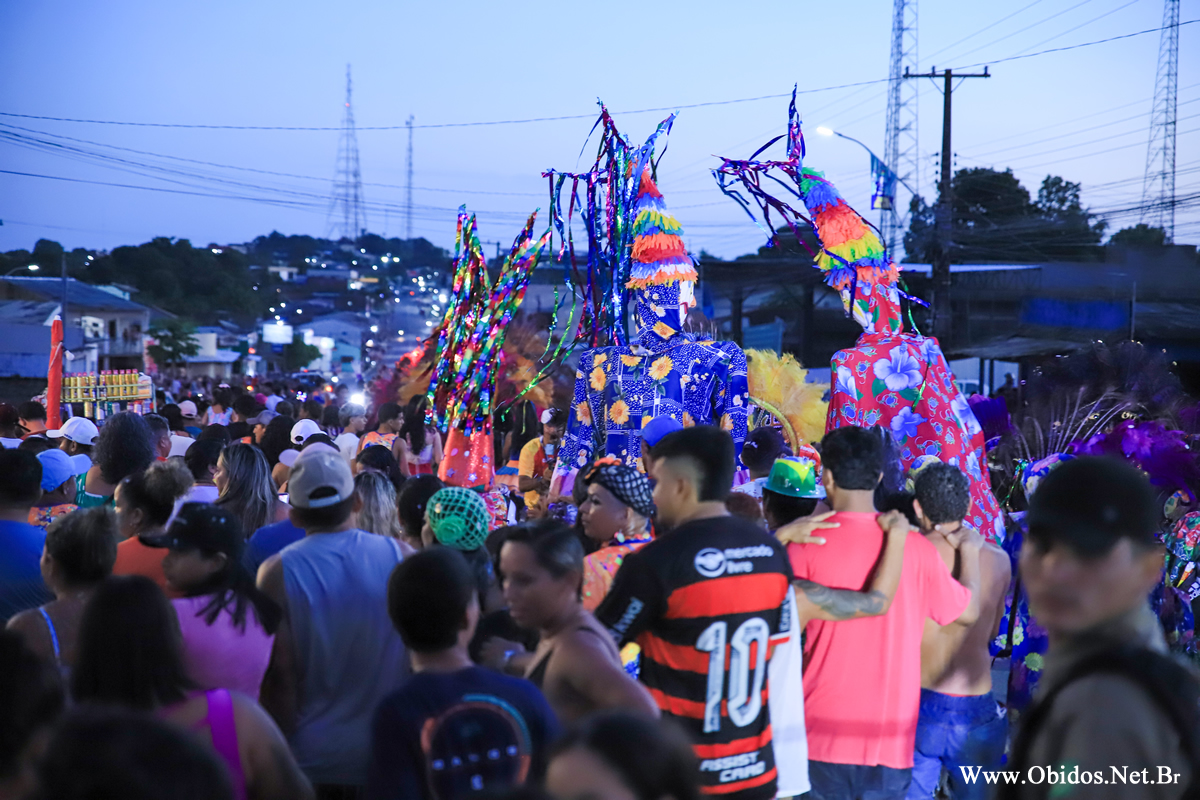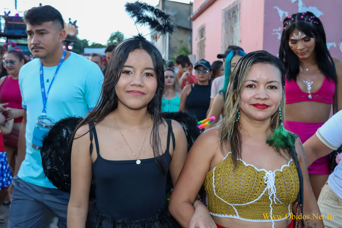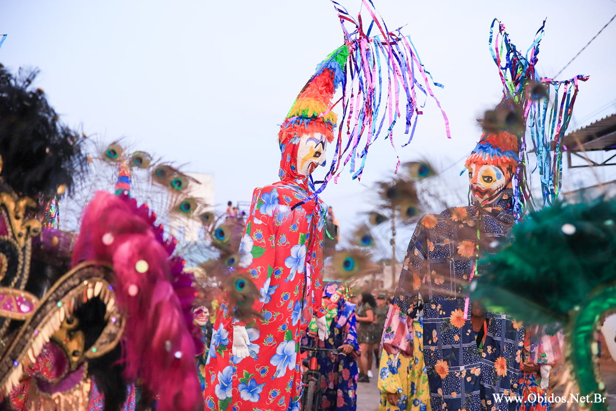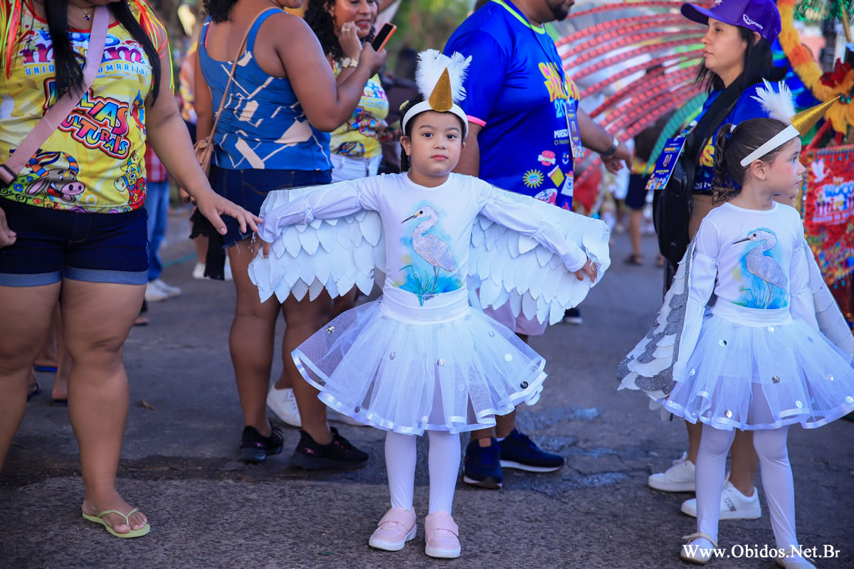 Durante o percurso, outros integrantes também chamaram atenção ao integrar as diversas alas do bloco, como a Ala da Garcinha, Ala da Arara, Ala das Fadas, Ala das Índias, Ala dos Caçadores e os tradicionais bois Pai do Campo e Pintadinho. Todas as alas prestaram homenagem aos personagens dos cordões de pássaros e bois, manifestações culturais profundamente enraizadas na história e na identidade do povo obidense.