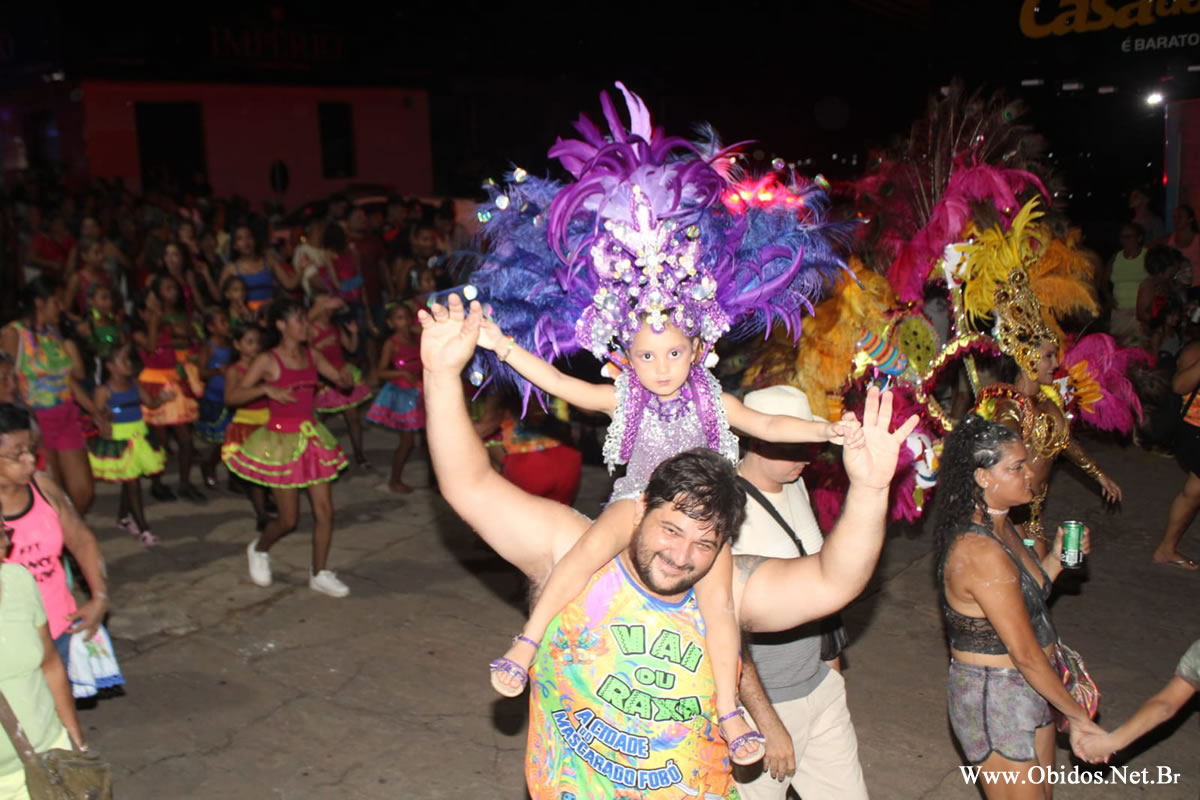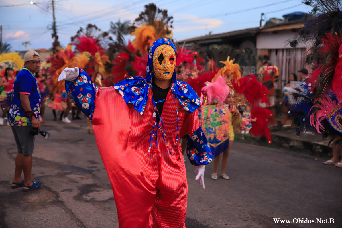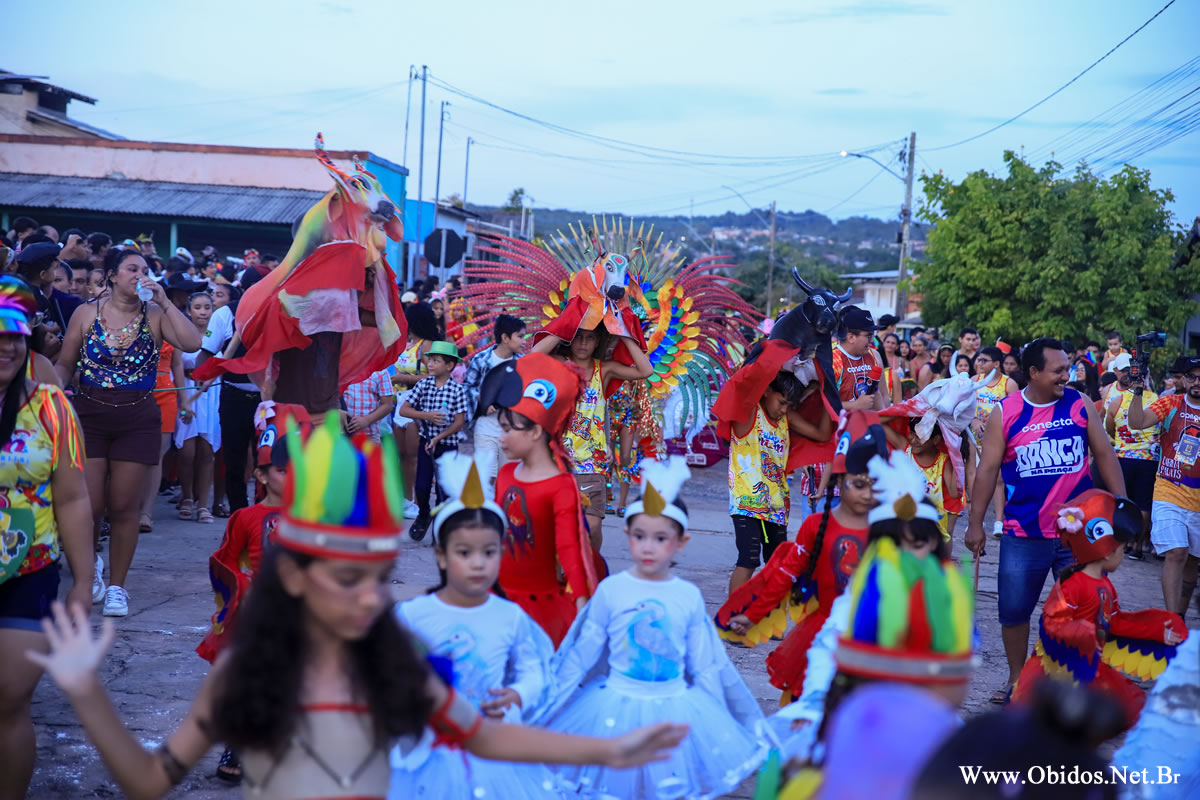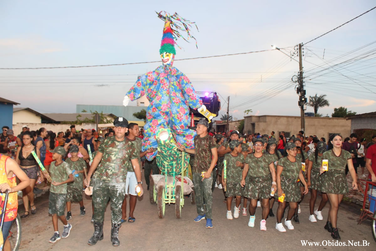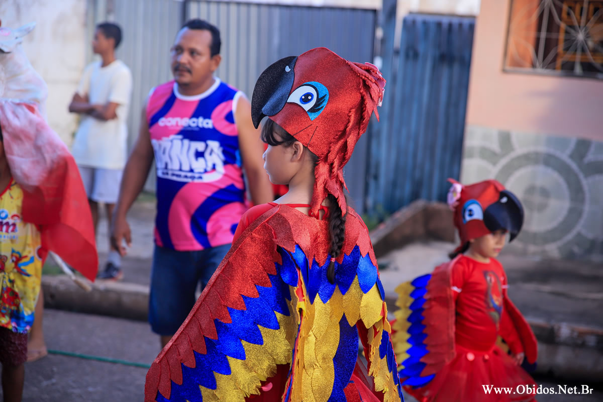 Durante o percurso, outros integrantes também chamaram atenção ao integrar as diversas alas do bloco, como a Ala da Garcinha, Ala da Arara, Ala das Fadas, Ala das Índias, Ala dos Caçadores e os tradicionais bois Pai do Campo e Pintadinho. Todas as alas prestaram homenagem aos personagens dos cordões de pássaros e bois, manifestações culturais profundamente enraizadas na história e na identidade do povo obidense.
