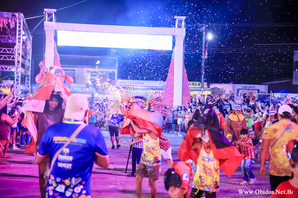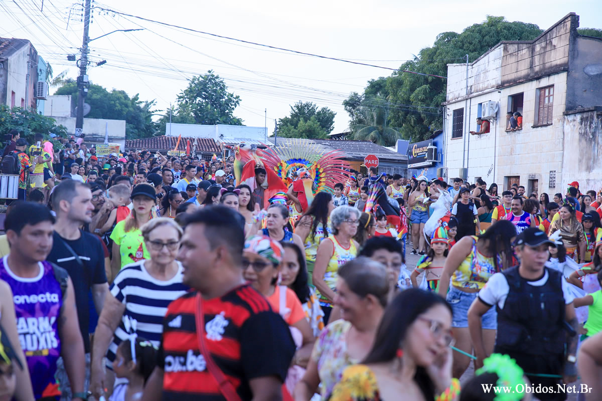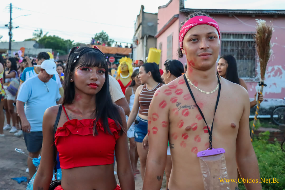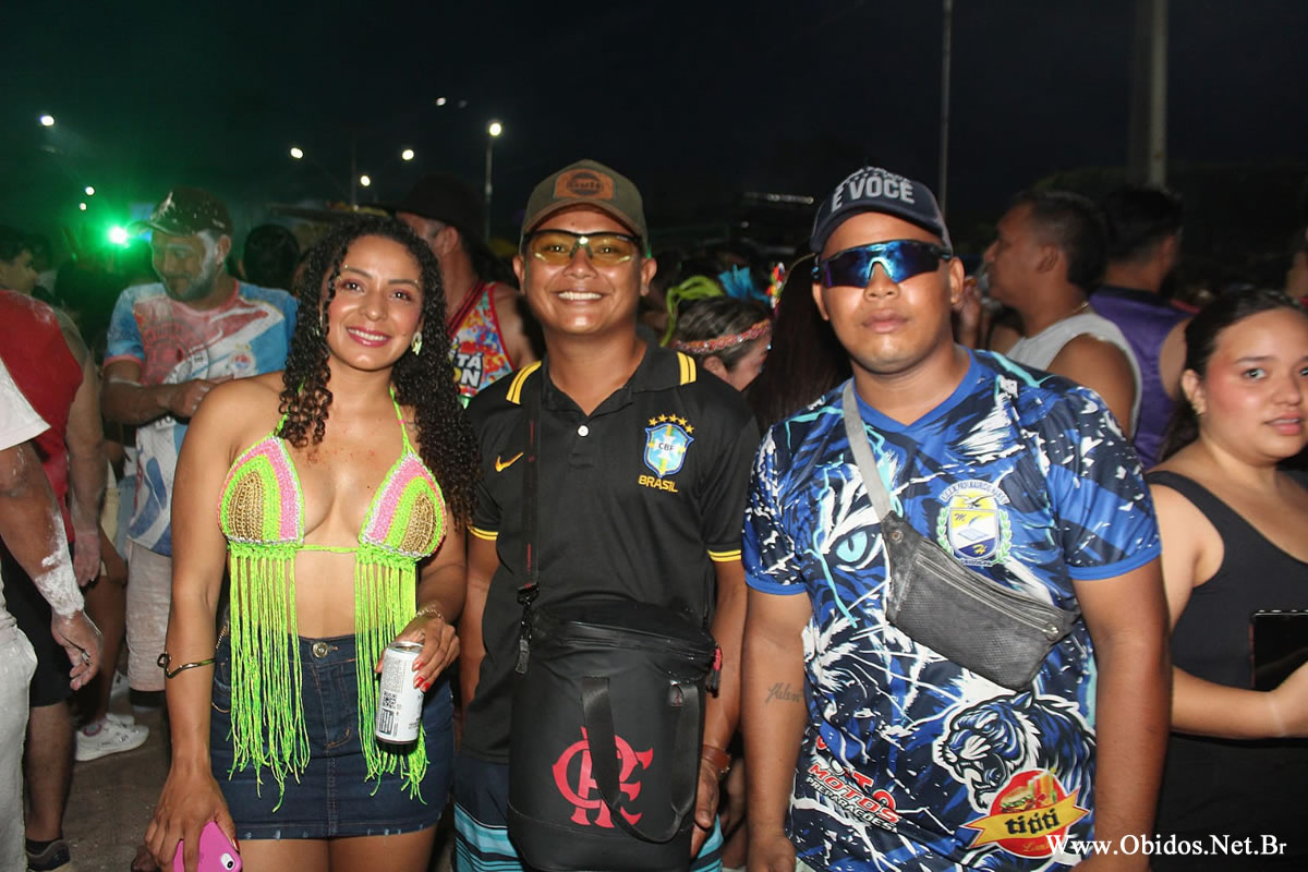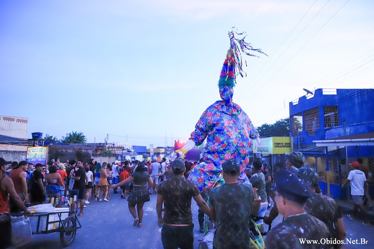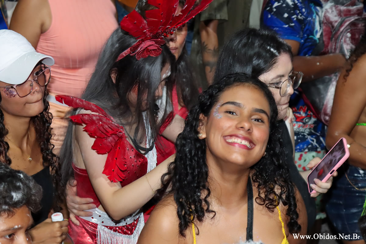 Durante o percurso, outros integrantes também chamaram atenção ao integrar as diversas alas do bloco, como a Ala da Garcinha, Ala da Arara, Ala das Fadas, Ala das Índias, Ala dos Caçadores e os tradicionais bois Pai do Campo e Pintadinho. Todas as alas prestaram homenagem aos personagens dos cordões de pássaros e bois, manifestações culturais profundamente enraizadas na história e na identidade do povo obidense.