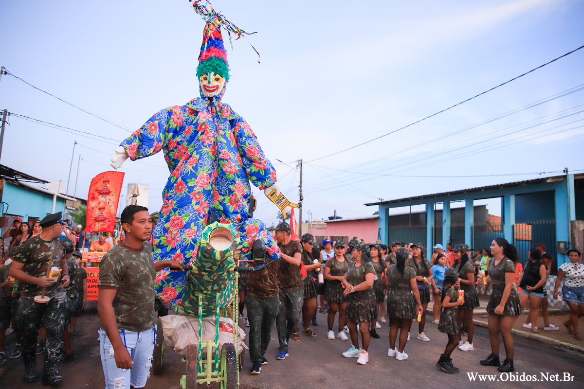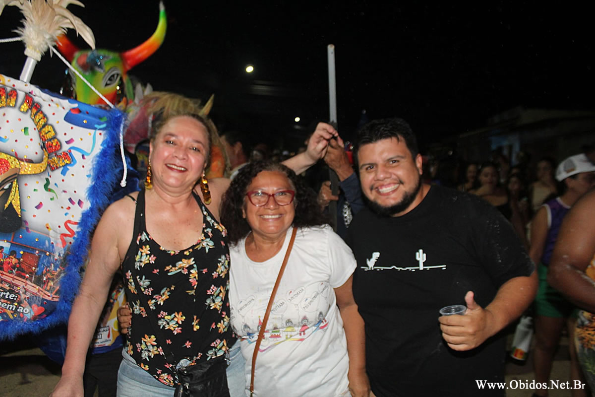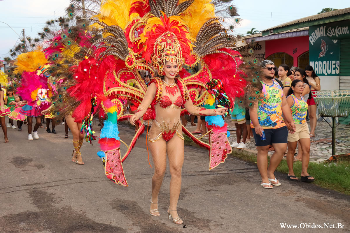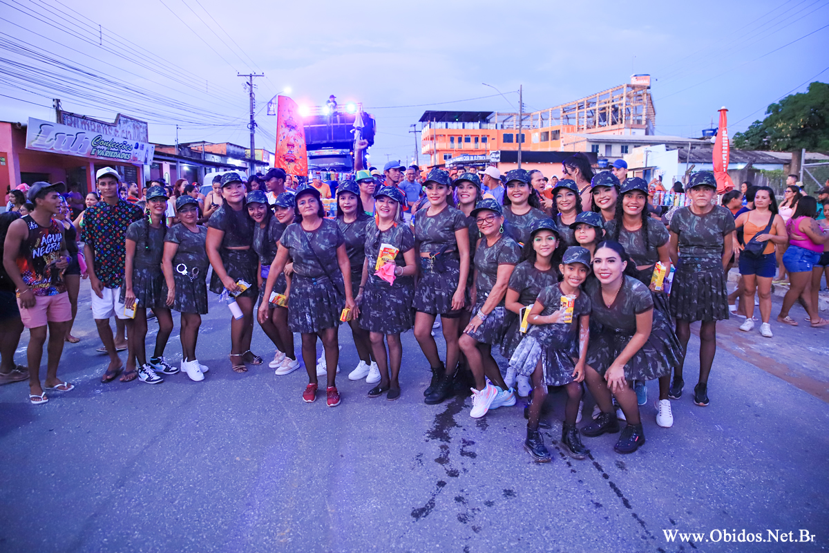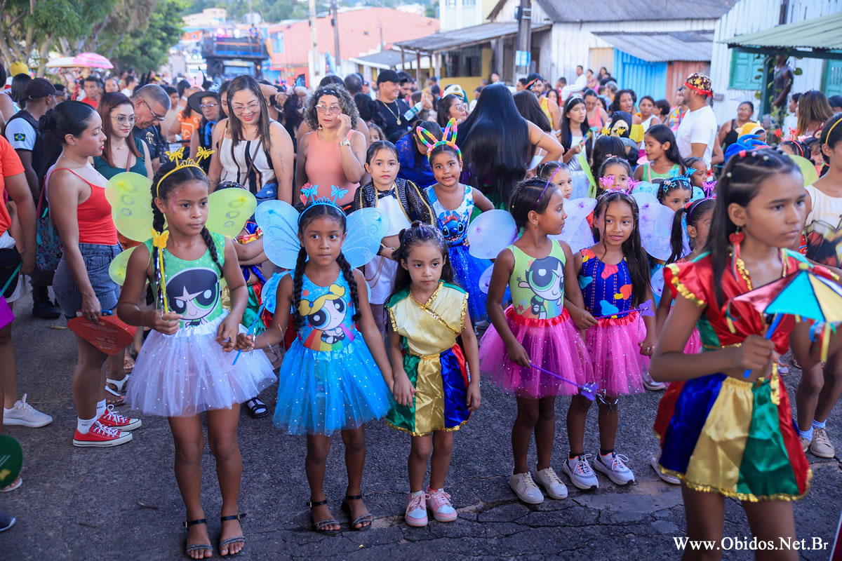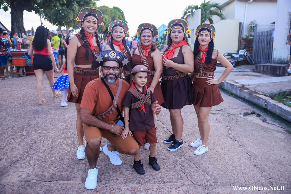 Durante o percurso, outros integrantes também chamaram atenção ao integrar as diversas alas do bloco, como a Ala da Garcinha, Ala da Arara, Ala das Fadas, Ala das Índias, Ala dos Caçadores e os tradicionais bois Pai do Campo e Pintadinho. Todas as alas prestaram homenagem aos personagens dos cordões de pássaros e bois, manifestações culturais profundamente enraizadas na história e na identidade do povo obidense.
