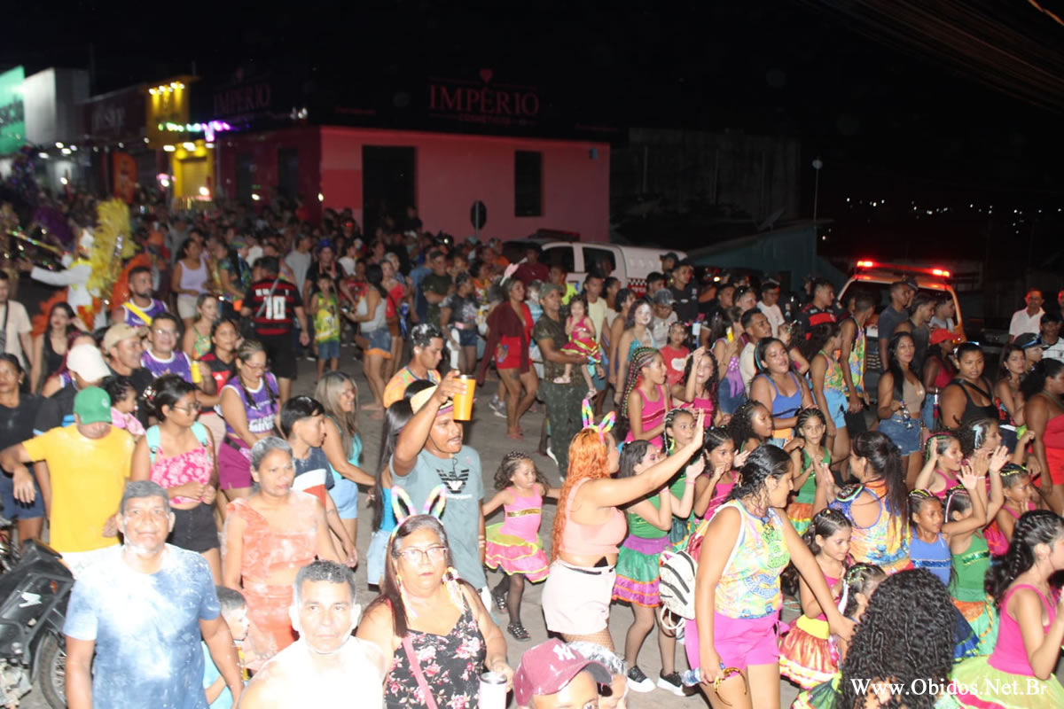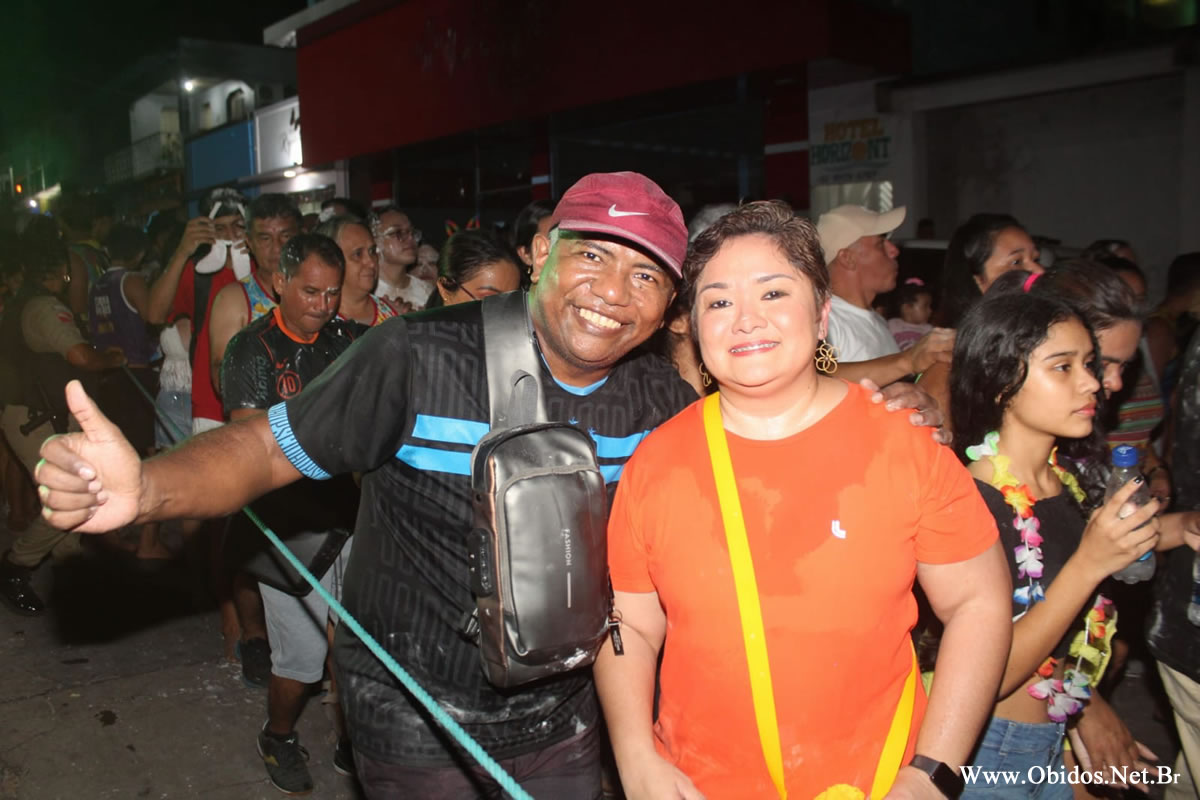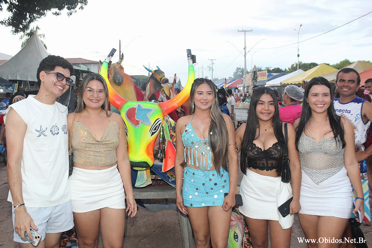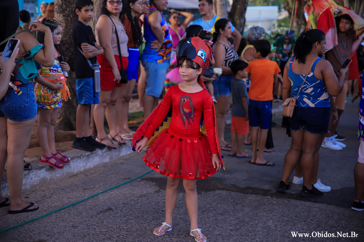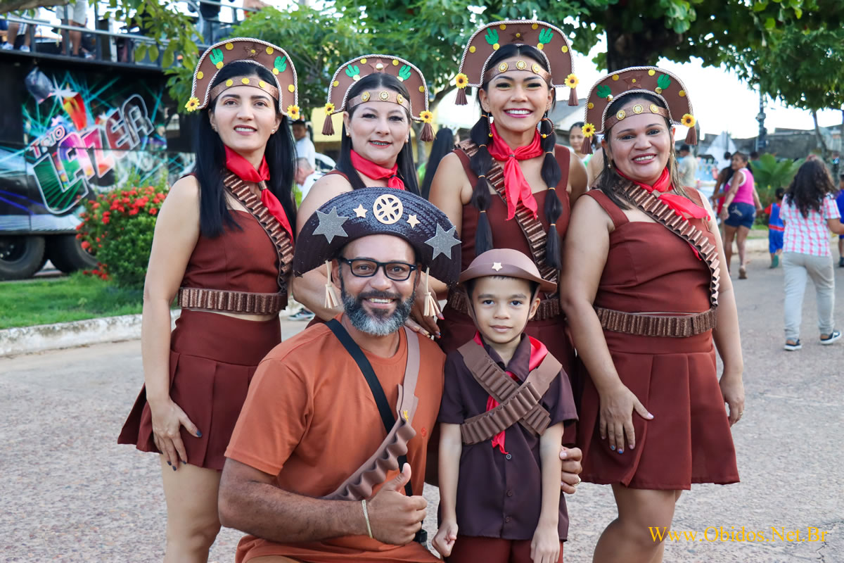 Durante o percurso, outros integrantes também chamaram atenção ao integrar as diversas alas do bloco, como a Ala da Garcinha, Ala da Arara, Ala das Fadas, Ala das Índias, Ala dos Caçadores e os tradicionais bois Pai do Campo e Pintadinho. Todas as alas prestaram homenagem aos personagens dos cordões de pássaros e bois, manifestações culturais profundamente enraizadas na história e na identidade do povo obidense.