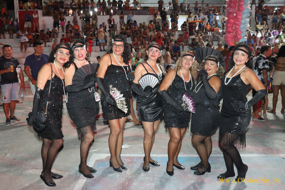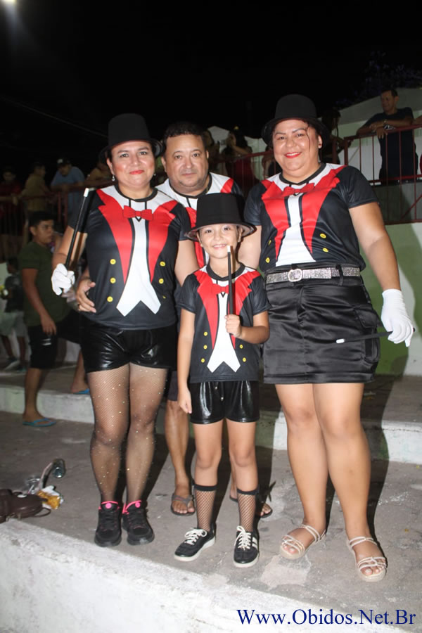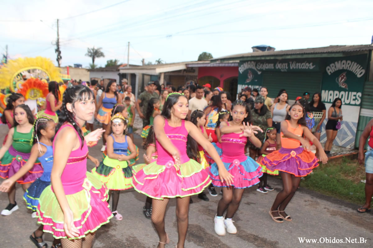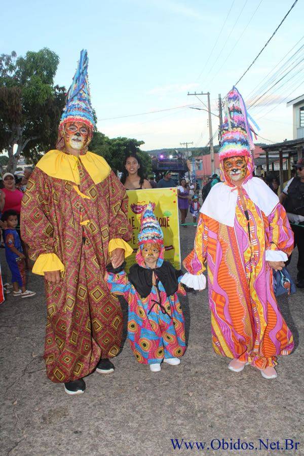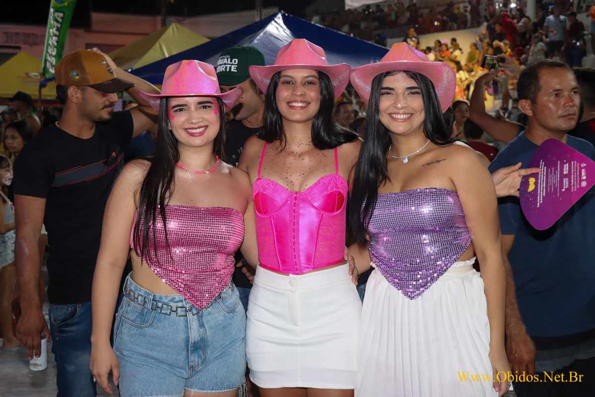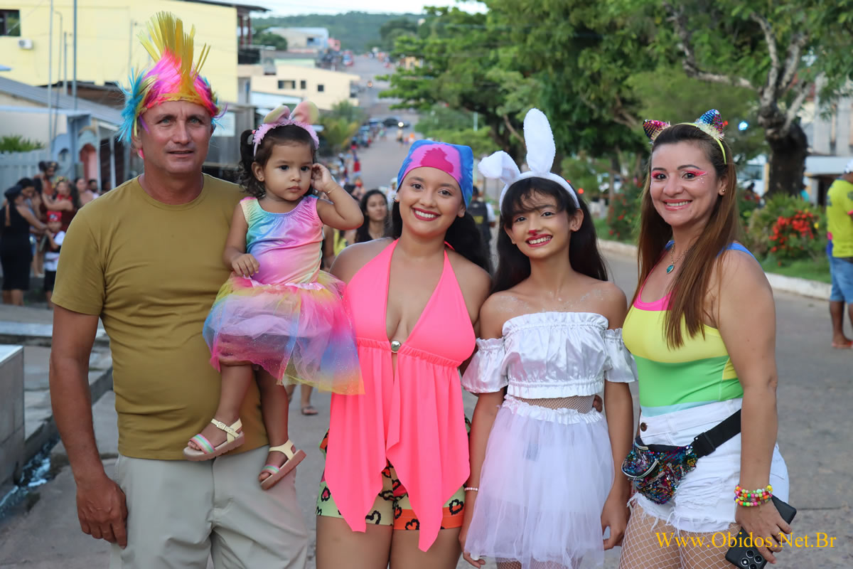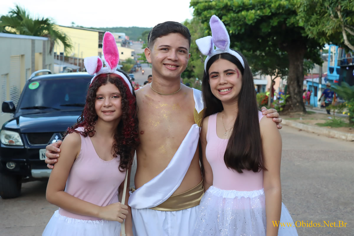Durante o percurso, outros integrantes também chamaram atenção ao integrar as diversas alas do bloco, como a Ala da Garcinha, Ala da Arara, Ala das Fadas, Ala das Índias, Ala dos Caçadores e os tradicionais bois Pai do Campo e Pintadinho. Todas as alas prestaram homenagem aos personagens dos cordões de pássaros e bois, manifestações culturais profundamente enraizadas na história e na identidade do povo obidense.