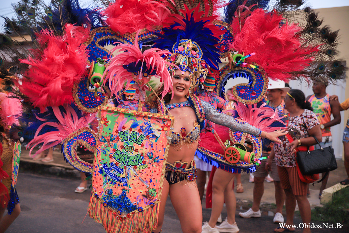 Óbidos (PA), 11 de fevereiro de 2026 – O Carnapauxis 2026 começou oficialmente nesta quarta-feira (11) em grande estilo, com a tradicional apresentação do Bloco Vai ou Raxa, responsável por abrir a programação do maior carnaval de rua da região. A festa tomou conta das ruas da histórica cidade de Óbidos, reunindo foliões locais e visitantes em uma celebração marcada por alegria, cores, criatividade e forte valorização da cultura popular.