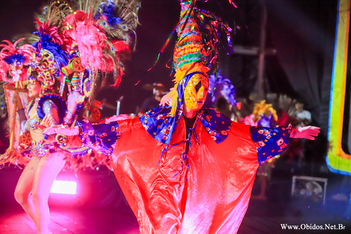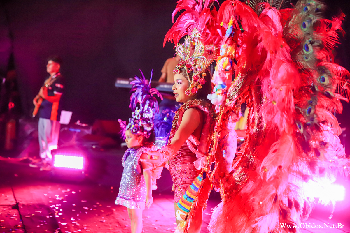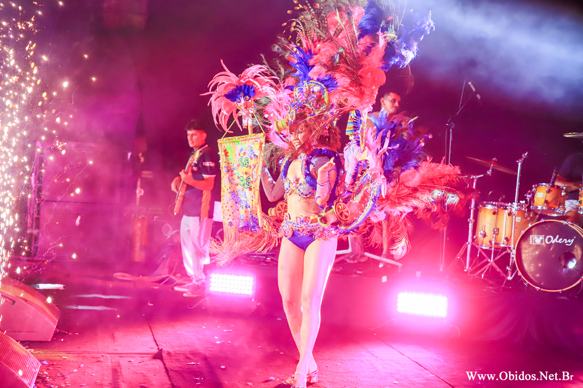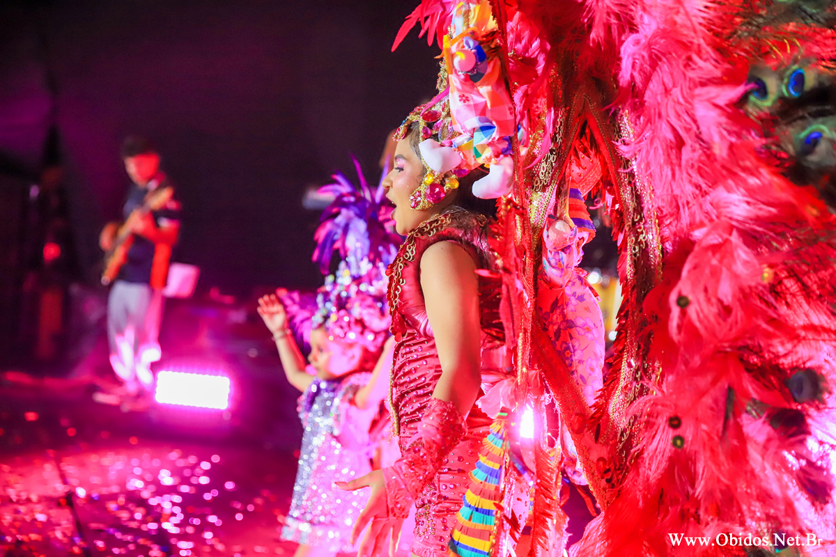 Localizada próxima ao porto de Óbidos, às margens do Lago Pauxis, a Serra da Escama — com cerca de 80 metros de altura acima do Rio Amazonas — foi retratada como uma verdadeira aquarela de cores vibrantes. A paisagem influenciou diretamente as fantasias e alegorias, transformando o desfile em um espetáculo marcado por simbolismo, cultura e amor à cidade.