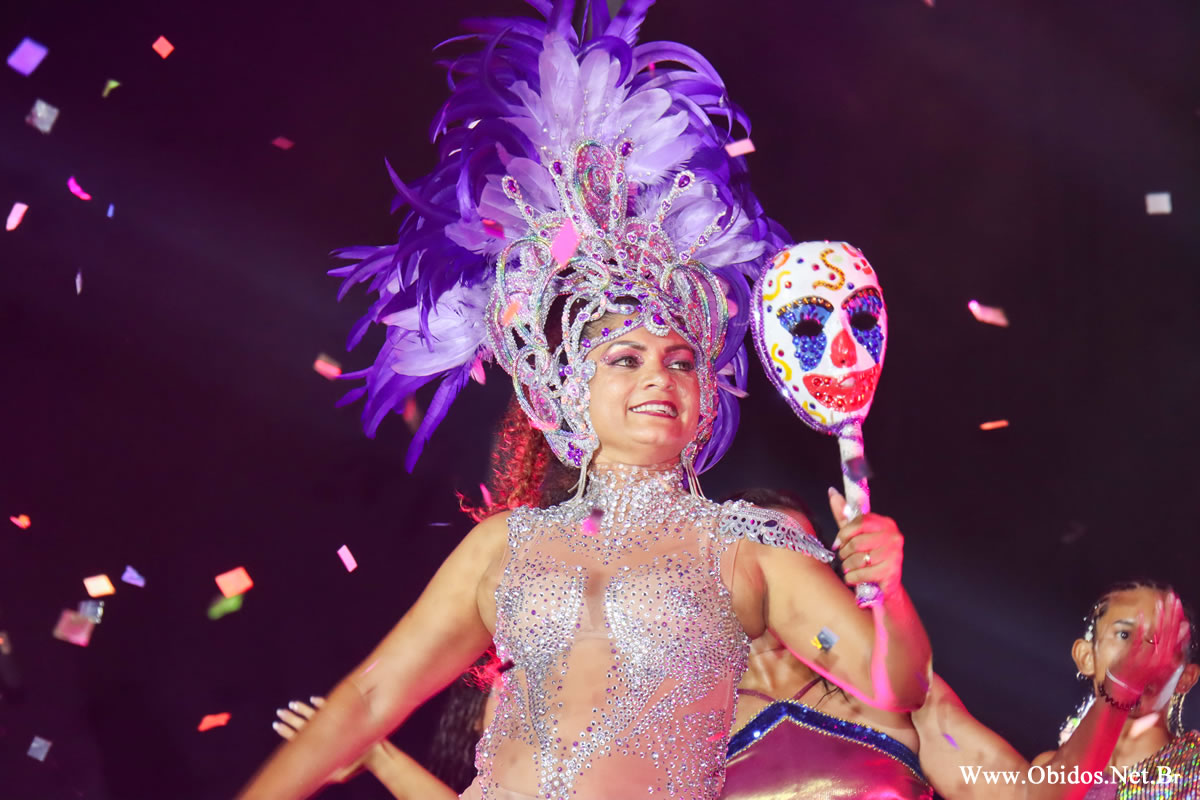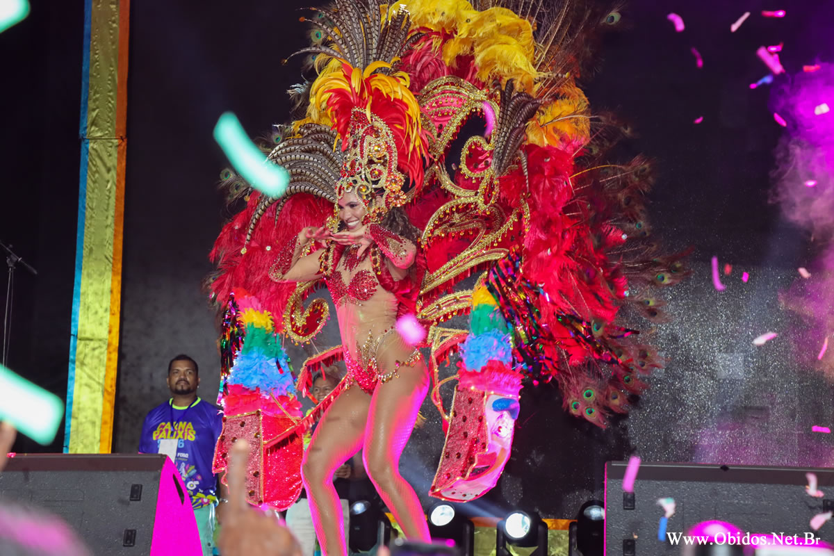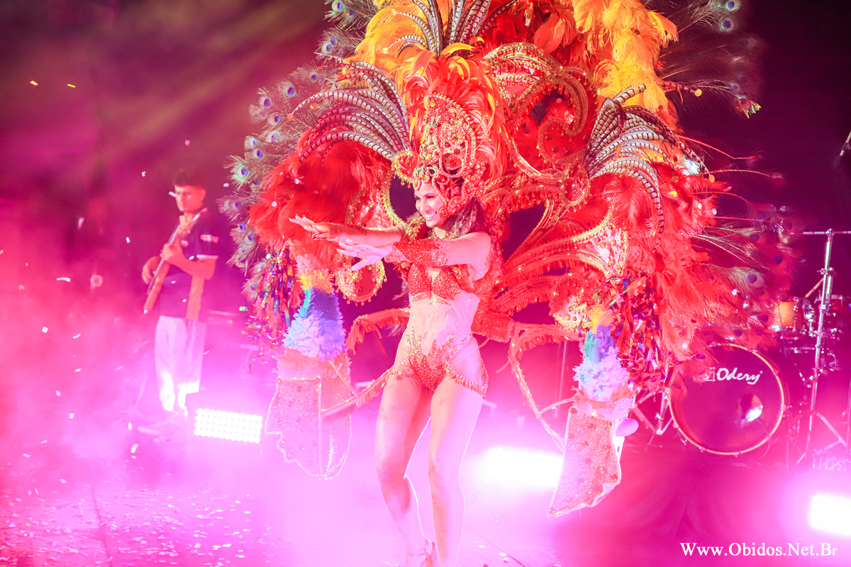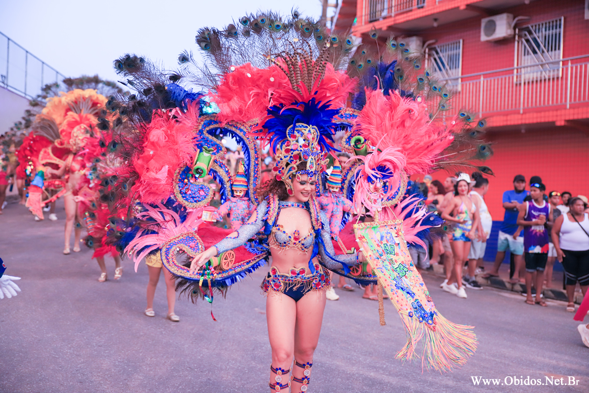 Localizada próxima ao porto de Óbidos, às margens do Lago Pauxis, a Serra da Escama — com cerca de 80 metros de altura acima do Rio Amazonas — foi retratada como uma verdadeira aquarela de cores vibrantes. A paisagem influenciou diretamente as fantasias e alegorias, transformando o desfile em um espetáculo marcado por simbolismo, cultura e amor à cidade.