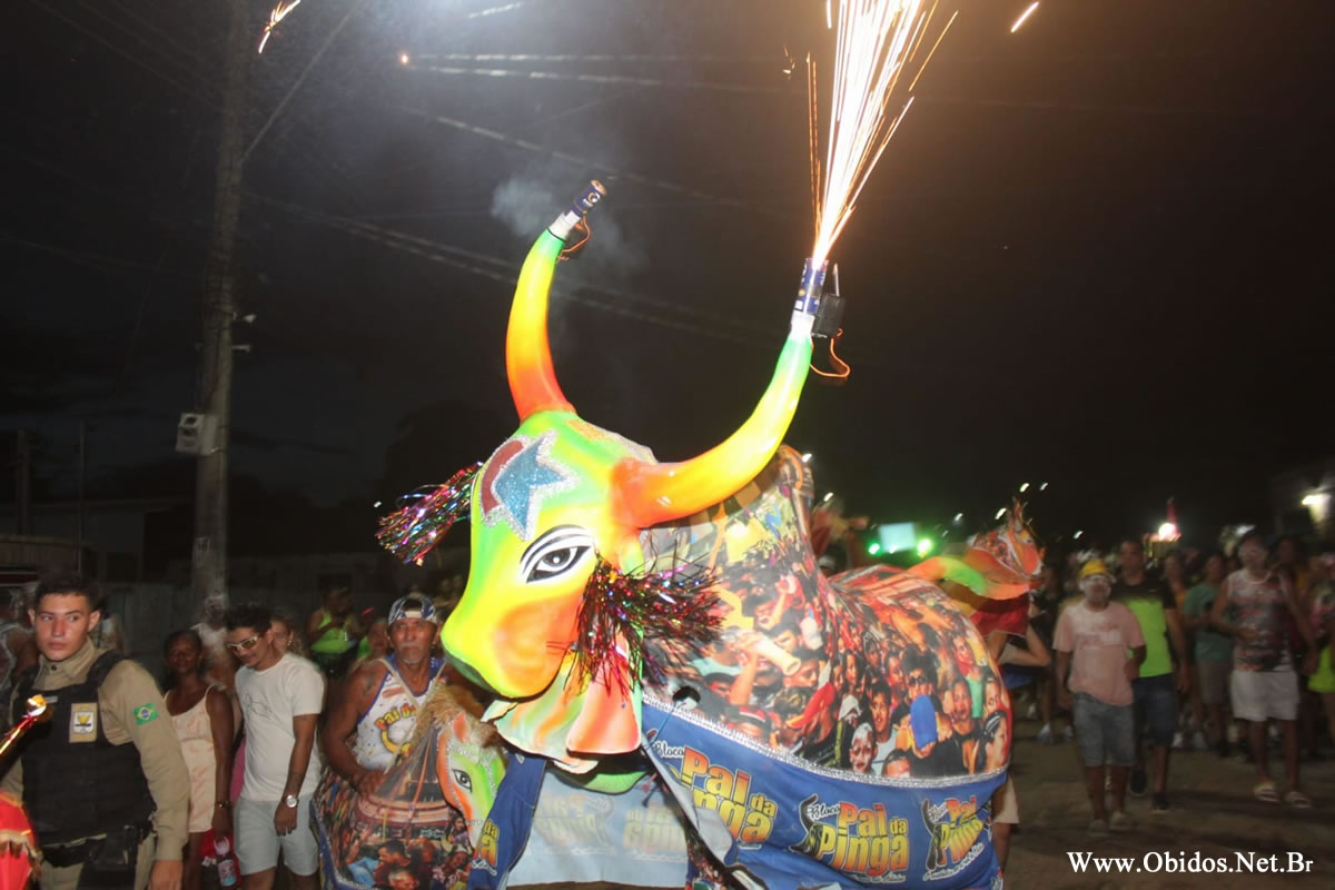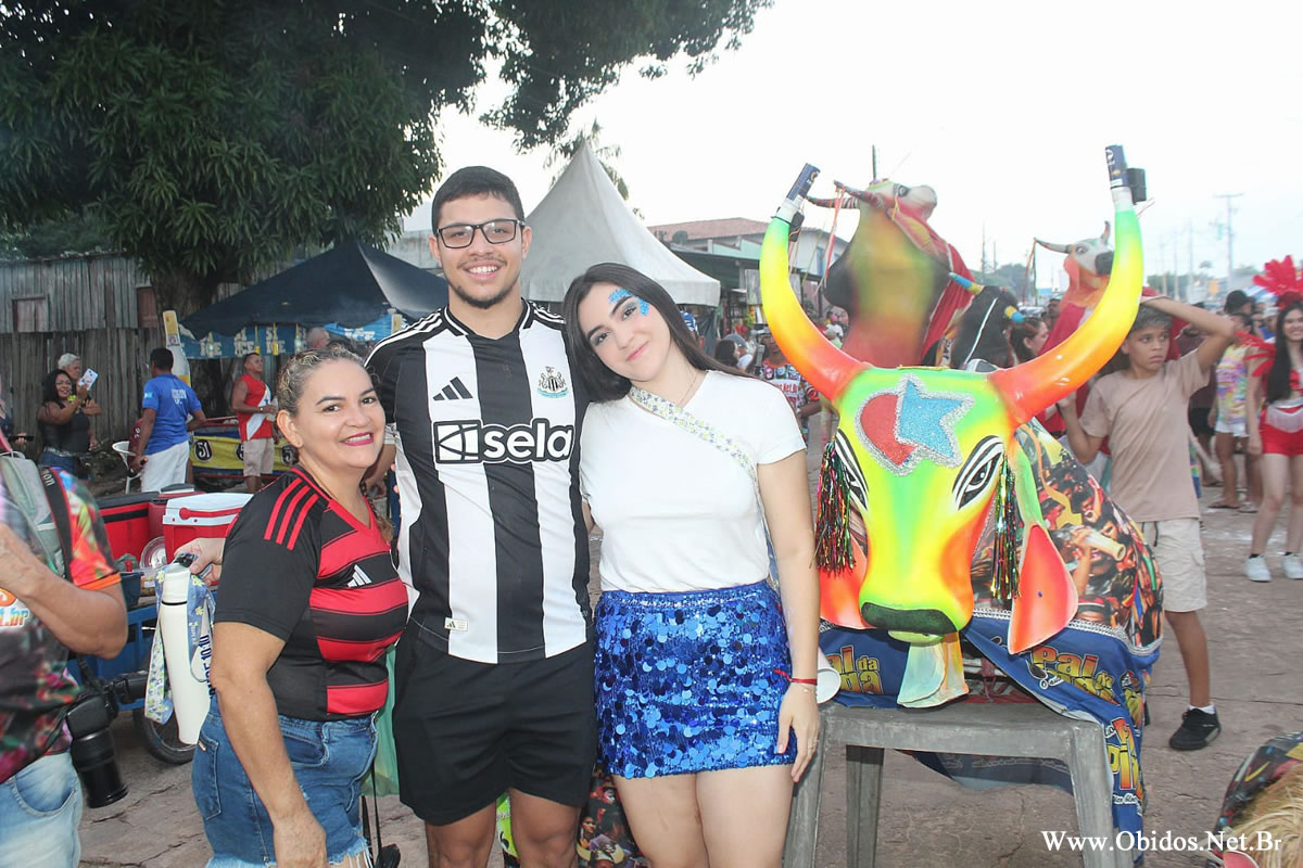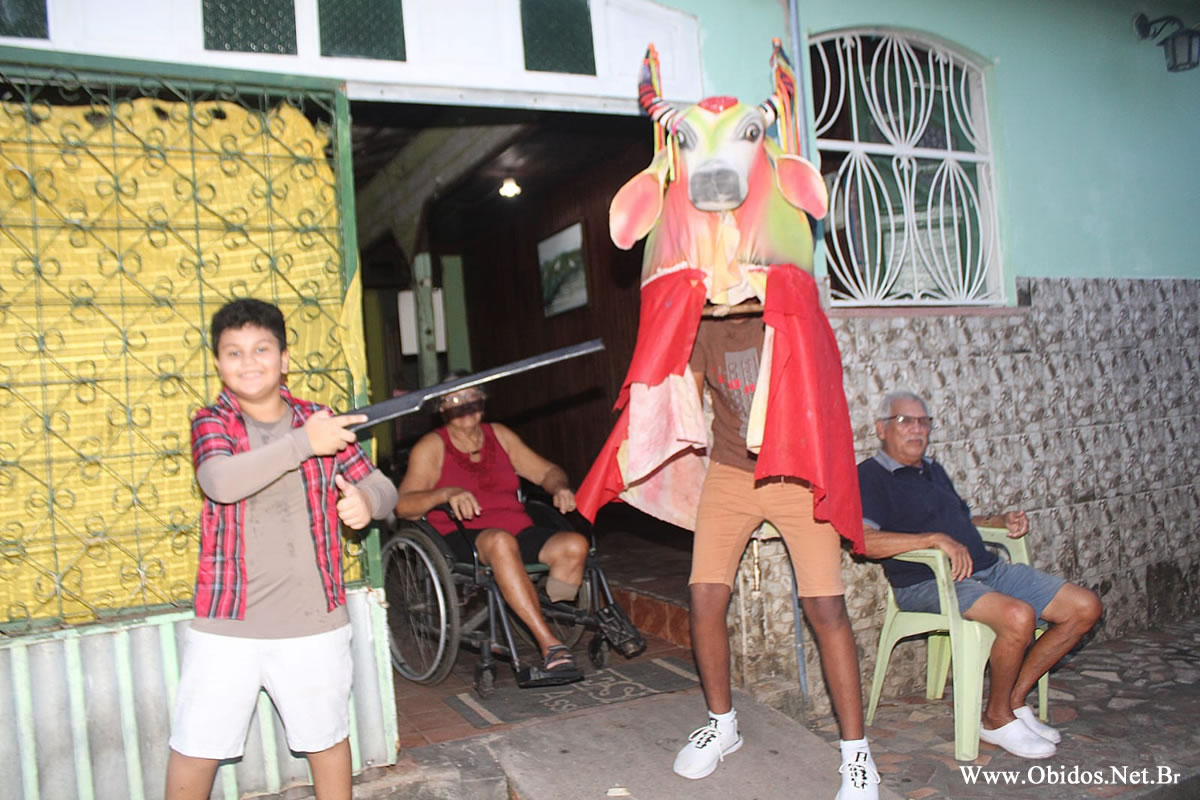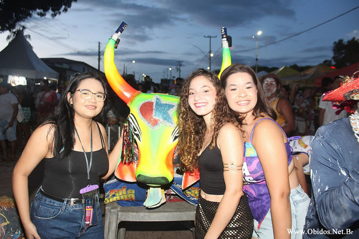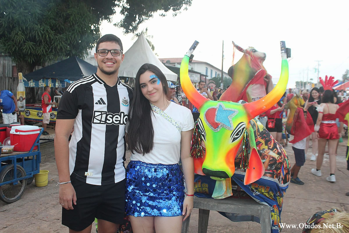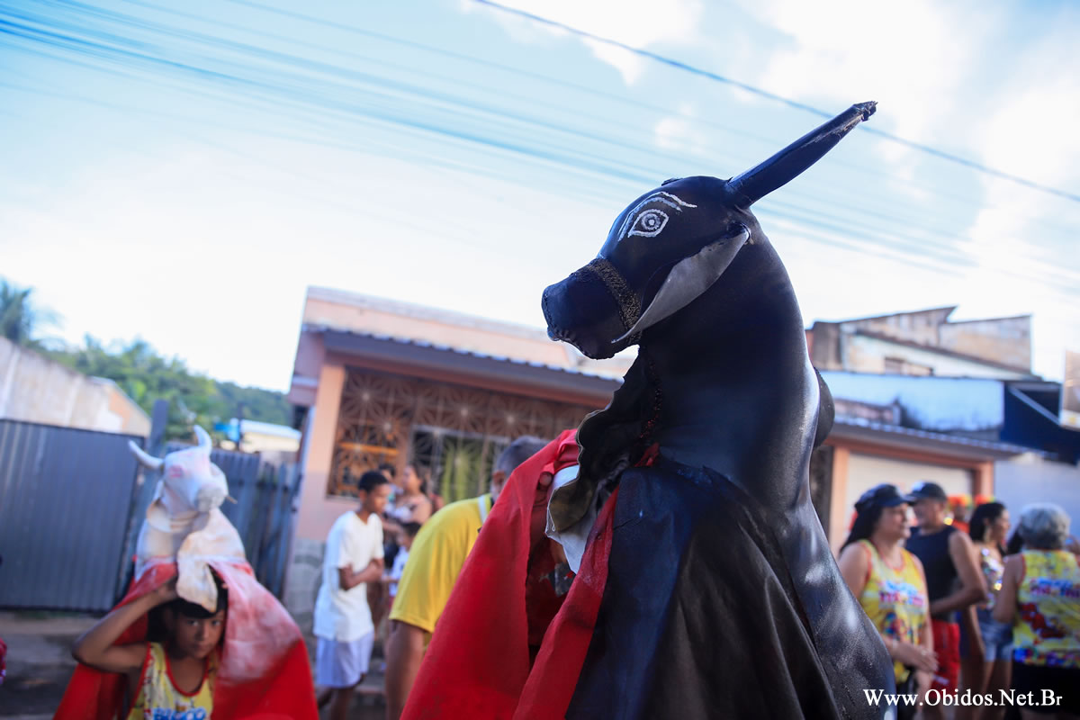 Um dos grandes símbolos do bloco é o boi, que remete aos tradicionais bois da quadra junina, como o “Pintadinho” e o “Pai do Campo”, resgatando memórias e tradições antigas que por muitos anos encantaram a população de Óbidos.