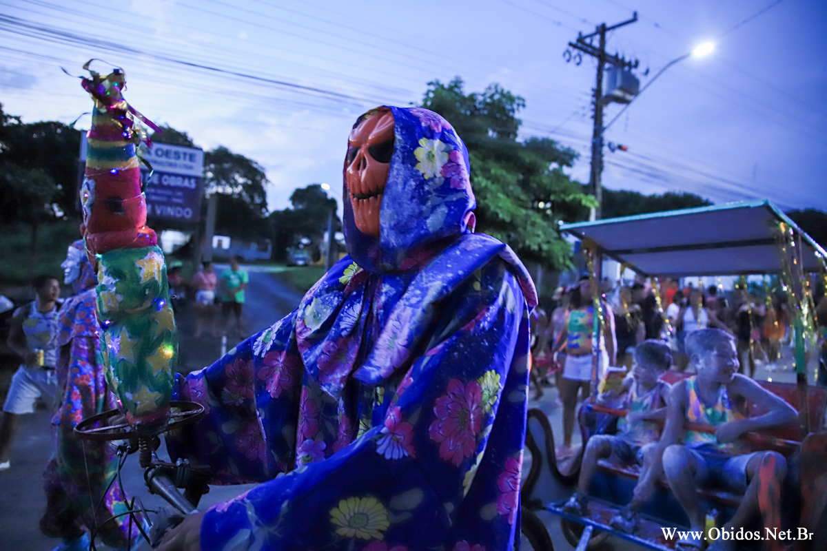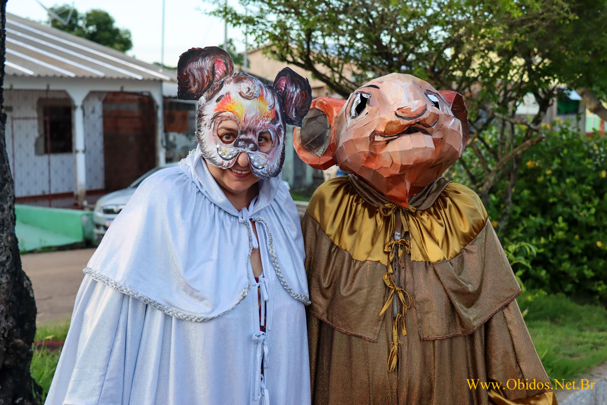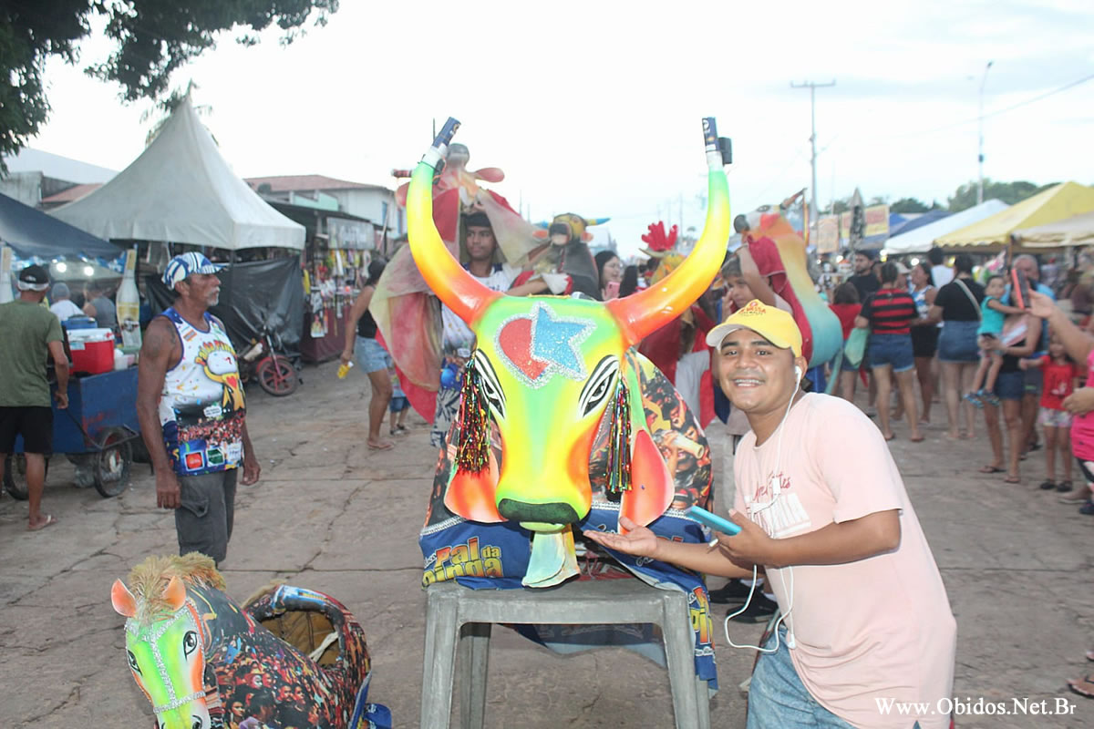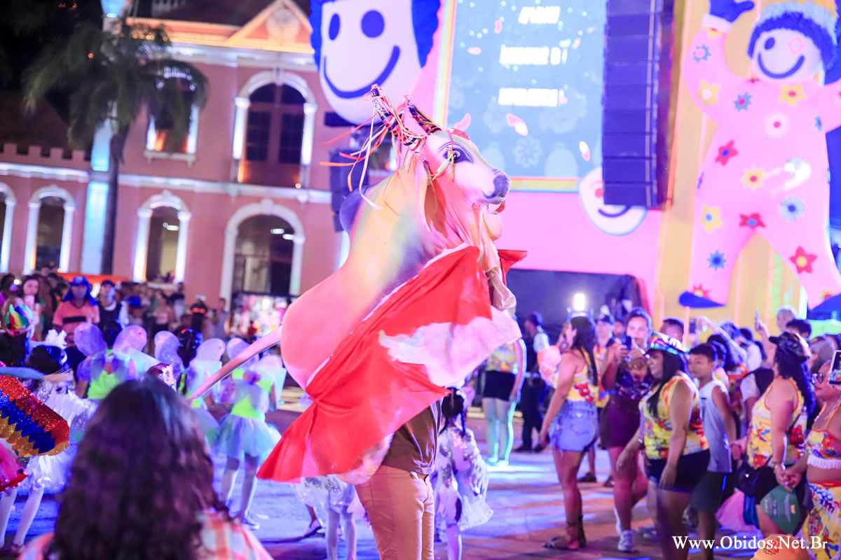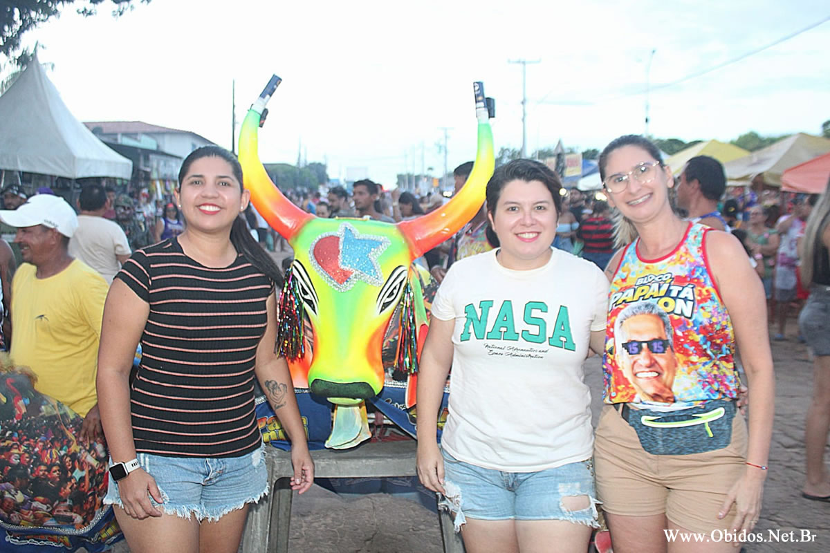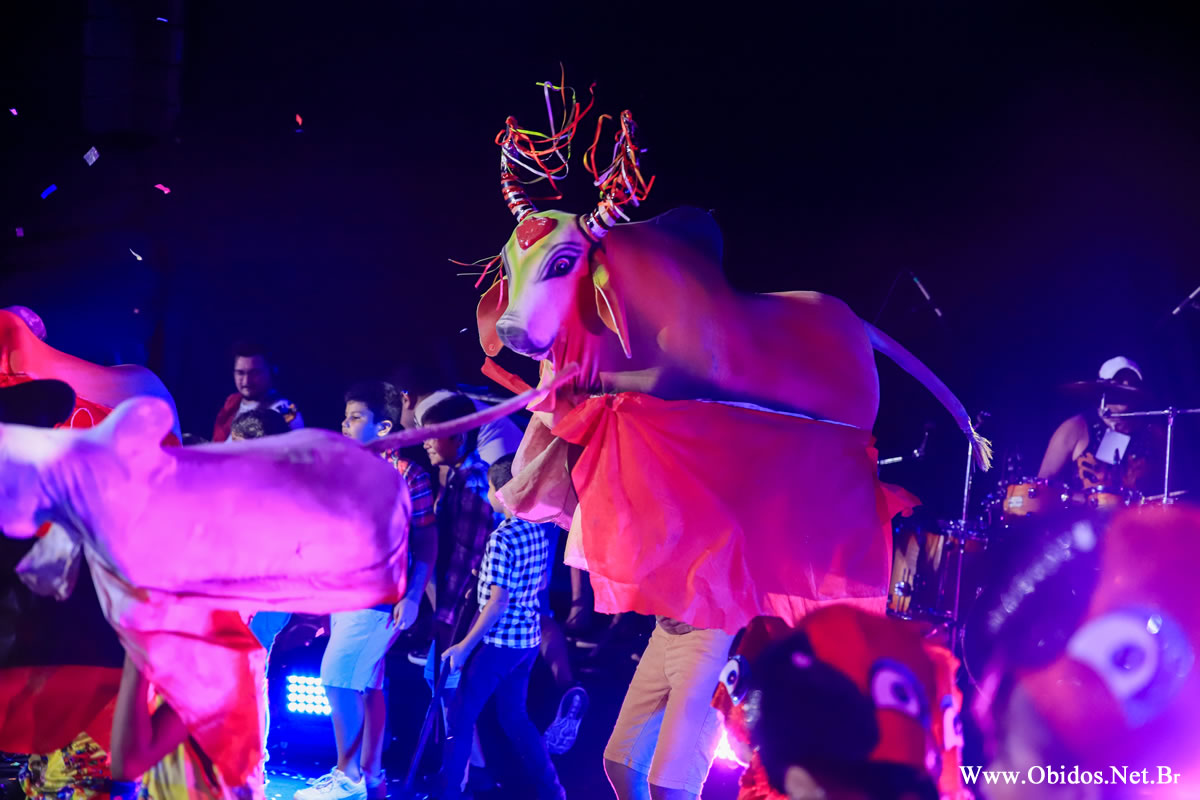 Um dos grandes símbolos do bloco é o boi, que remete aos tradicionais bois da quadra junina, como o “Pintadinho” e o “Pai do Campo”, resgatando memórias e tradições antigas que por muitos anos encantaram a população de Óbidos.