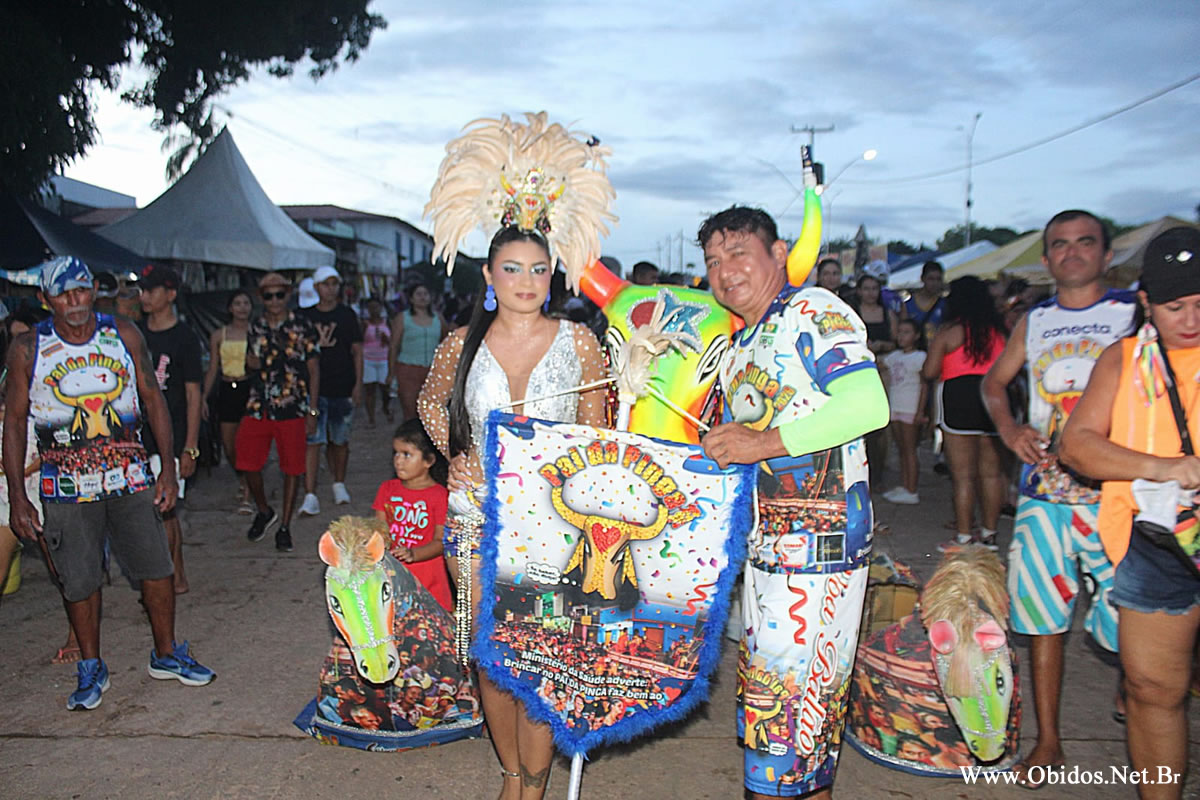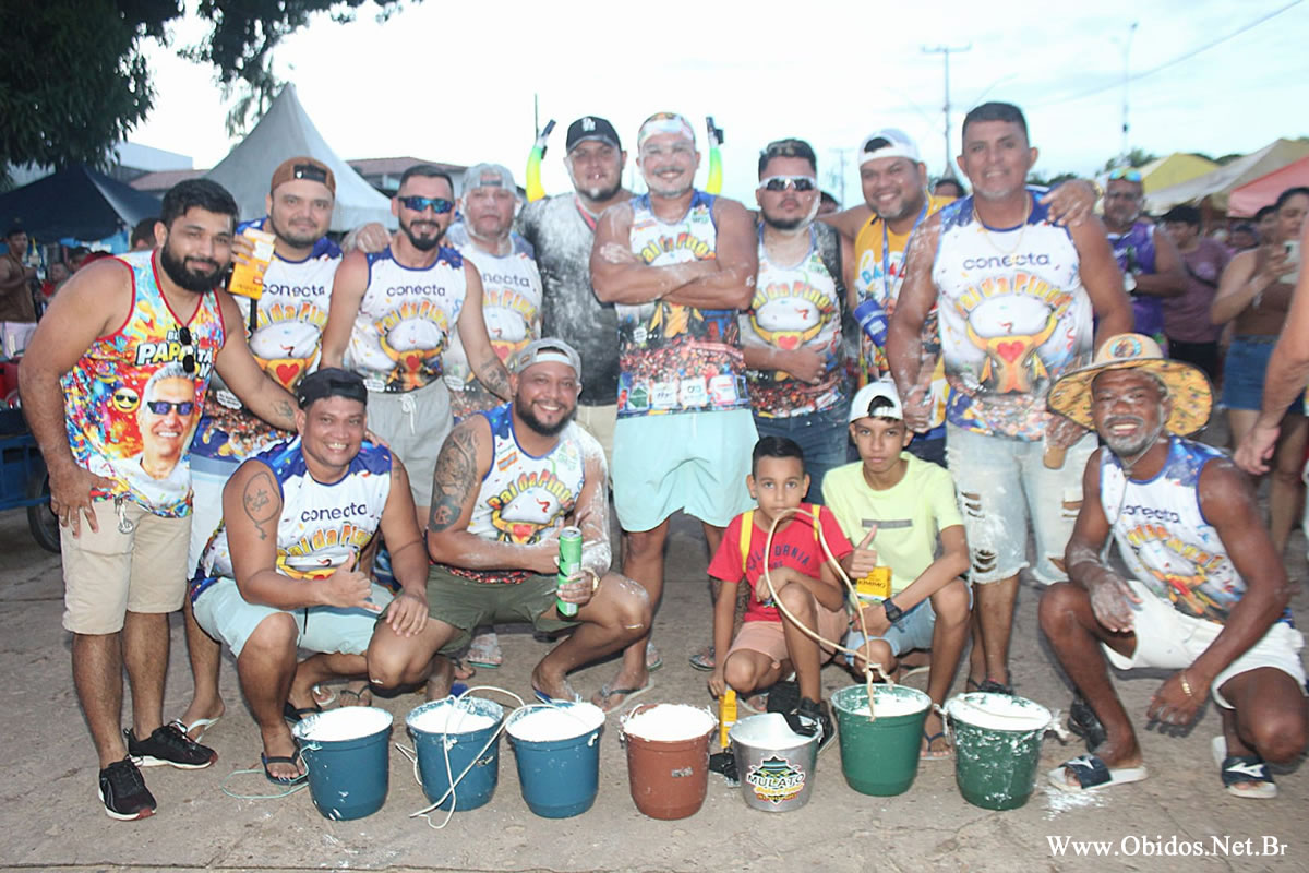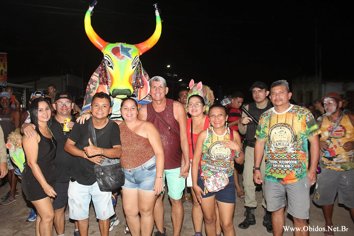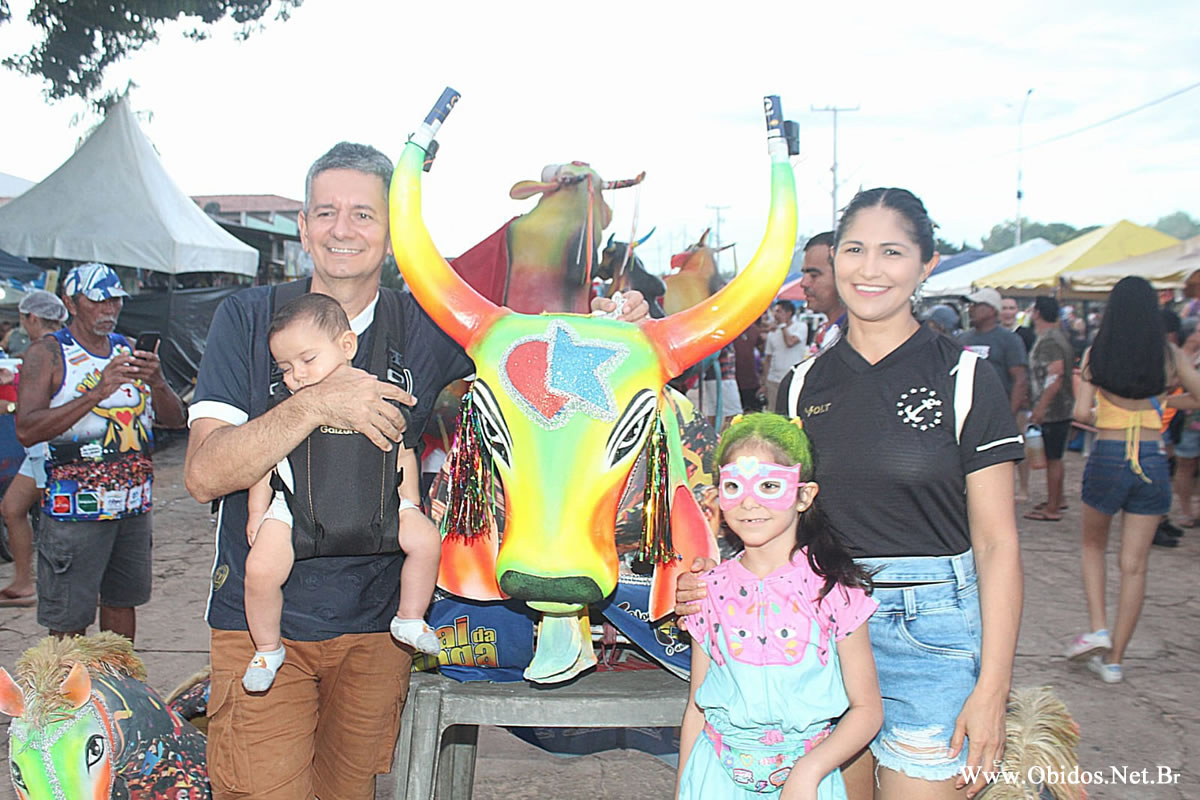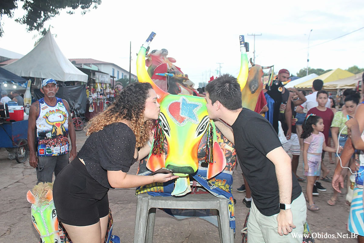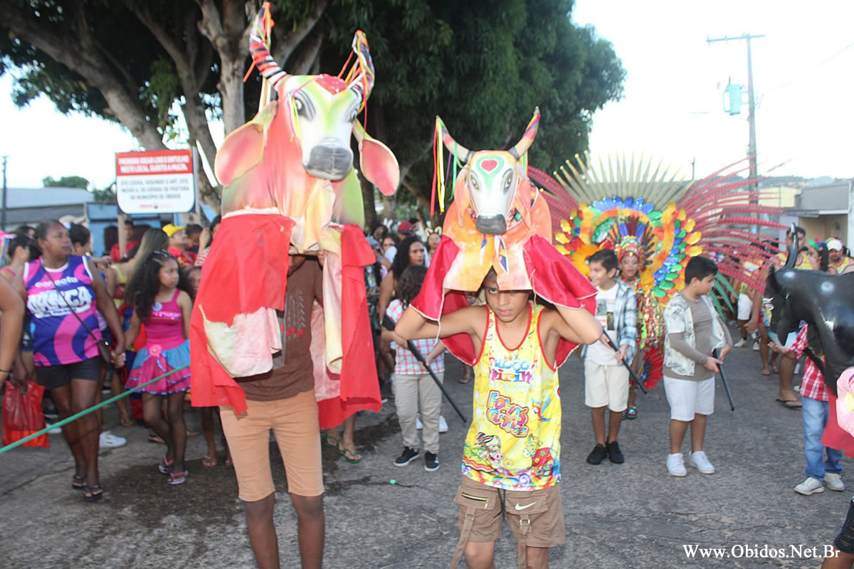 Um dos grandes símbolos do bloco é o boi, que remete aos tradicionais bois da quadra junina, como o “Pintadinho” e o “Pai do Campo”, resgatando memórias e tradições antigas que por muitos anos encantaram a população de Óbidos.