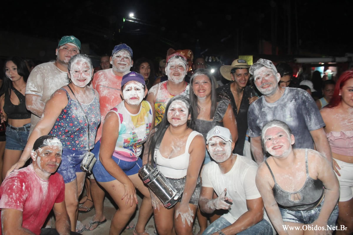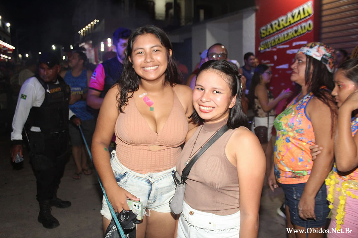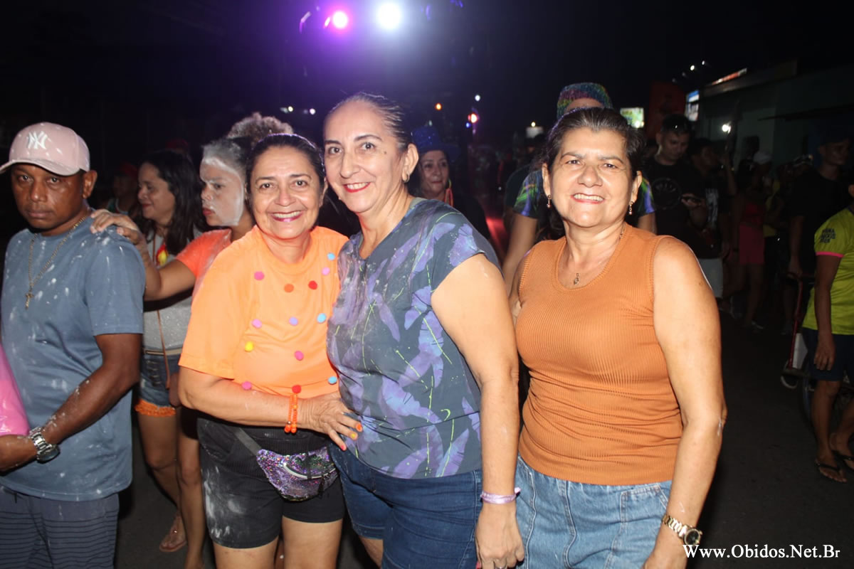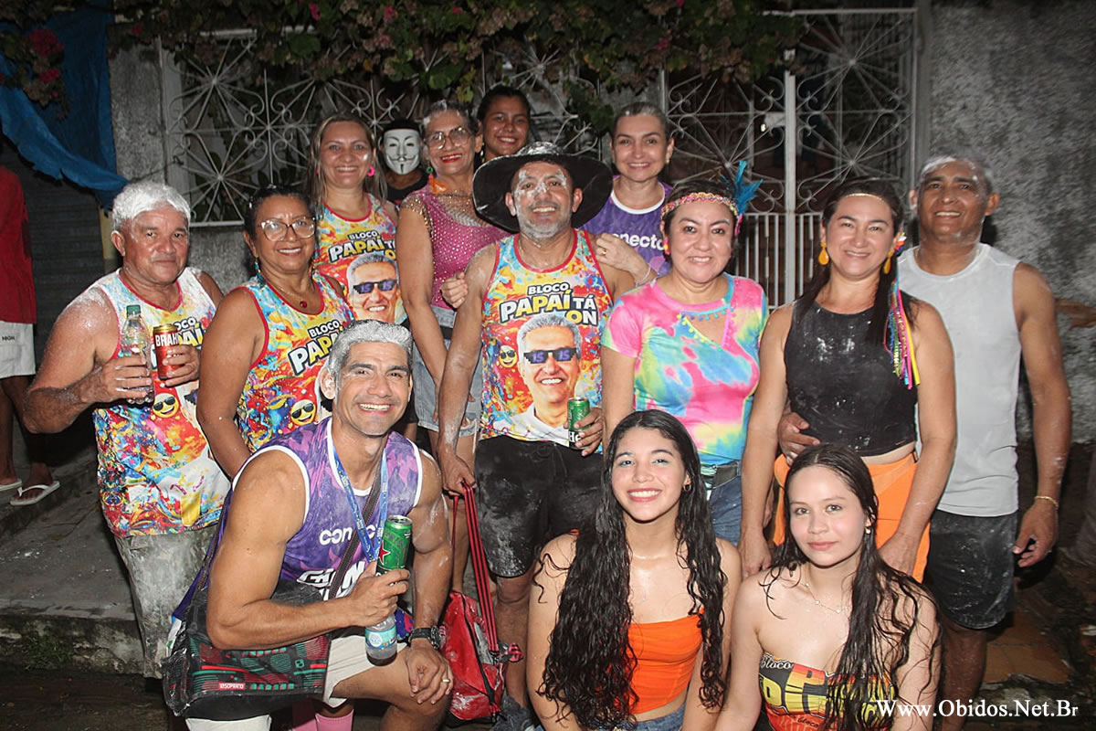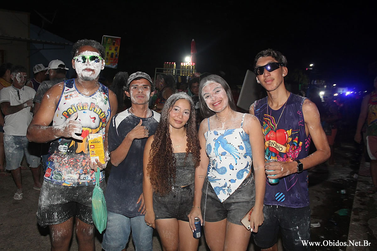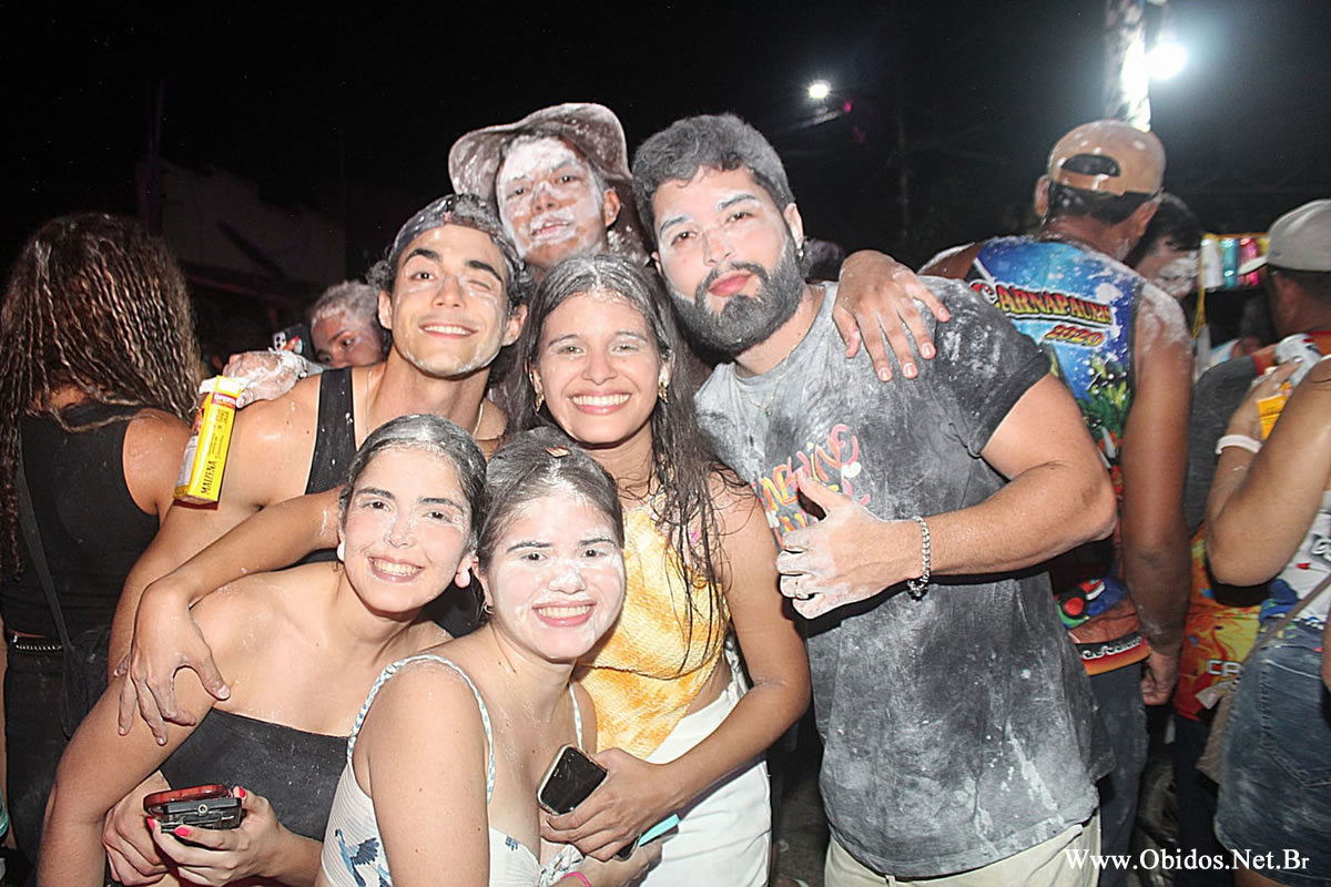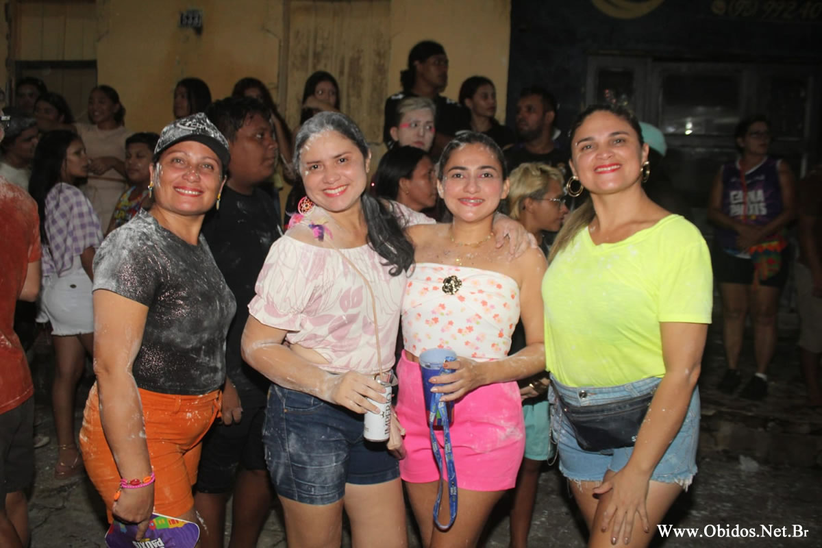Na tradicional subida da Ladeira do Mercado, toda ornamentada para a ocasião, a chuva se intensificou. Ainda assim, os foliões encararam a ladeira com animação e alegria, sendo saudados por uma salva de fogos que iluminou o céu de Óbidos, em homenagem a um dos blocos mais populares e divertidos do Carnapauxis.