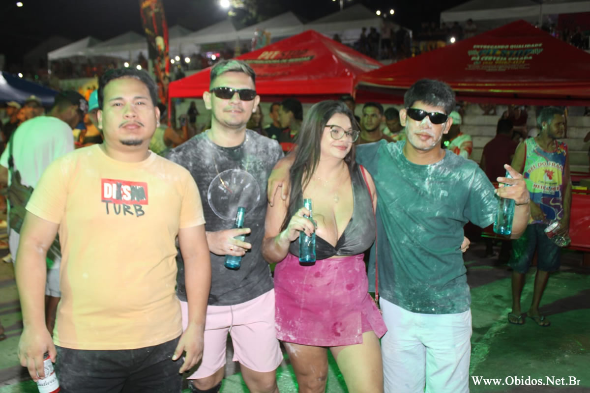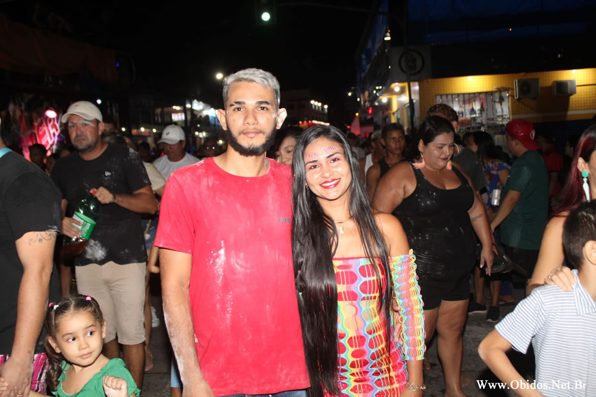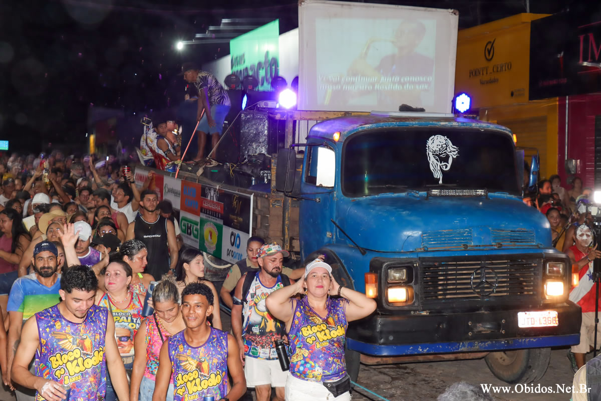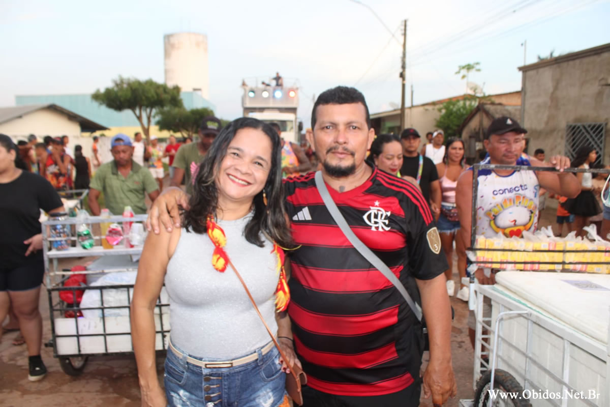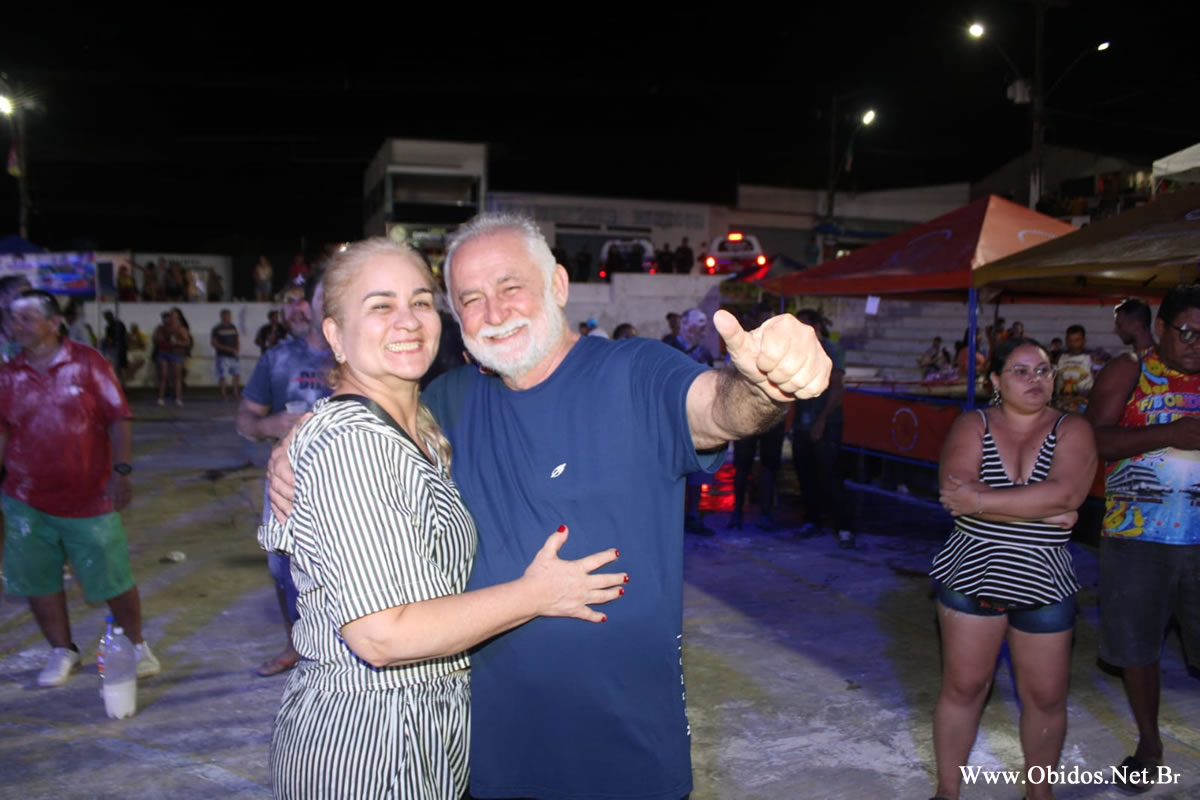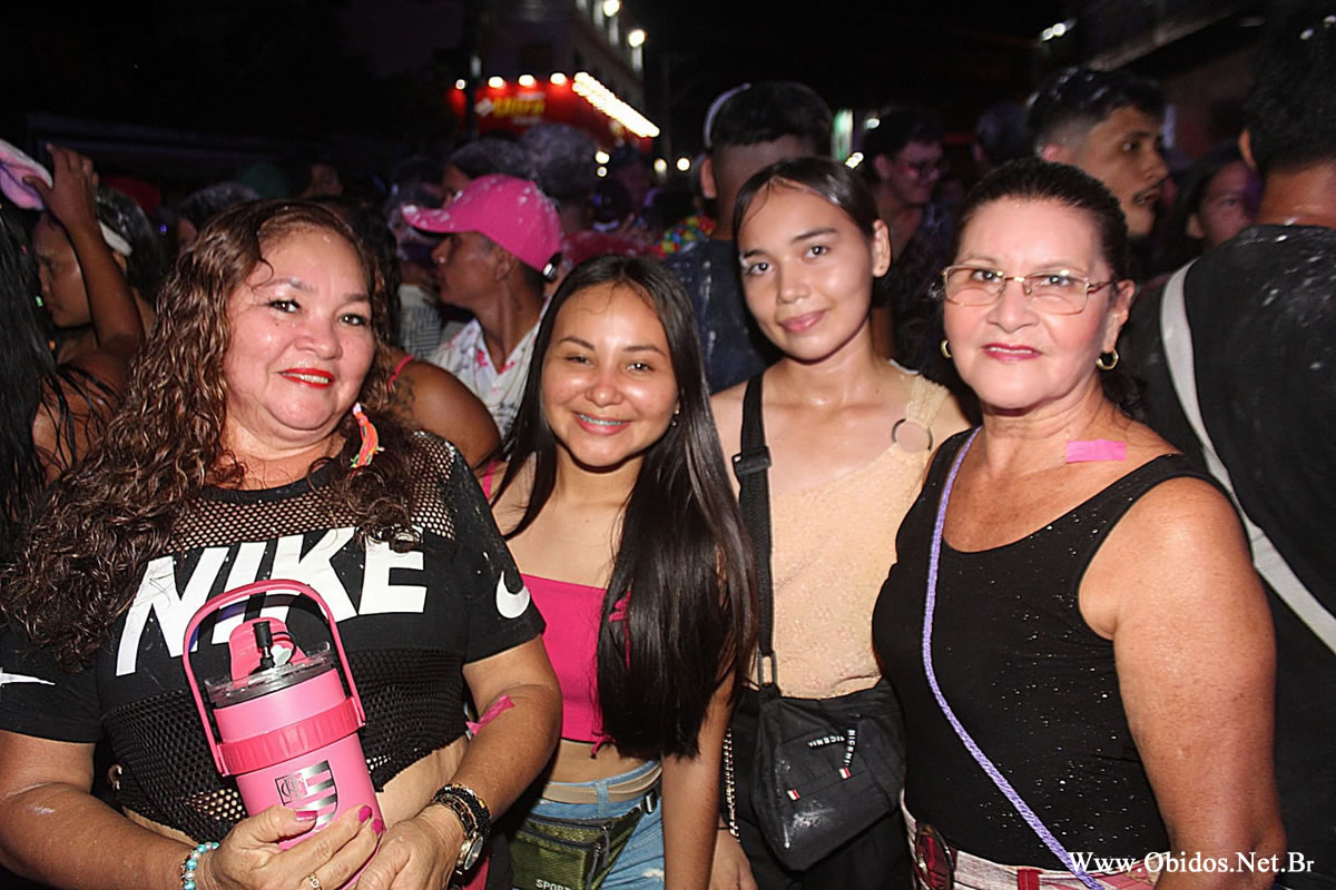 Na tradicional subida da Ladeira do Mercado, toda ornamentada para a ocasião, a chuva se intensificou. Ainda assim, os foliões encararam a ladeira com animação e alegria, sendo saudados por uma salva de fogos que iluminou o céu de Óbidos, em homenagem a um dos blocos mais populares e divertidos do Carnapauxis.