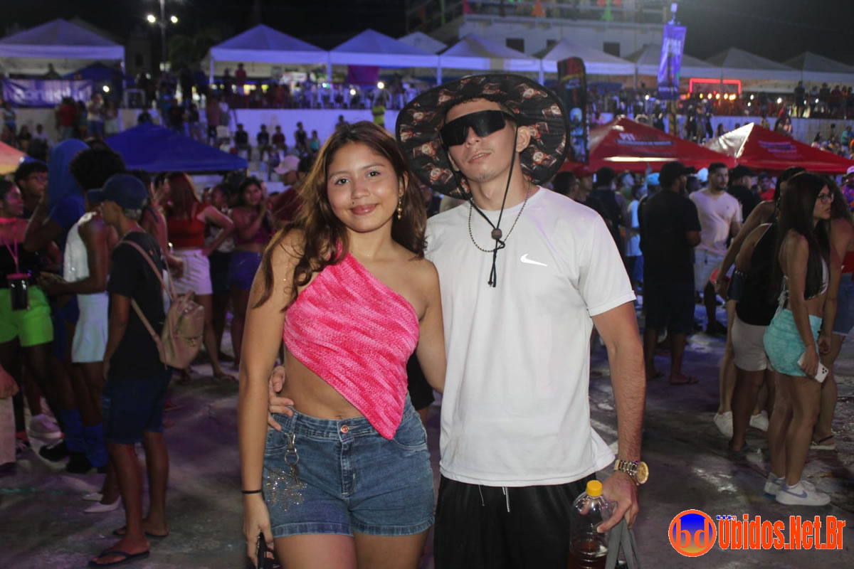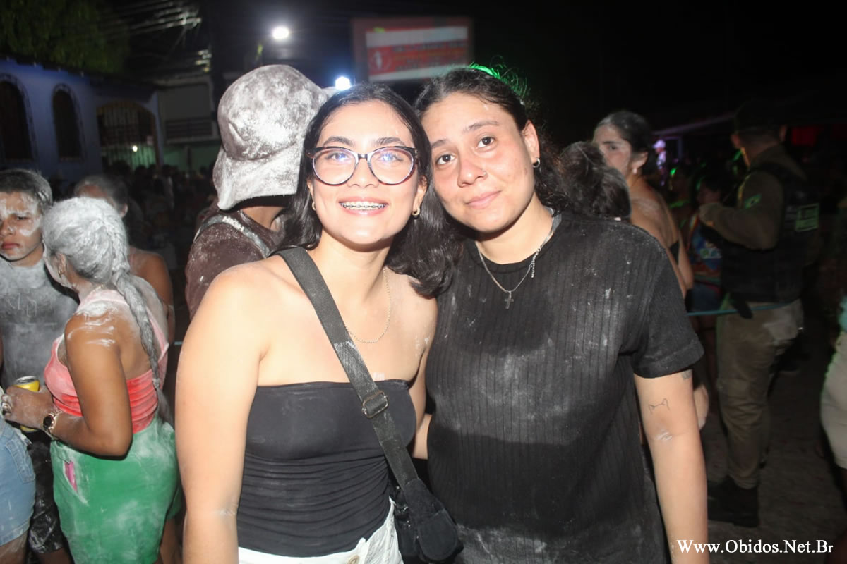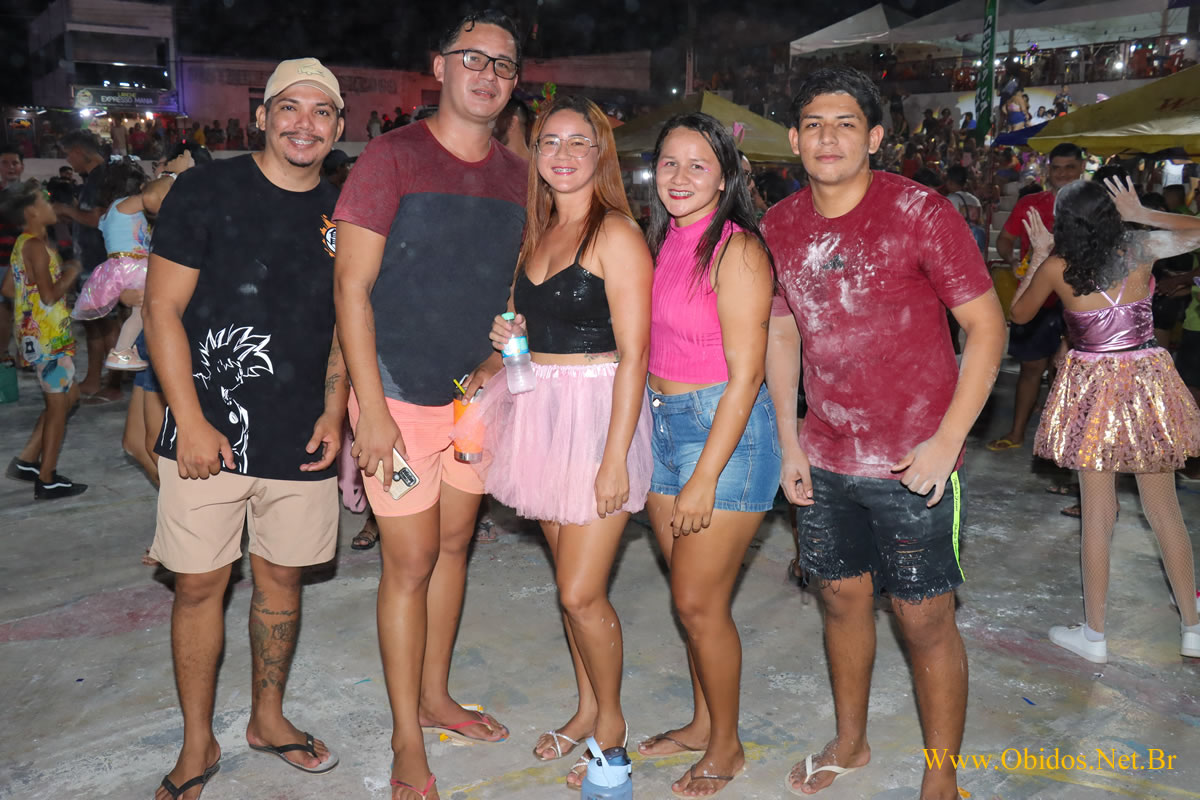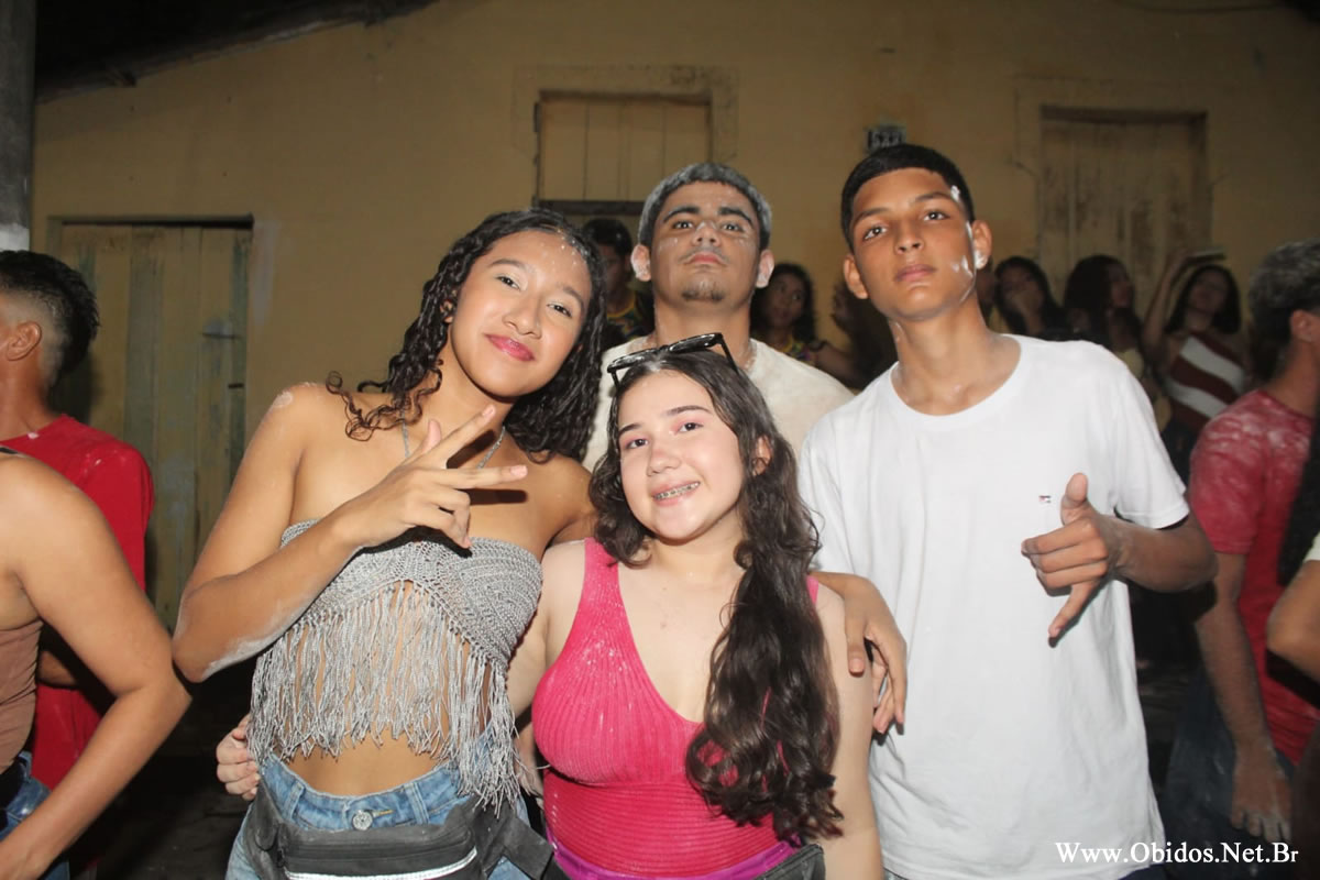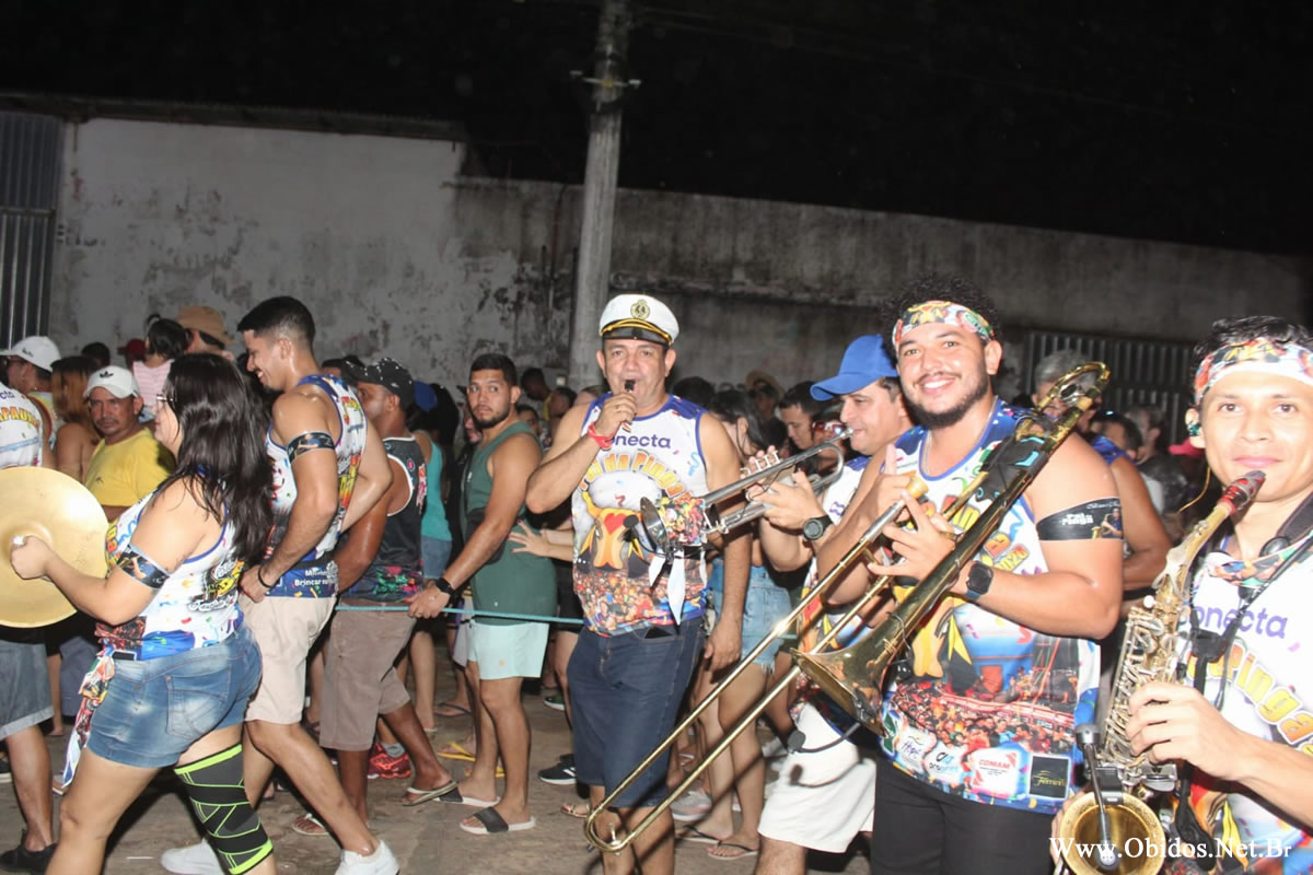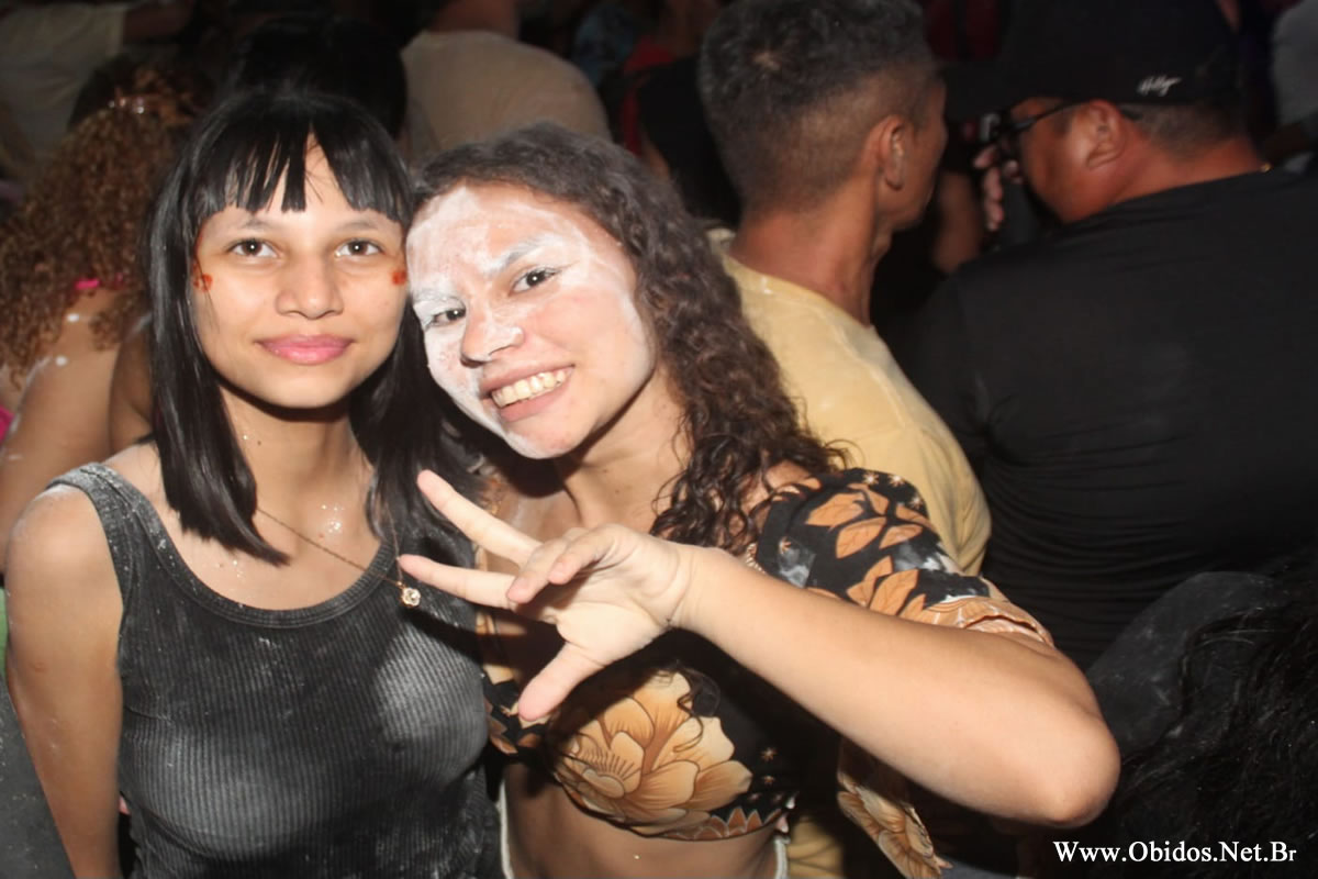 Na tradicional subida da Ladeira do Mercado, toda ornamentada para a ocasião, a chuva se intensificou. Ainda assim, os foliões encararam a ladeira com animação e alegria, sendo saudados por uma salva de fogos que iluminou o céu de Óbidos, em homenagem a um dos blocos mais populares e divertidos do Carnapauxis.