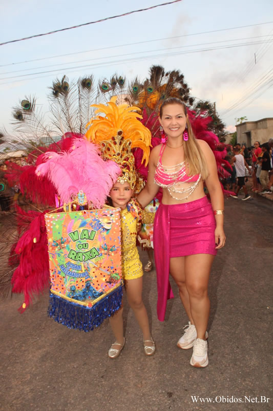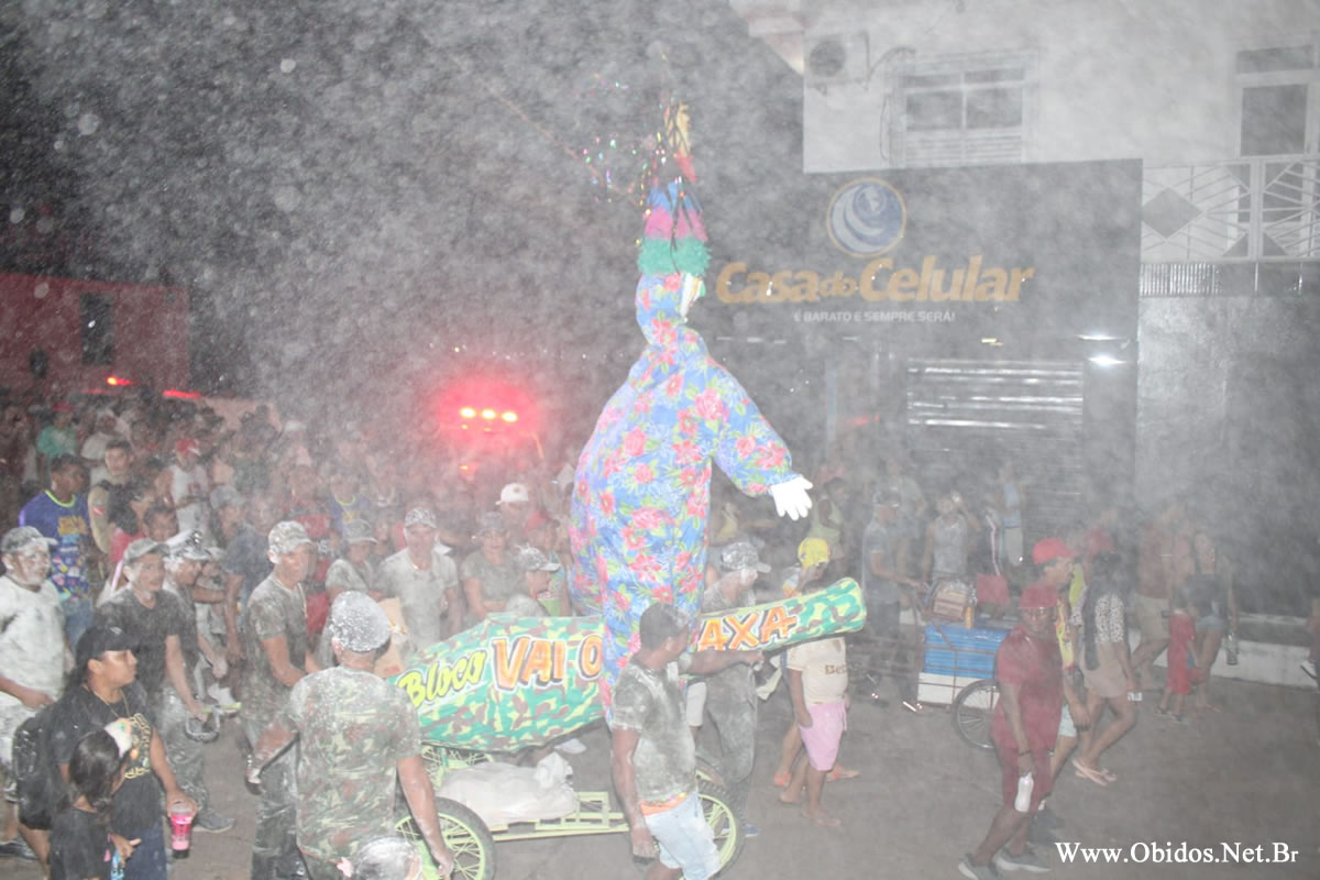 Com mais de uma década de história, o Bloco Vai ou Raxa consolidou-se como um dos grandes protagonistas do carnaval obidense. Desde 2015, o grupo tem a missão de dar início à folia, sempre levando um espetáculo vibrante ao público. Em 2026, o tema escolhido foi “A Terra do Mascarado Fobó”, que norteou fantasias, alas temáticas e a música oficial, exaltando uma das figuras mais tradicionais e simbólicas do Carnapauxis.