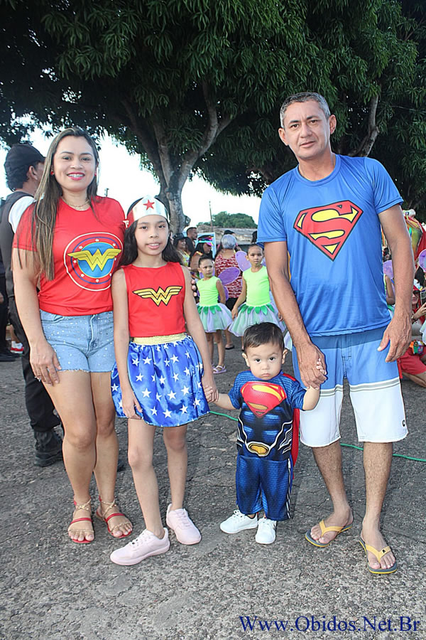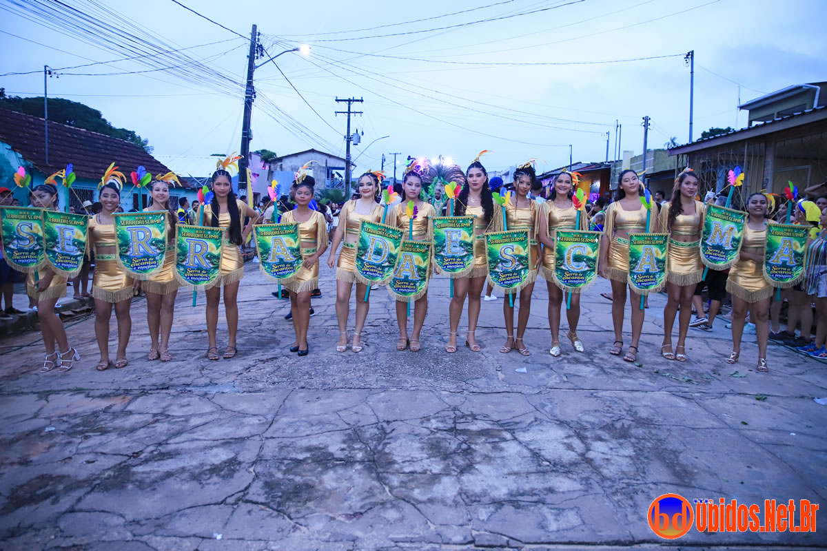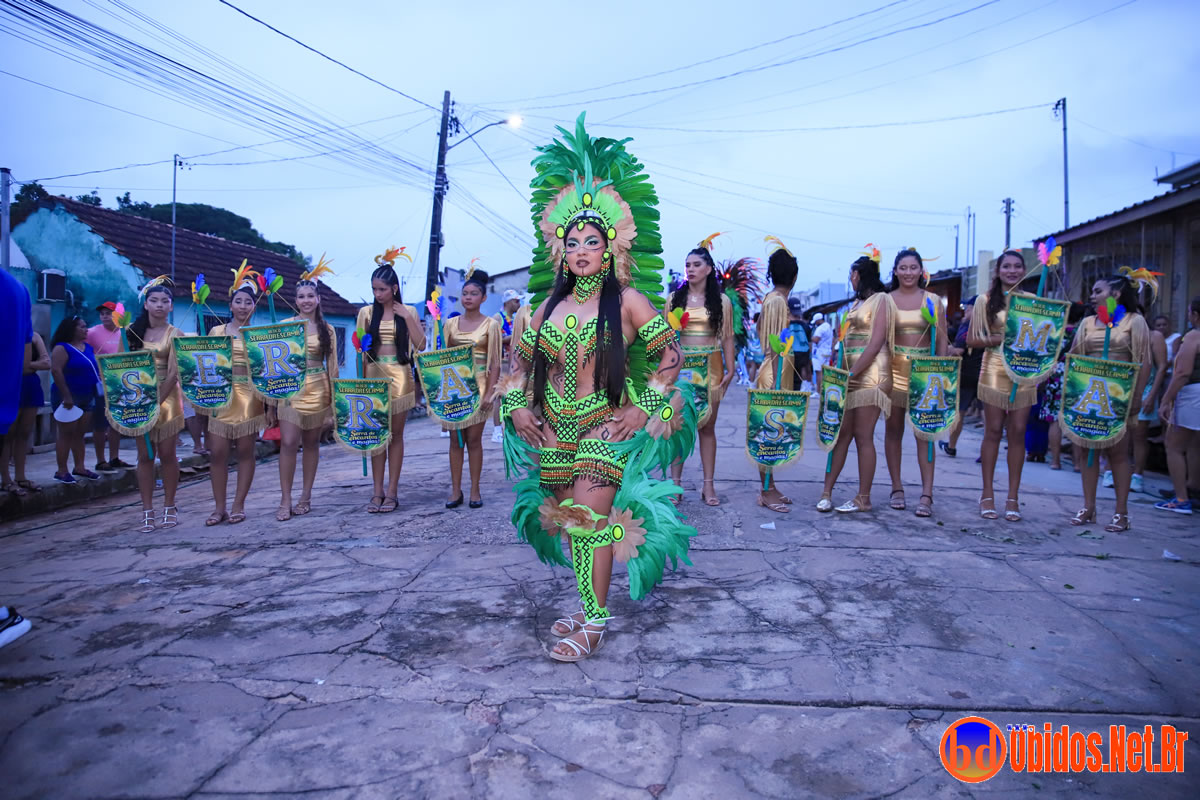 O desfile destacou-se pela criatividade das fantasias e pela energia contagiante das crianças, que demonstraram orgulho e paixão pela tradição carnavalesca local. A porta-estandarte foi conduzida com maestria por Nicole Santarém, de 11 anos, que desfilou com fantasia nas cores da arara vermelha, em homenagem ao tradicional Cordão da Arara. Outro grande destaque foi a Princesa Valentina Figueiredo, de apenas 4 anos, representando os bois Pai do Campo e Boi Pintadinho. Já a jovem Rainha Maria Eduarda Assunção, de 13 anos, brilhou com a fantasia Índia Branca, em homenagem ao Cordão da Garcinha.