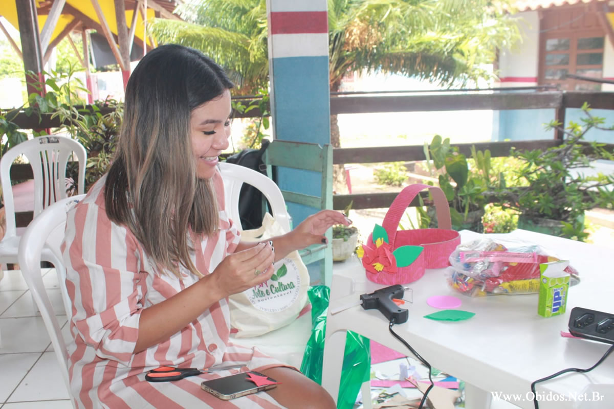 A programação contou com oficinas práticas de artesanato sustentável, utilizando materiais alternativos e reaproveitáveis, além de roda de conversa e palestras sobre empreendedorismo, educação ambiental e sustentabilidade, ministradas por especialistas convidadas, que compartilharam experiências e orientações sobre como transformar a produção artesanal em oportunidade de trabalho e renda dentro da realidade local.