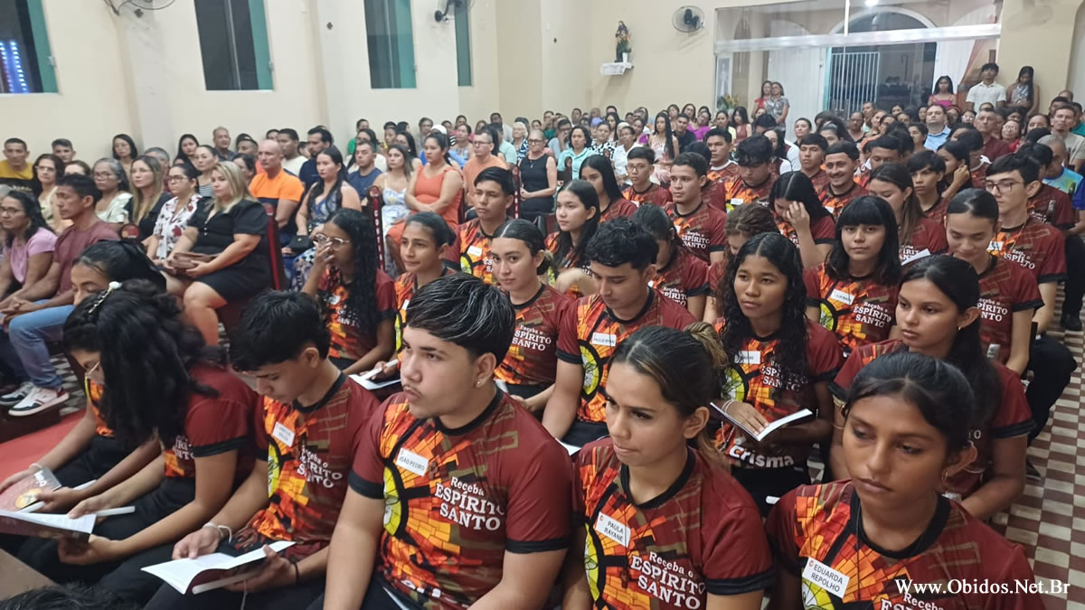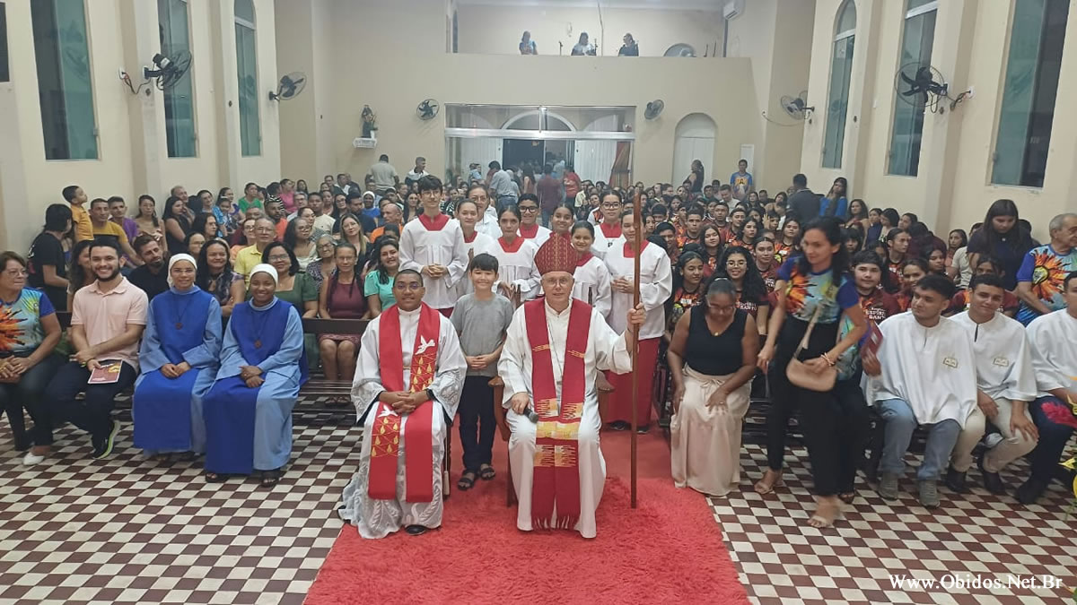 Nesta semana, 116 jovens da cidade de Óbidos deram um importante passo na vida cristã ao receber o Sacramento da Crisma. Foram 43 crismandos da comunidade de Nossa Senhora de Lourdes e 73 da comunidade Sagrado Coração de Jesus. As celebrações foram presididas pelo Bispo Diocesano, Dom Bernardo Johannes, com a presença do Padre Adalberto Santos.