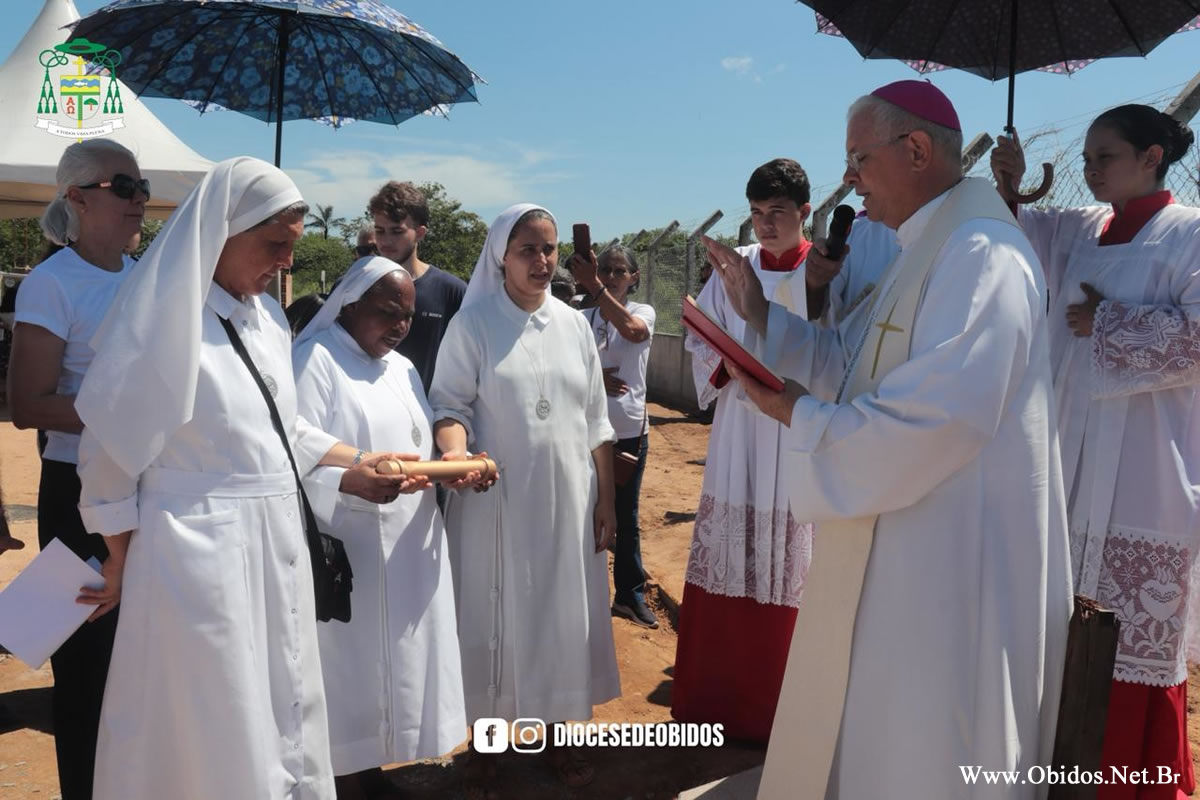 A celebração foi conduzida pelo Bispo Diocesano, Dom Bernardo Johannes, e contou com a presença das Irmãs Pequenas Missionárias Eucarísticas (PME), responsáveis pela futura condução da Casa Madre Ilia. Ao final do rito, Dom Bernardo realizou uma benção especial no terreno onde a obra será edificada, reforçando a importância espiritual e comunitária desse novo espaço para Oriximiná.