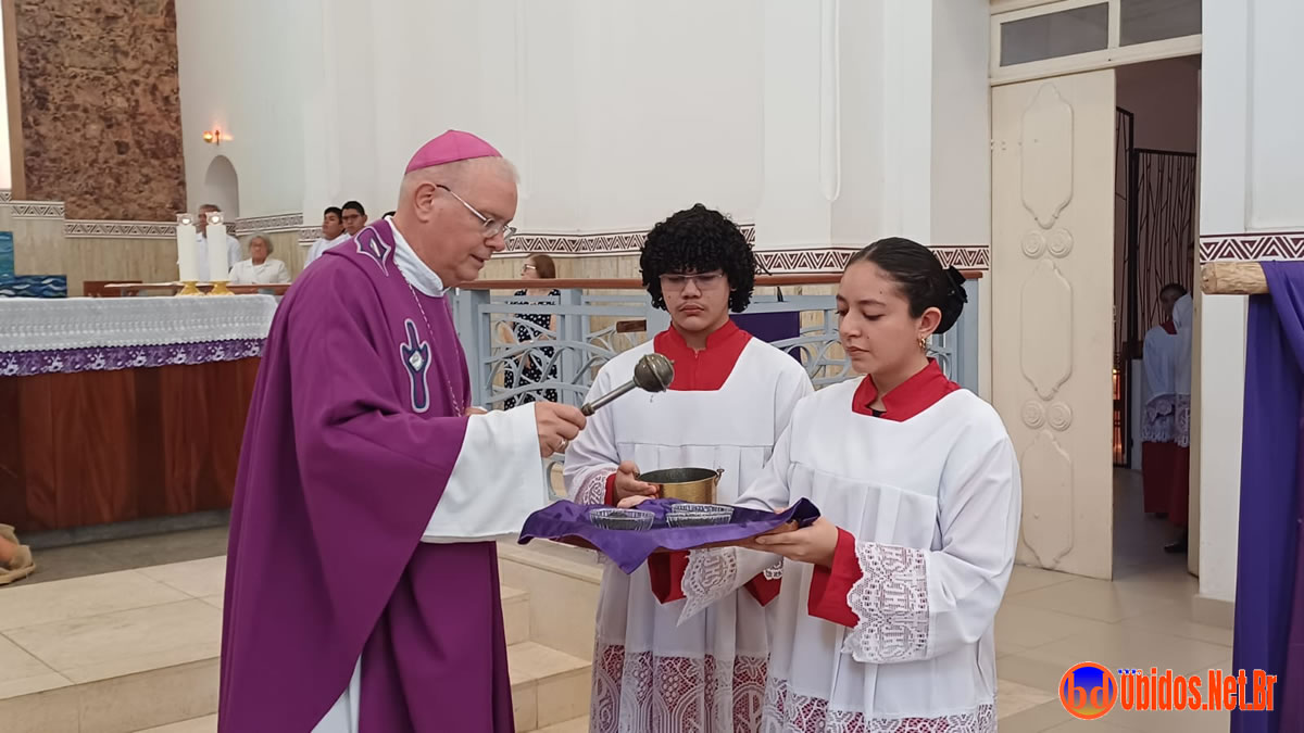 A celebração foi presidida por Dom Bernardo, Bispo da Diocese de Óbidos, e contou com o auxílio dos padres Alberto Santos e Iranilson. Em sua homilia, Dom Bernardo destacou que a Quaresma é um tempo favorável para a conversão do coração, convidando os fiéis à prática da abstinência, da penitência, da oração e do amor ao próximo, como caminho de preparação para celebrar a ressurreição de Jesus Cristo.