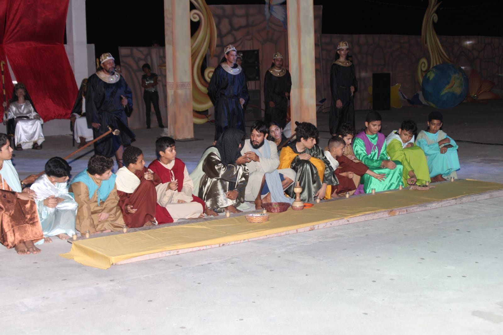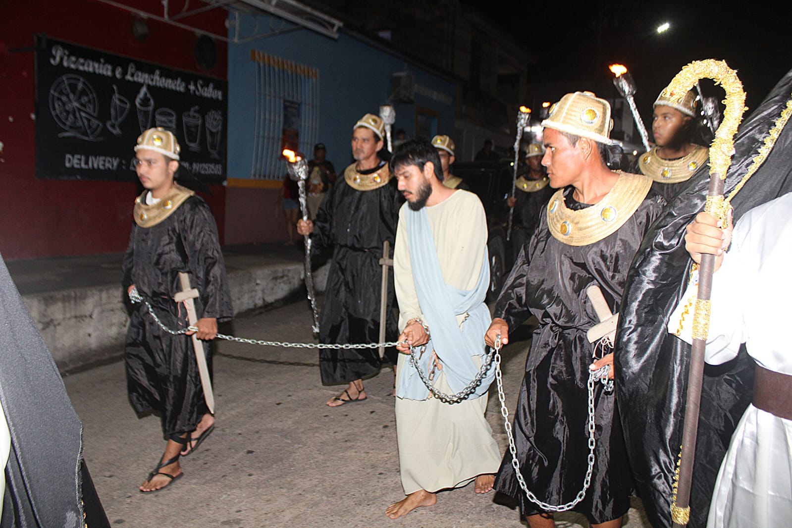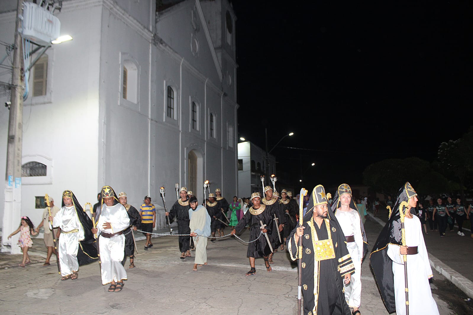 Com a participação de mais de 60 atores e cerca de 20 colaboradores, a apresentação foi dividida em dois atos, retratando com riqueza de detalhes os últimos momentos de Jesus Cristo. A programação teve início ainda na Quinta-feira Santa, na Praça da Cultura, quando o público acompanhou cenas marcantes como a tentação de Jesus no deserto, a Santa Ceia — símbolo máximo do amor e da partilha —, além da traição de Judas e da negação de Pedro, expressões da fragilidade humana diante dos desafios da fé.