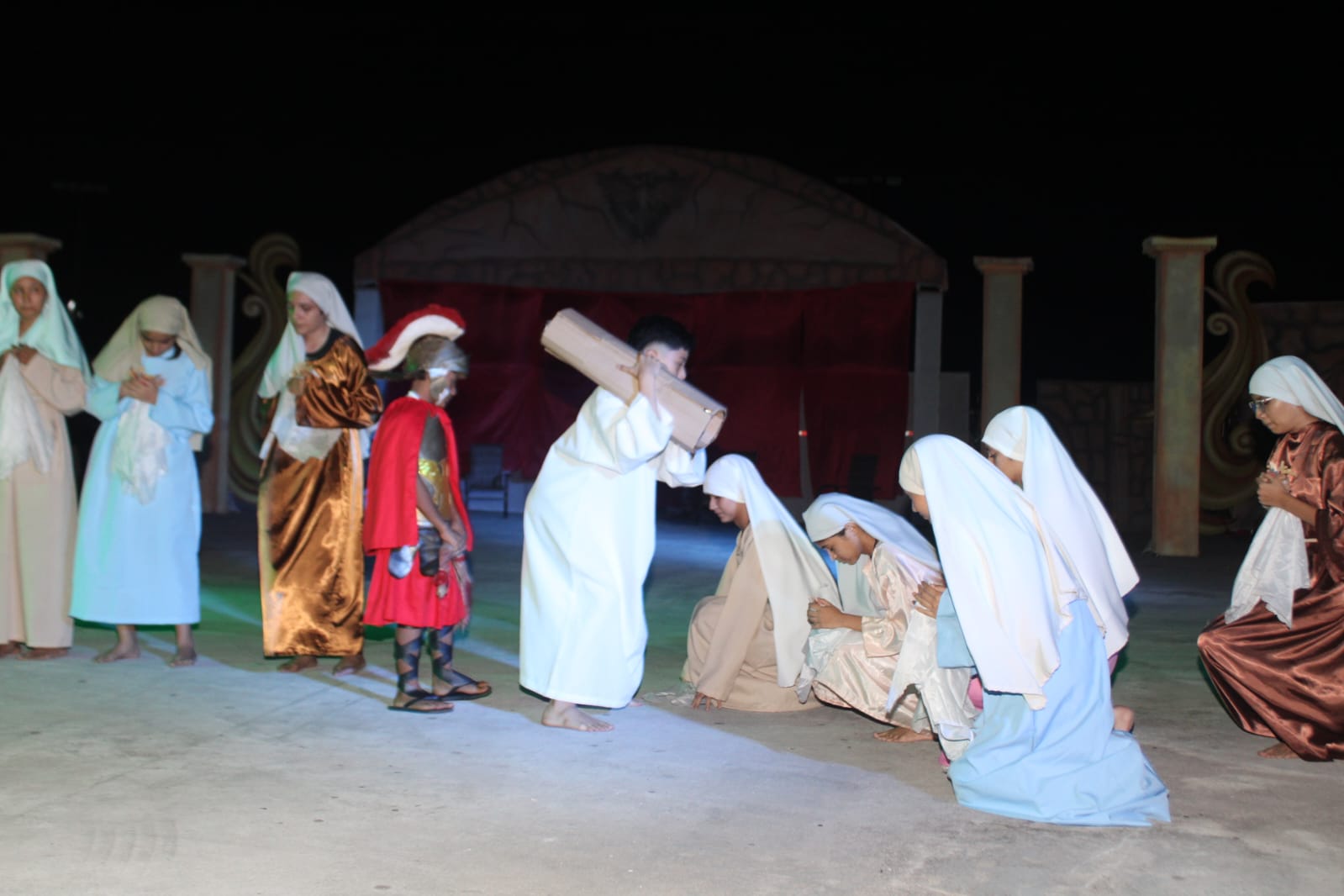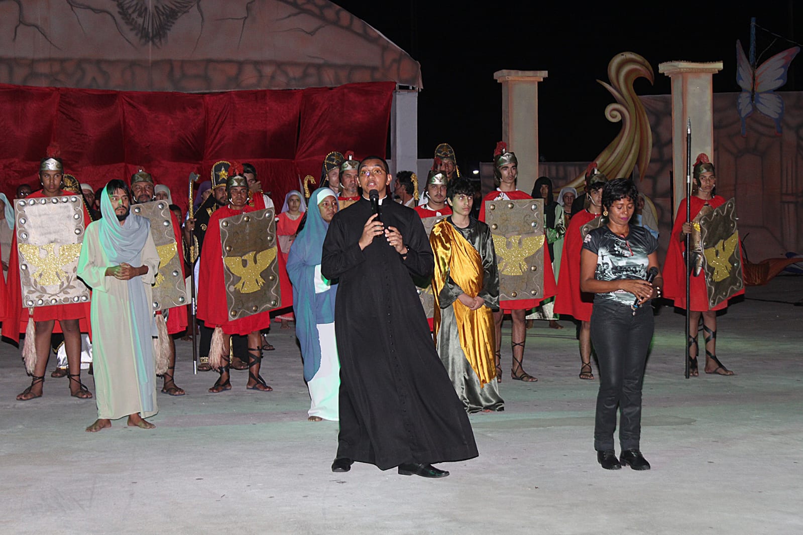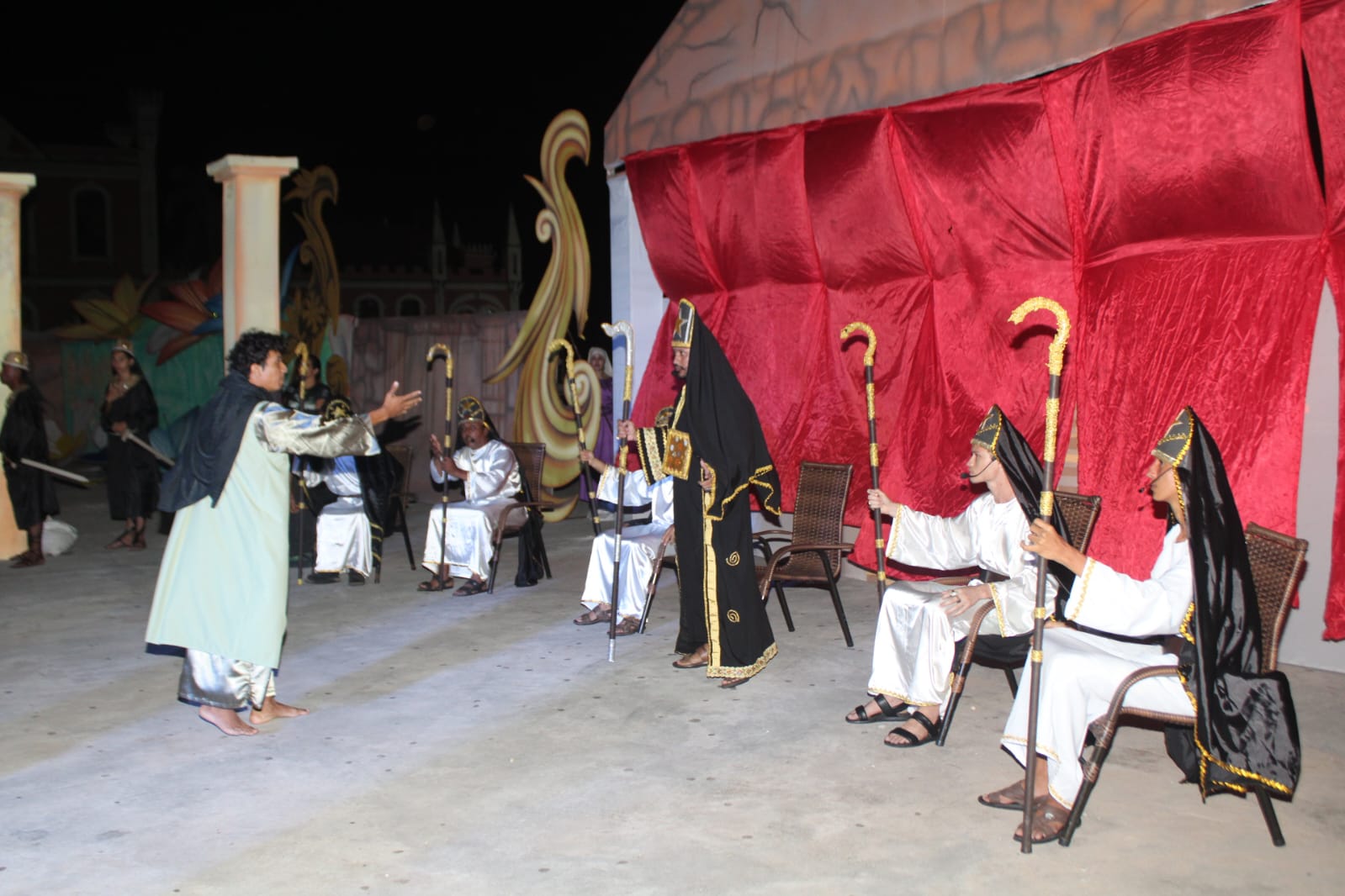 Com a participação de mais de 60 atores e cerca de 20 colaboradores, a apresentação foi dividida em dois atos, retratando com riqueza de detalhes os últimos momentos de Jesus Cristo. A programação teve início ainda na Quinta-feira Santa, na Praça da Cultura, quando o público acompanhou cenas marcantes como a tentação de Jesus no deserto, a Santa Ceia — símbolo máximo do amor e da partilha —, além da traição de Judas e da negação de Pedro, expressões da fragilidade humana diante dos desafios da fé.