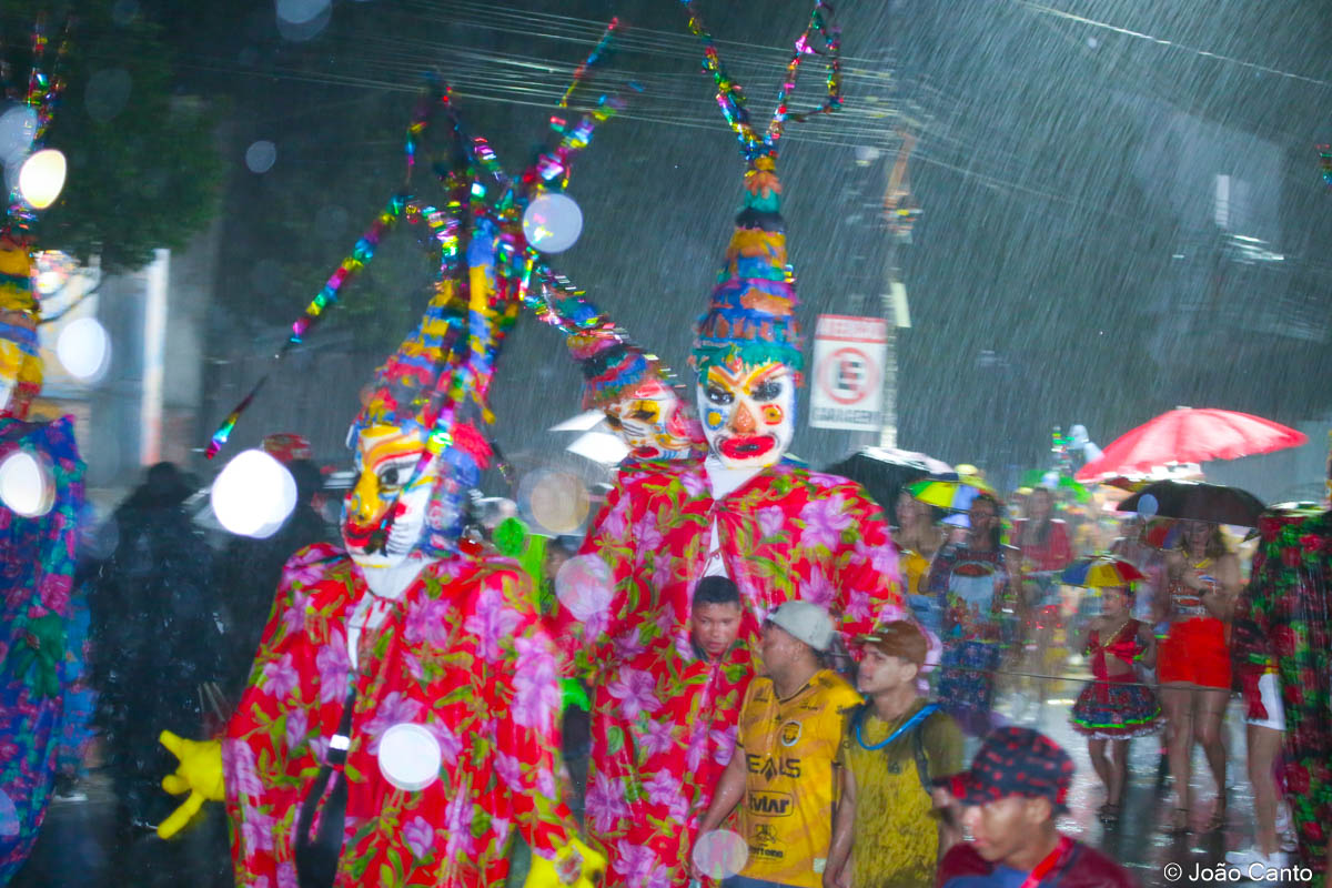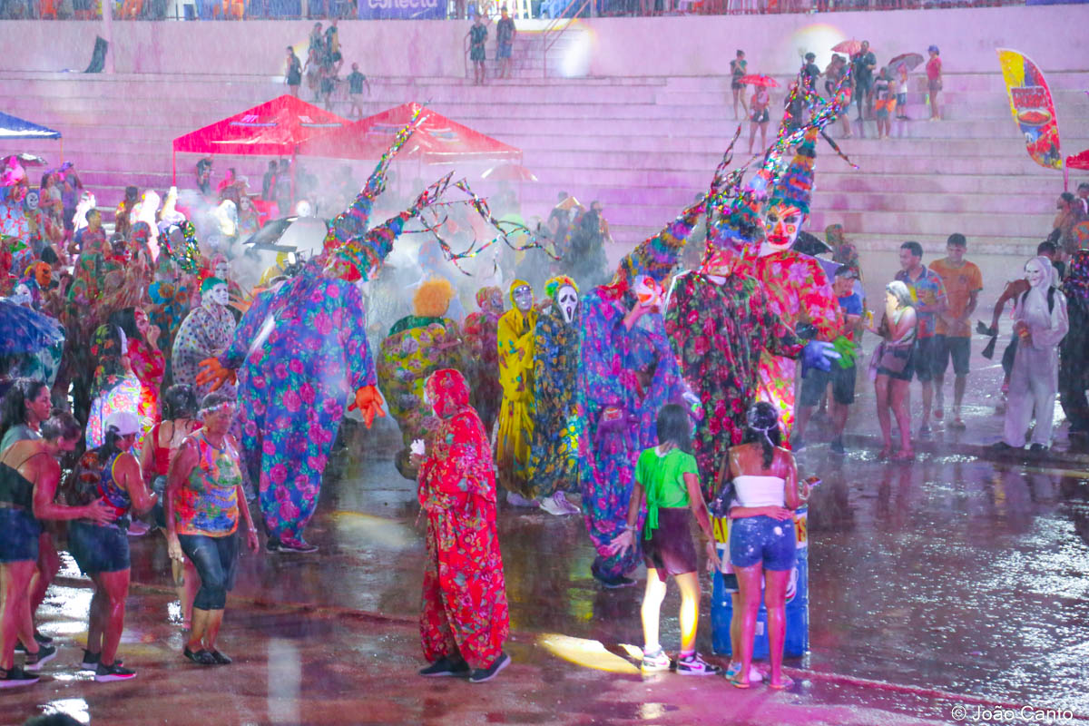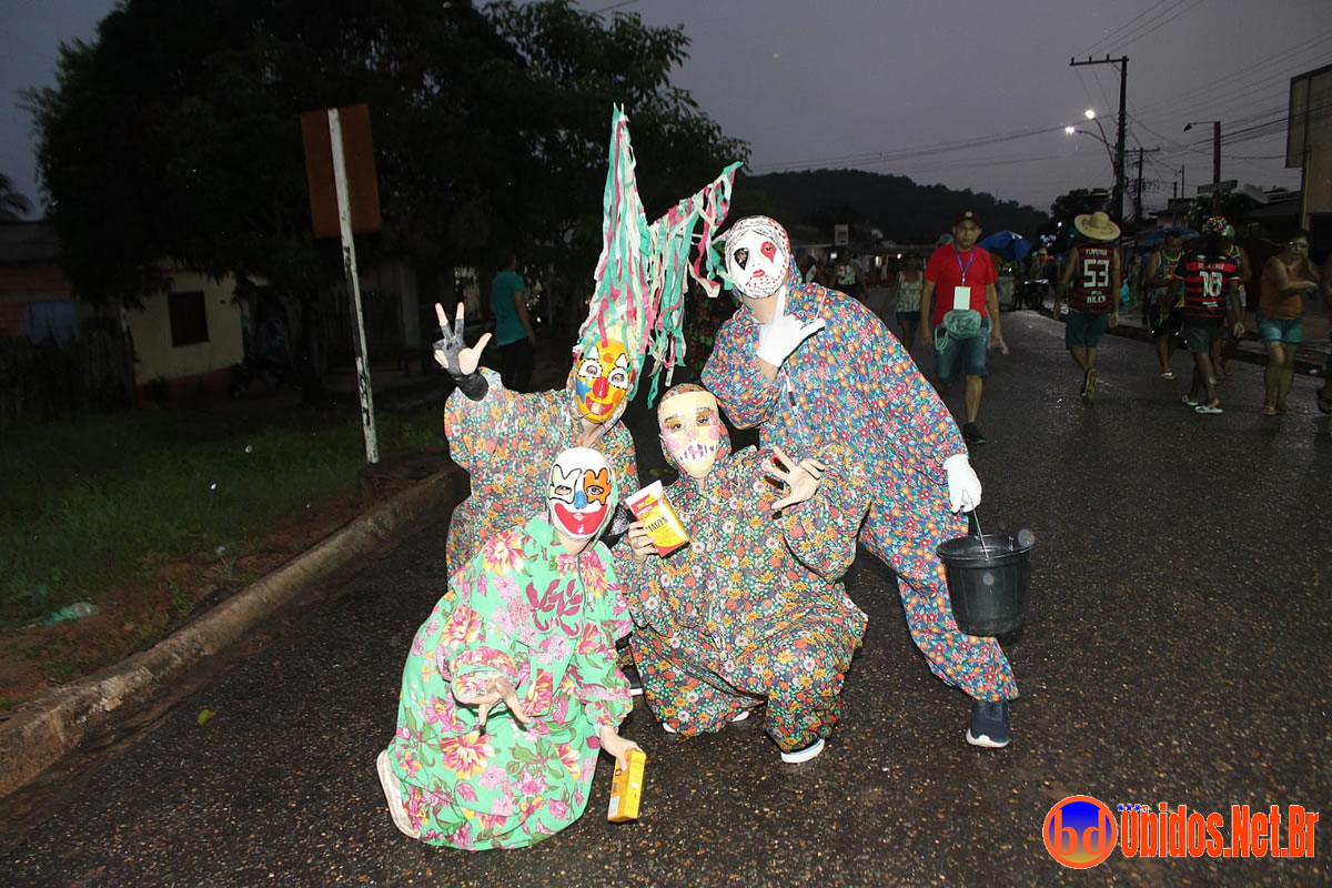 O desfile teve início por volta das 19h30, por baixo de uma chuva torrencial, mesmo assim seus brincantes, enfrentaram a chuva e seguiram pelas ruas da cidade. A animação ficou sob o comando do cantor Marcos Cley, acompanhado pelas bandas 2020 Wolts e Lazer nos trios elétricos, conduzindo os brincantes até a Arena da Folia. Durante o percurso, os Mascarados Fobós espalharam maisena pelo caminho, tornando o evento ainda mais interativo e festivo.