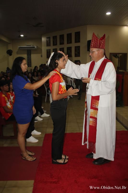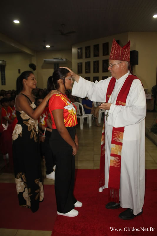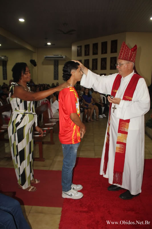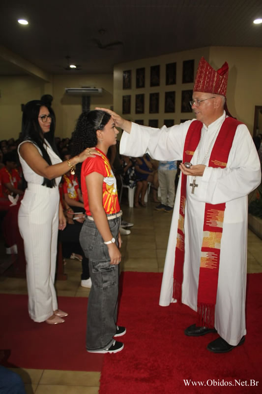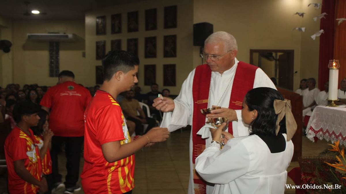 ÓBIDOS (PA) – A Paróquia de São Martinho de Lima celebrou, na noite deste domingo (09), o Sacramento da Crisma de 66 jovens, em uma emocionante cerimônia presidida pelo bispo diocesano, Dom Bernardo Johannes, e concelebrada pelo padre Leonardo Loures.