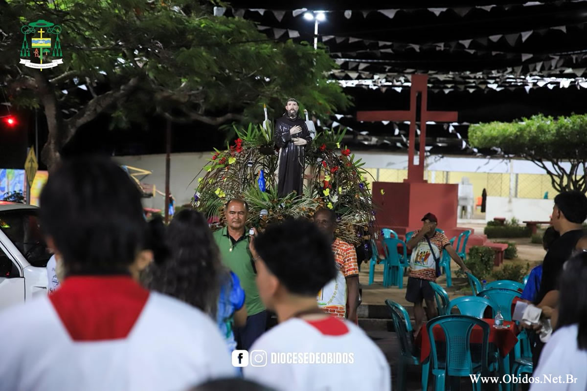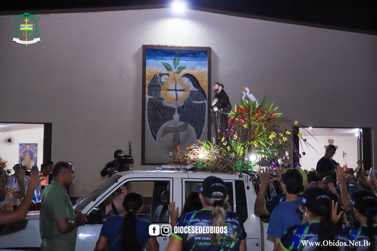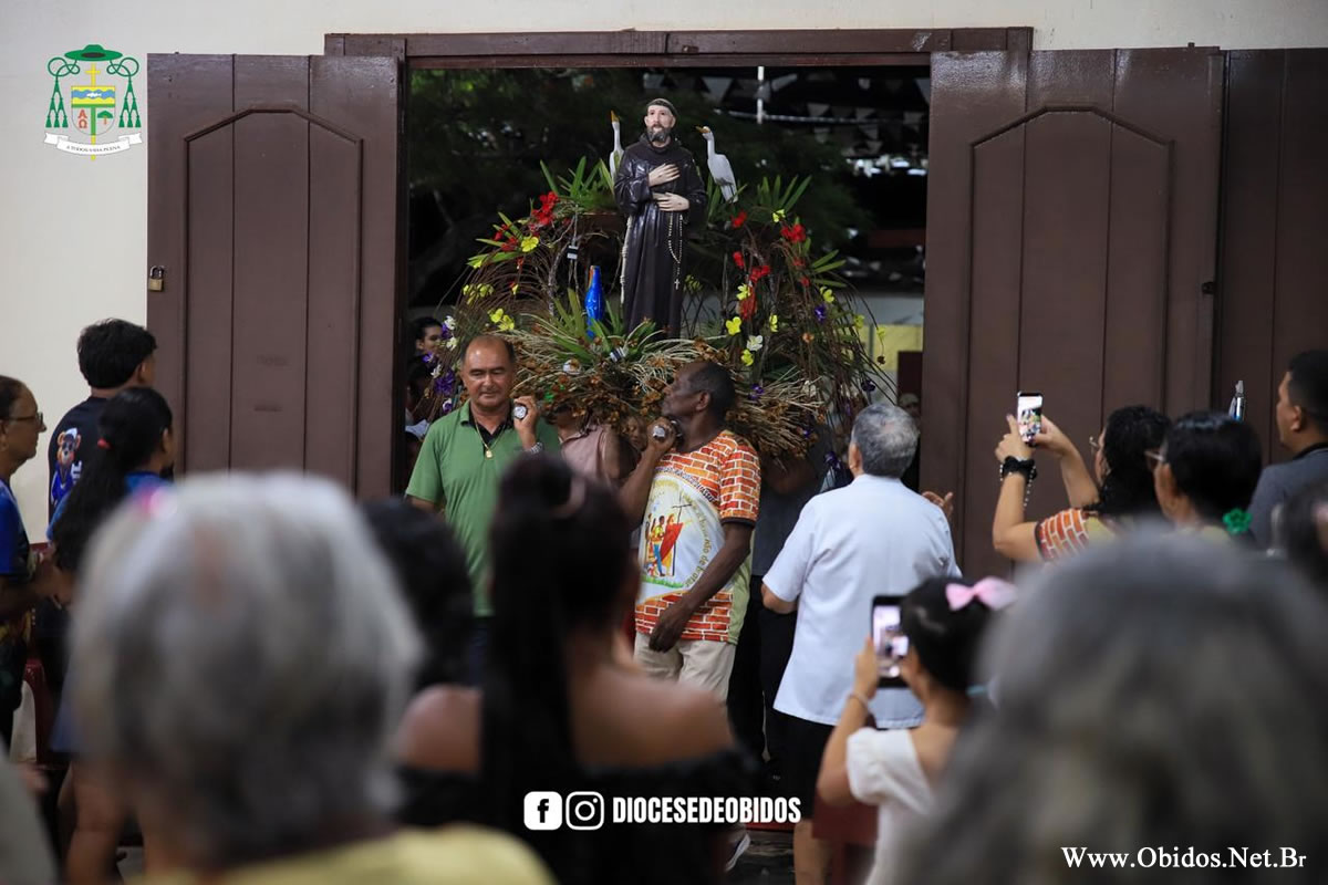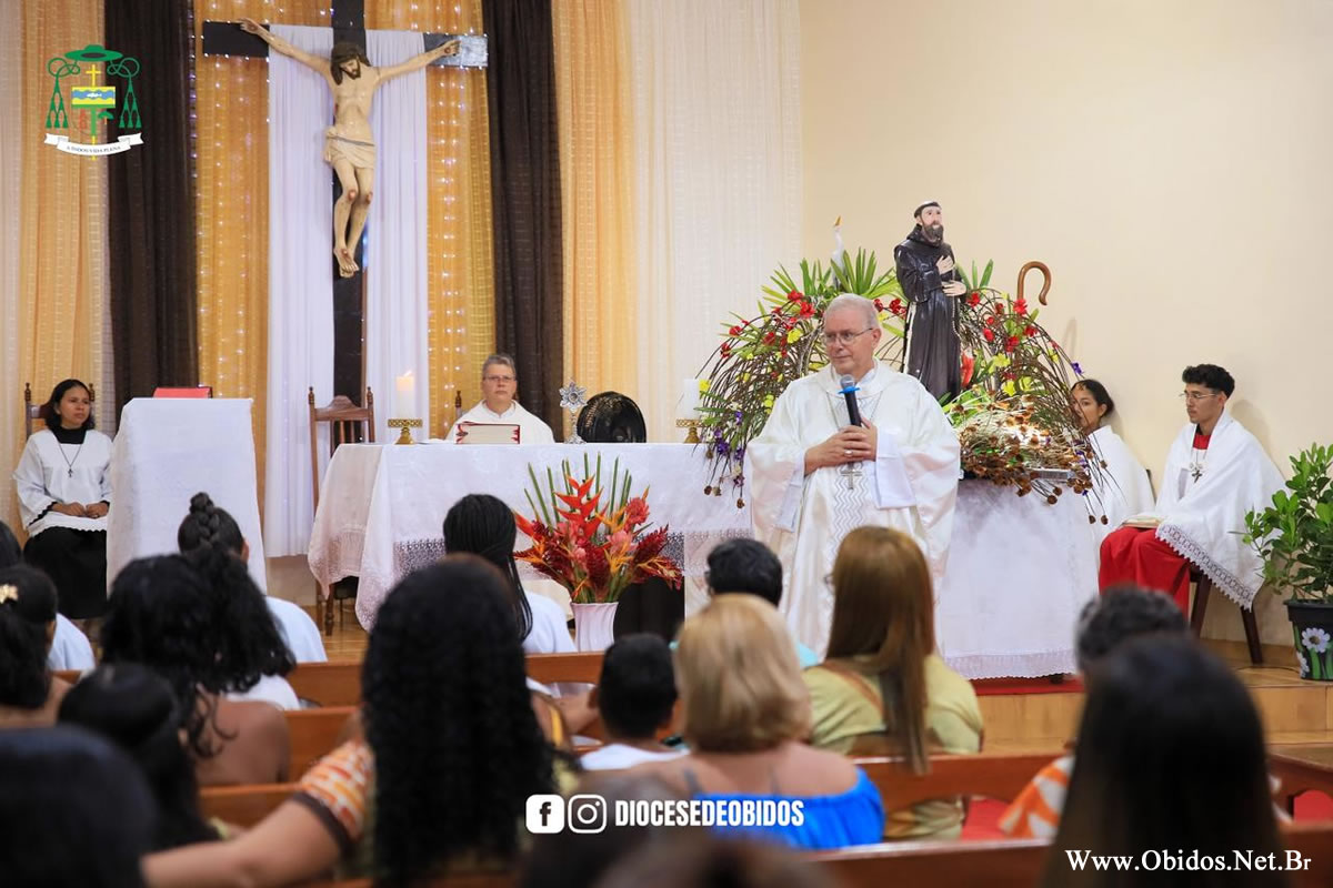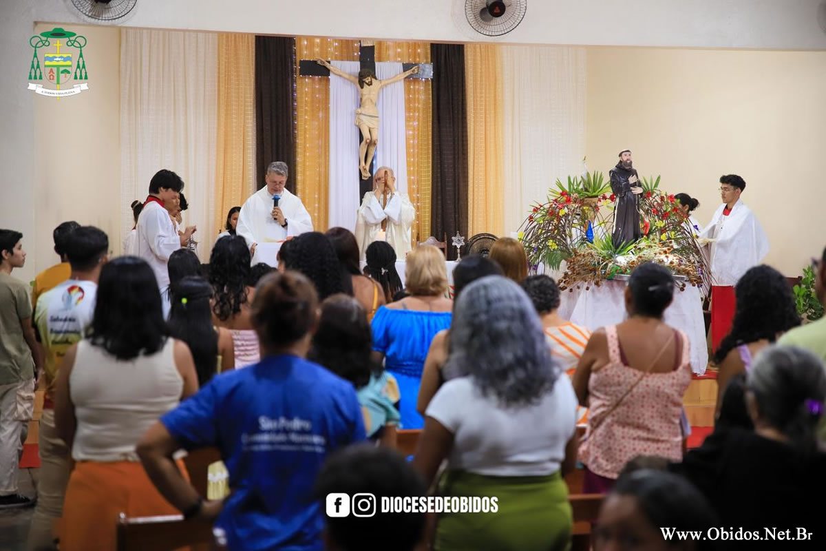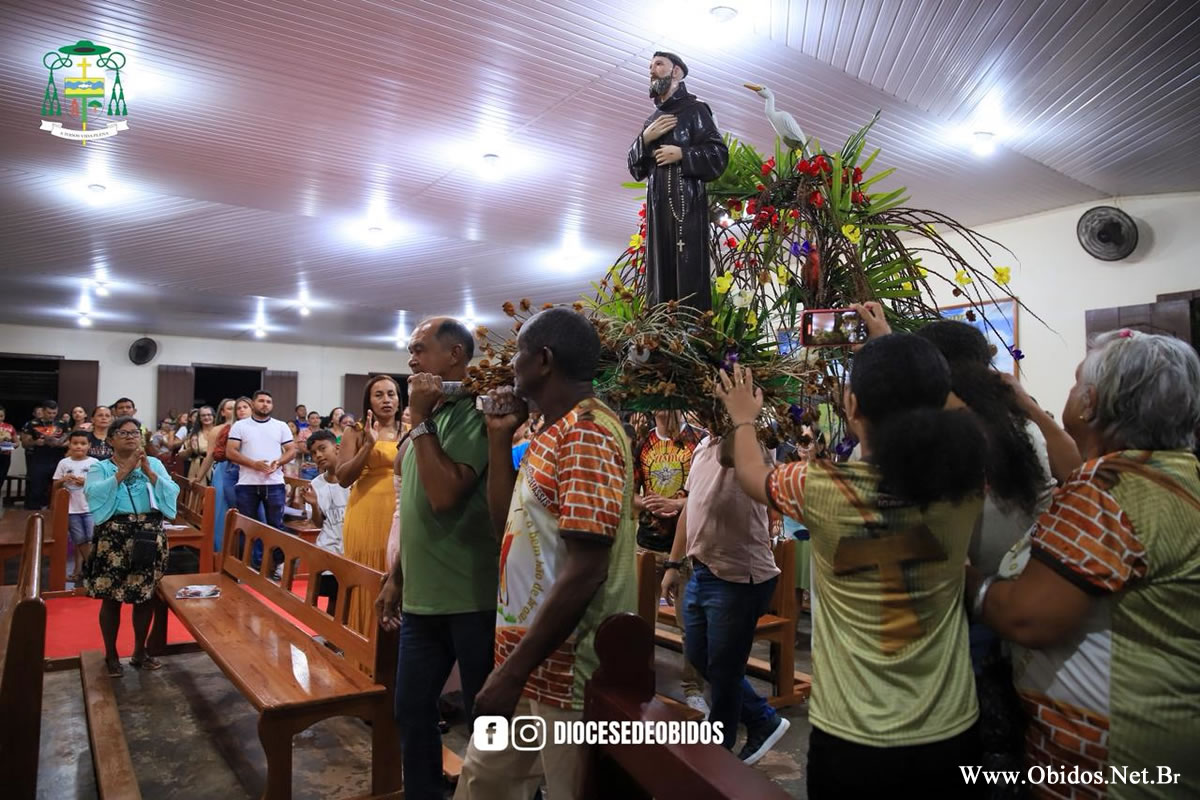 Ao término da caminhada, a chegada da imagem foi acolhida com emoção e seguida da Missa Solene, presidida pelo bispo da Diocese de Óbidos, Dom Bernardo Johannes, e concelebrada pelo pároco Padre Édson Galego. A celebração reuniu fiéis vindos de diversas comunidades, todos unidos para homenagear o Santo de Assis.