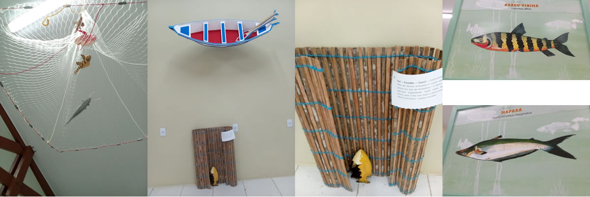A exposição reúne painéis ilustrativos com fotos e textos, além de objetos típicos utilizados na pesca artesanal na região amazônica, como uma canoa com remos, uma malhadeira e uma tarrafa, entre outros artefatos que revelam a íntima relação entre o homem e as águas.