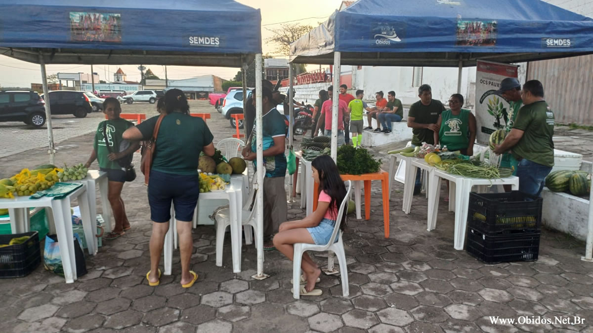 ÓBIDOS (PA) – A Praça do “O” foi palco, na tarde e noite desta sexta-feira (07), de mais uma edição da Feira da Agricultura Familiar, evento que reuniu produtores rurais, artesãos e artistas locais em um ambiente de valorização da produção regional e incentivo à economia obidense. A feira foi promovida pela Secretaria Municipal de Desenvolvimento Rural e Abastecimento da Prefeitura de Óbidos.