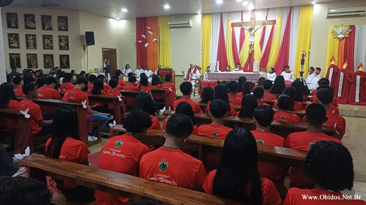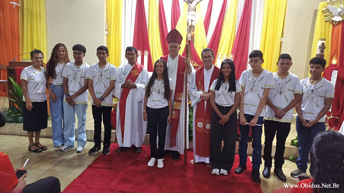 ÓBIDOS (PA) – A Paróquia de São Martinho de Lima celebrou, na noite deste domingo (09), o Sacramento da Crisma de 66 jovens, em uma emocionante cerimônia presidida pelo bispo diocesano, Dom Bernardo Johannes, e concelebrada pelo padre Leonardo Loures.