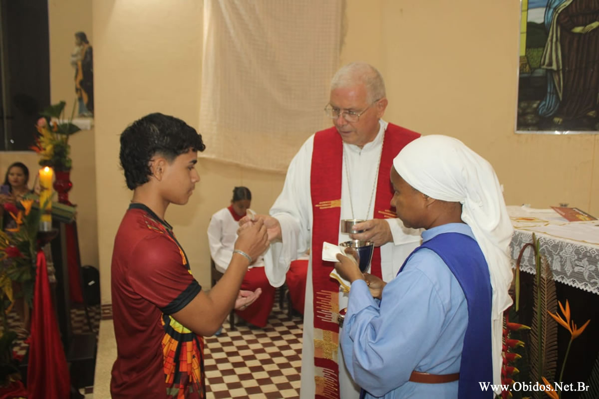 Nesta semana, 116 jovens da cidade de Óbidos deram um importante passo na vida cristã ao receber o Sacramento da Crisma. Foram 43 crismandos da comunidade de Nossa Senhora de Lourdes e 73 da comunidade Sagrado Coração de Jesus. As celebrações foram presididas pelo Bispo Diocesano, Dom Bernardo Johannes, com a presença do Padre Adalberto Santos.