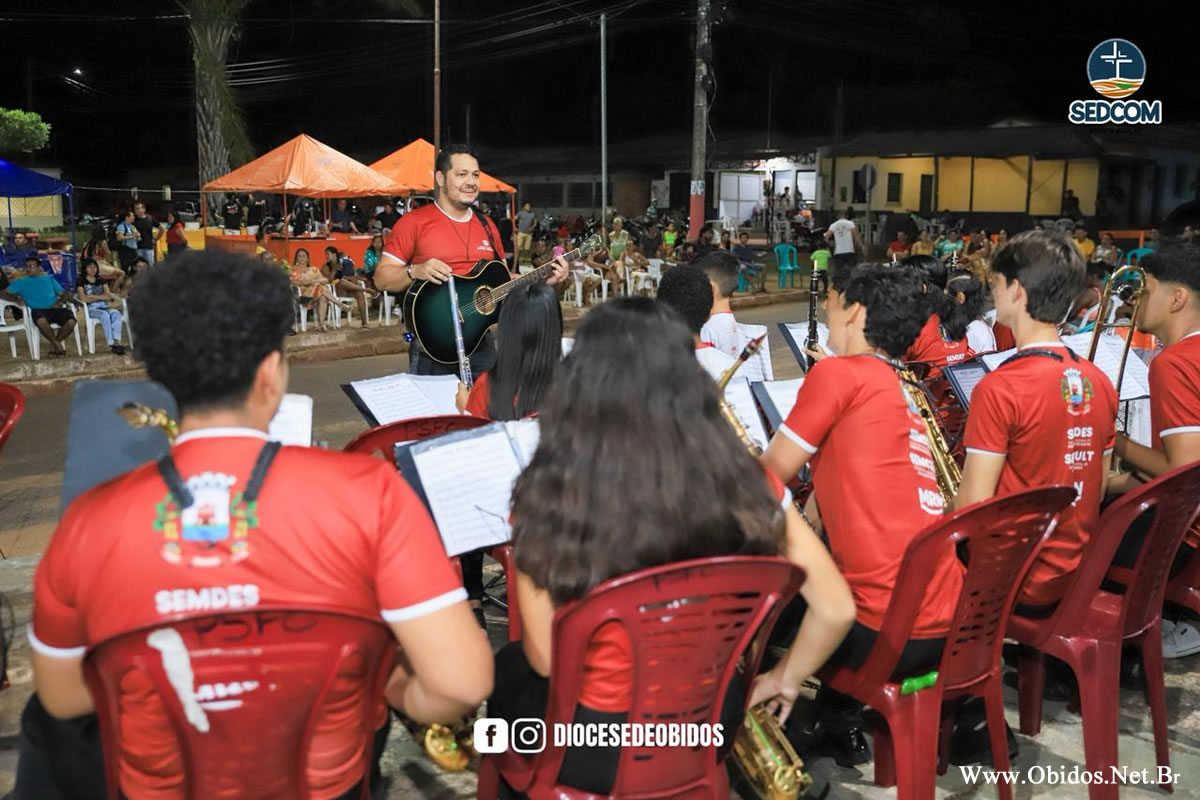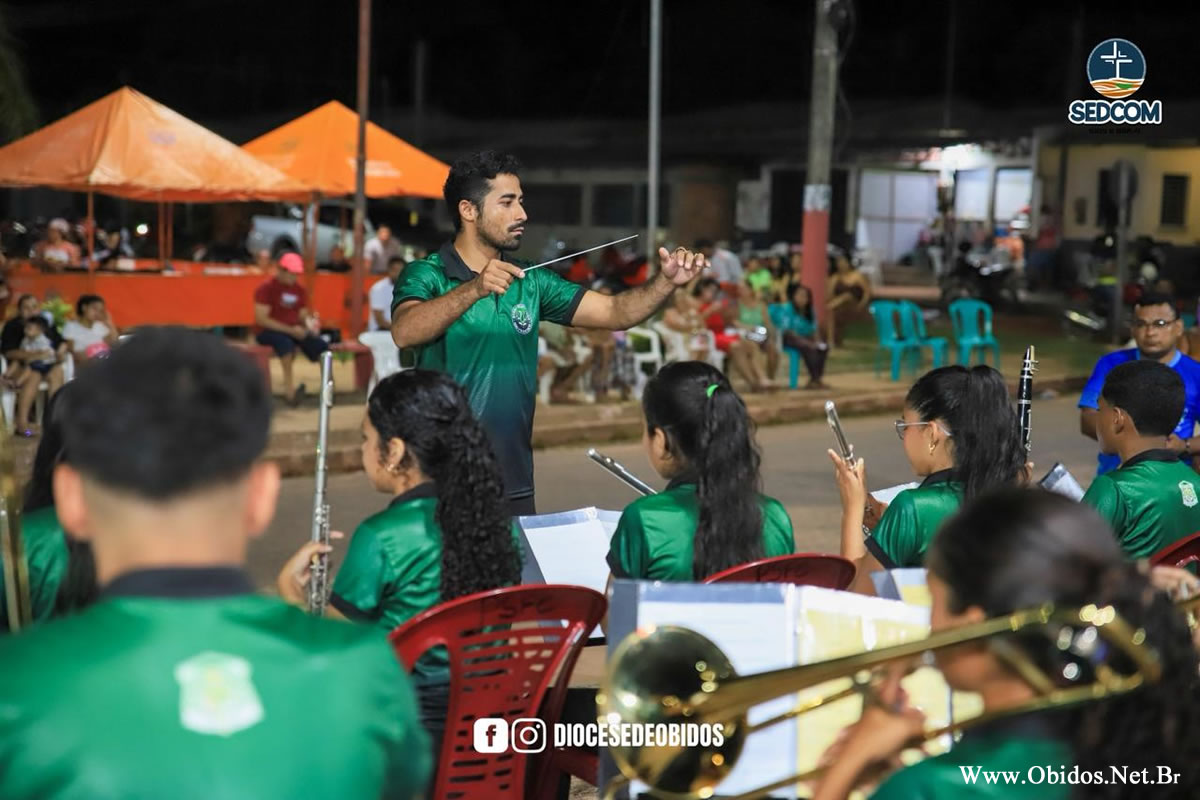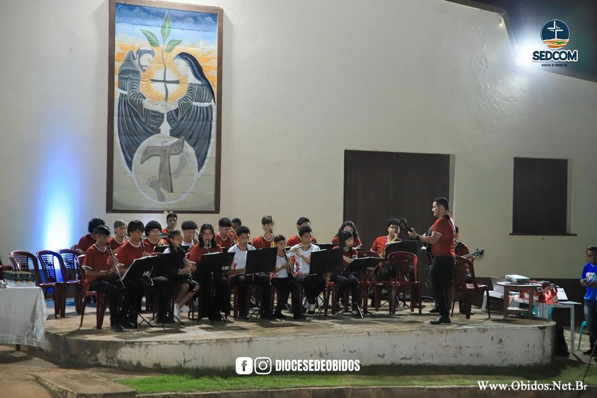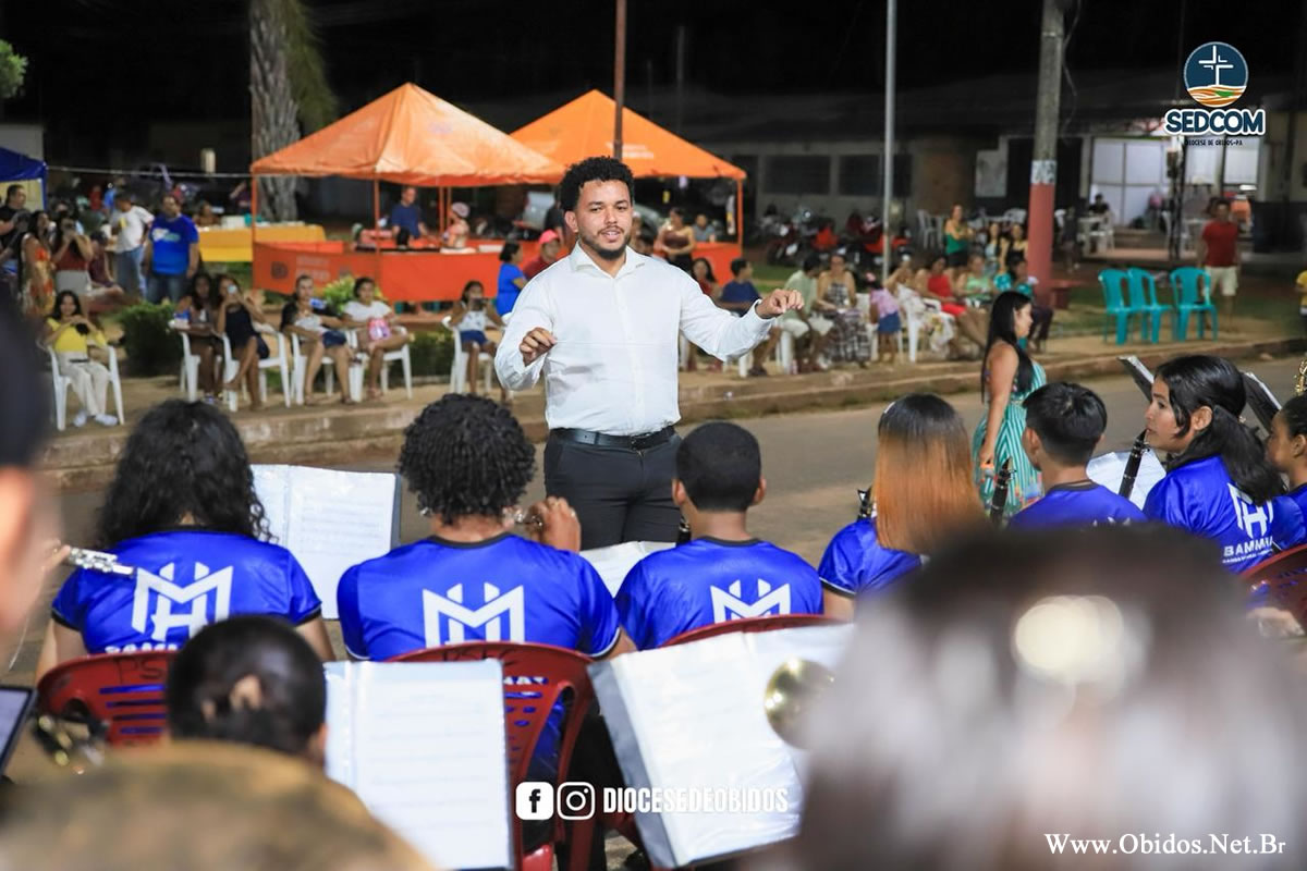 A programação foi marcada pela diversidade musical. O público acompanhou desde o ritmo vibrante do Swing de Carimbó, passando pelas apresentações individuais de Natália, Isabella Rodrigues, Brenda Dianná, Ellen, Corina Coelho, Alex Baima e Brendel Rodrigues, até a participação da Escola de Música Manoel Rodrigues, que realizou um dueto emocionante com o Canto Coral Living Peace. As bandas São José, BAMMHAY e Banda Diocesana São Francisco também encantaram com performances marcantes.