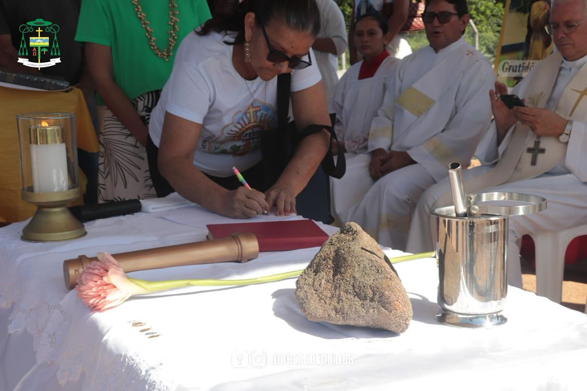 A Pedra Fundamental, abençoada durante a cerimônia, simboliza Jesus Cristo, a base sólida da Igreja. Em um espaço de destaque, foram depositados documentos que registram a história do projeto, assinaturas dos participantes e medalhas milagrosas — elementos que, juntos, eternizam este início e marcam a memória de todos os envolvidos.